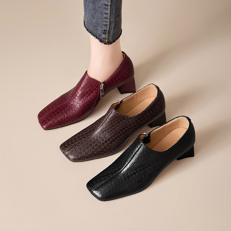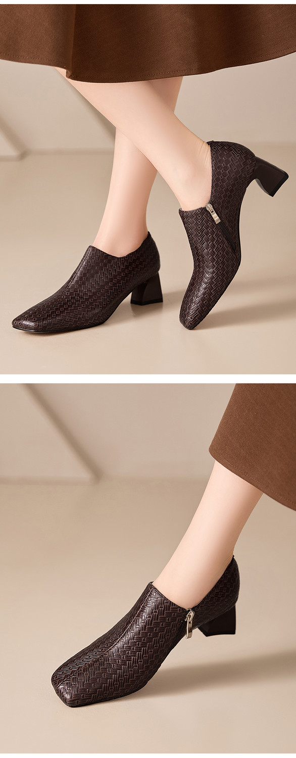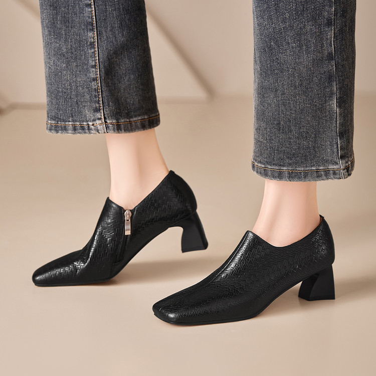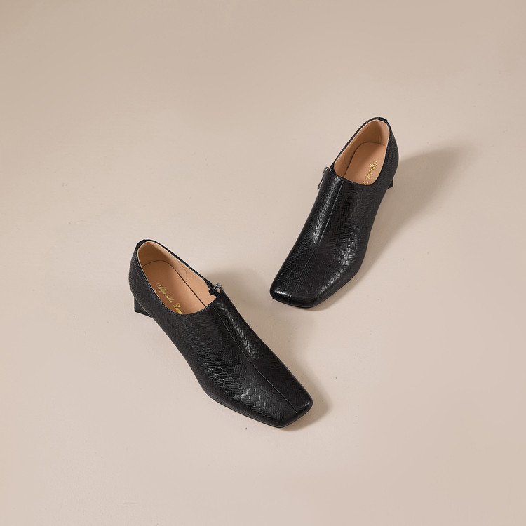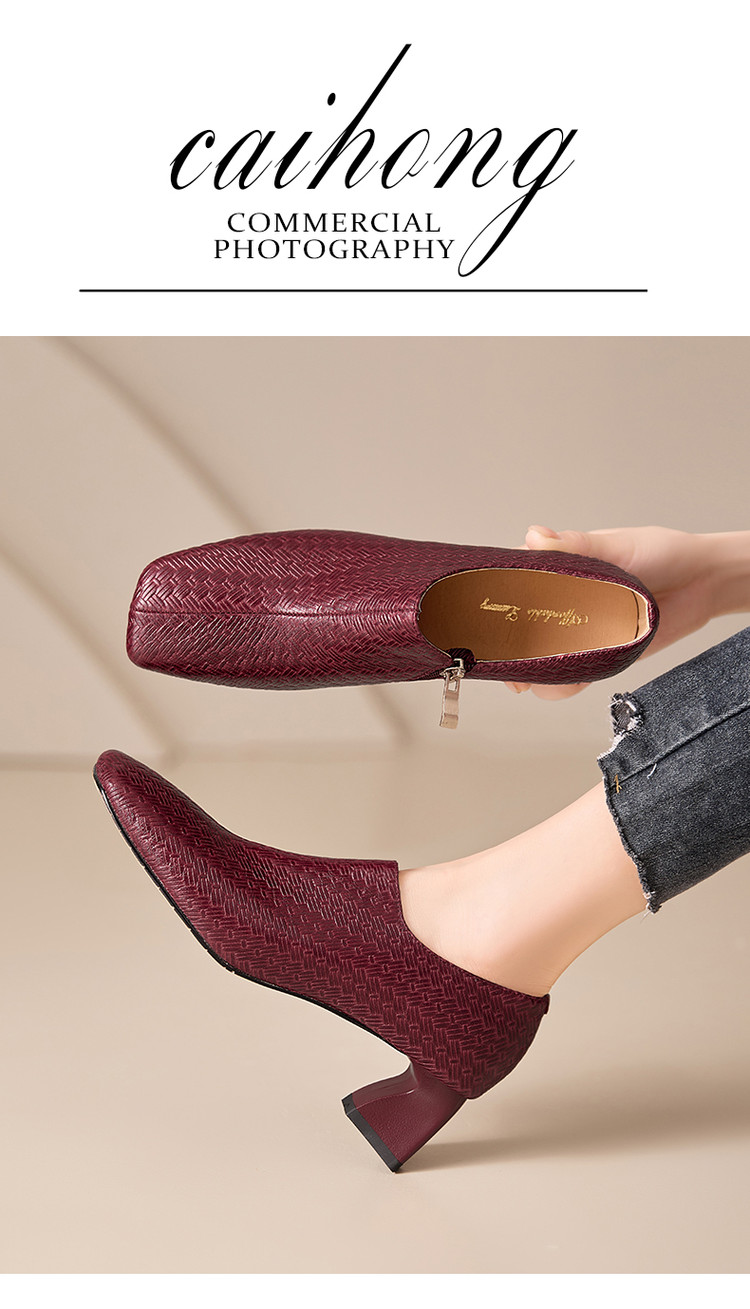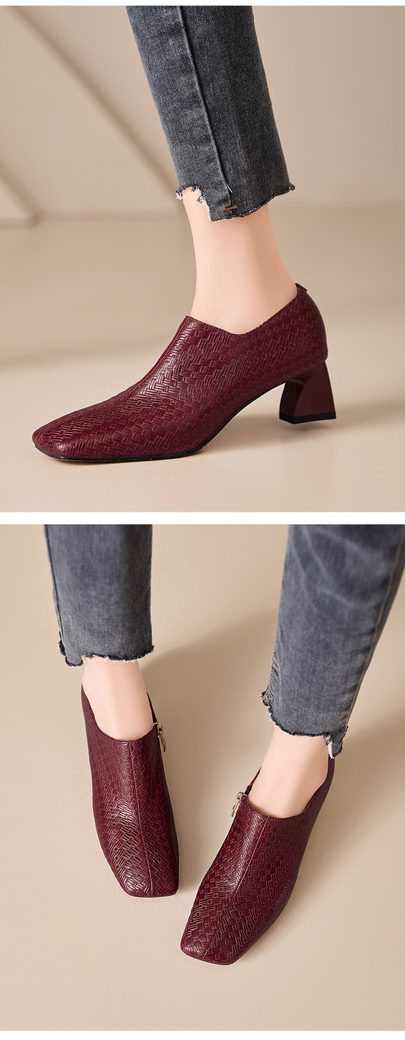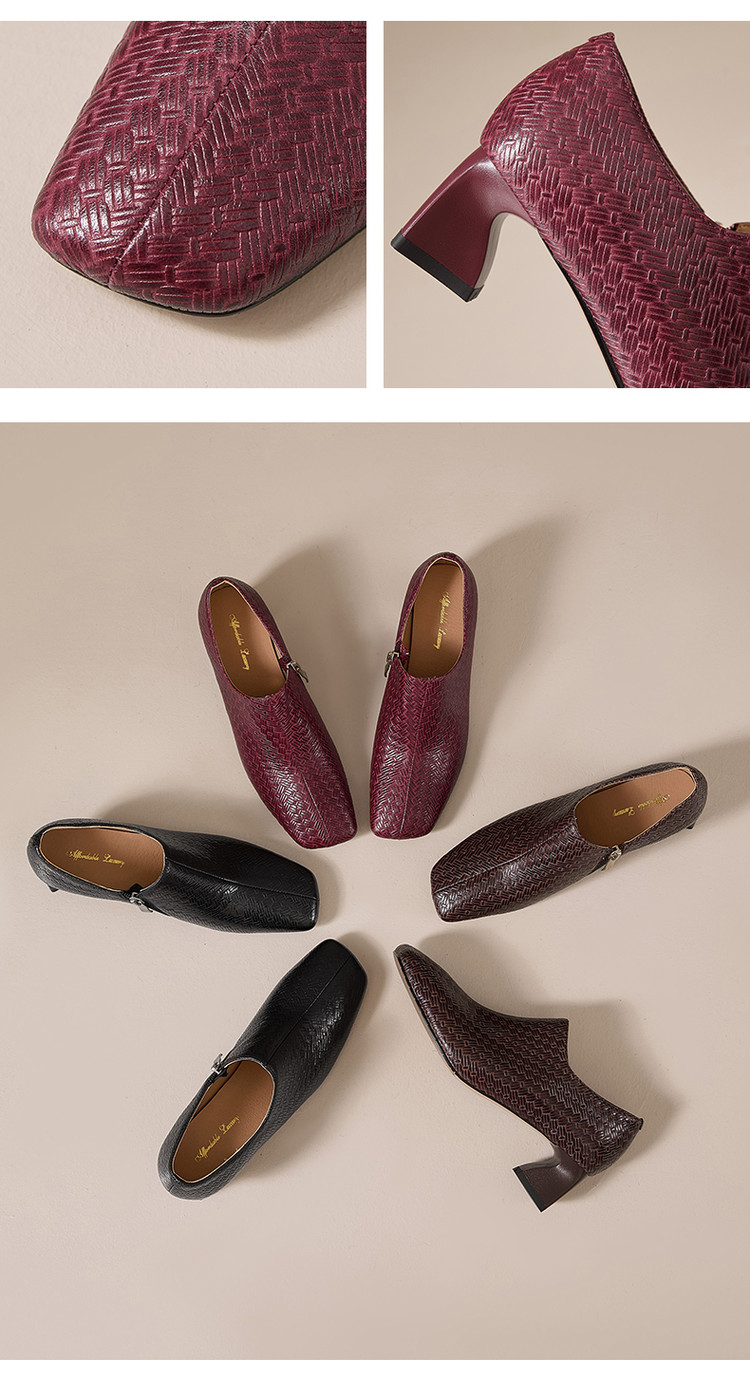 【预售5天】巨好穿法式深口单鞋女春秋方头中跟粗跟真皮高跟鞋乐福鞋及踝靴女MBJR&6948