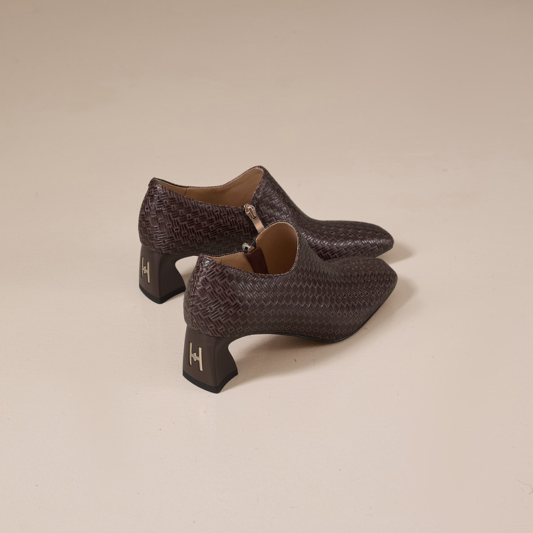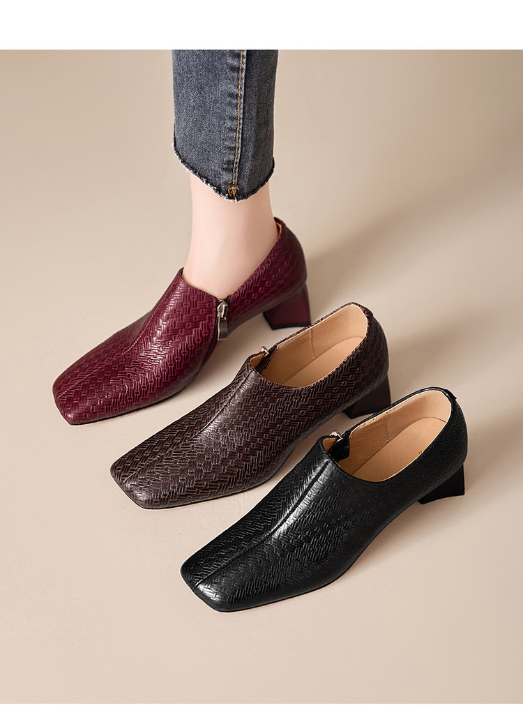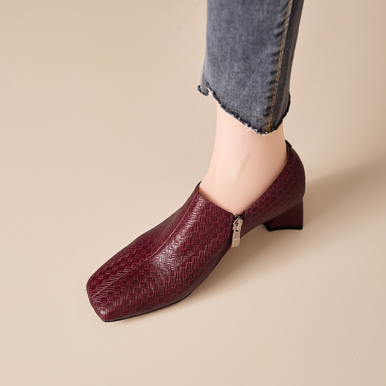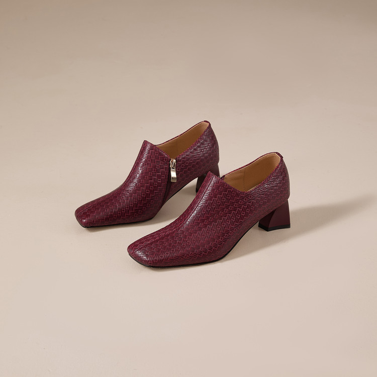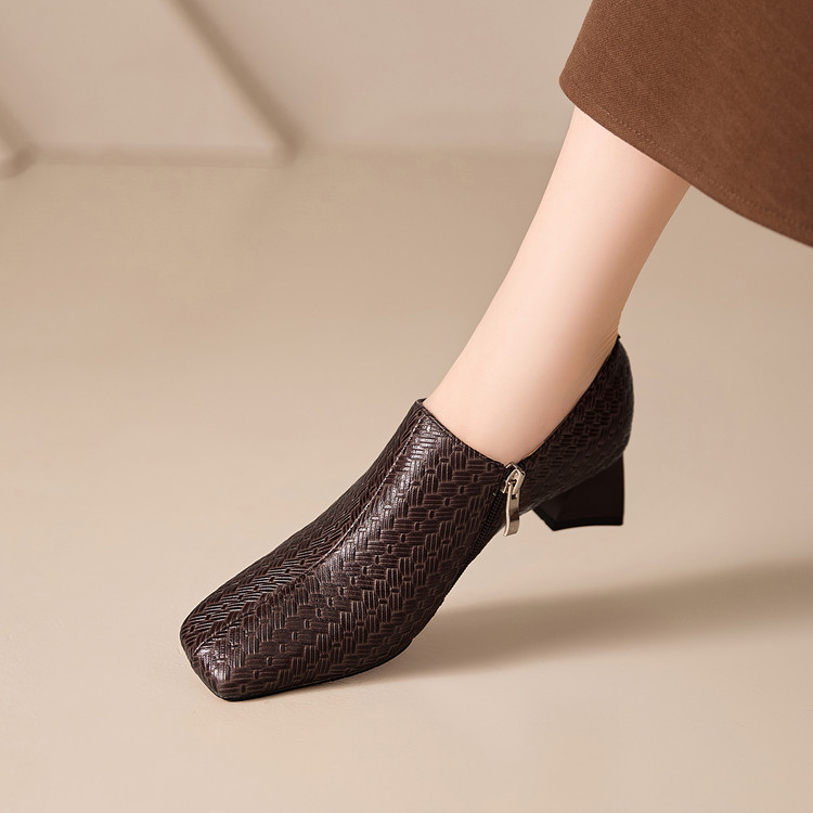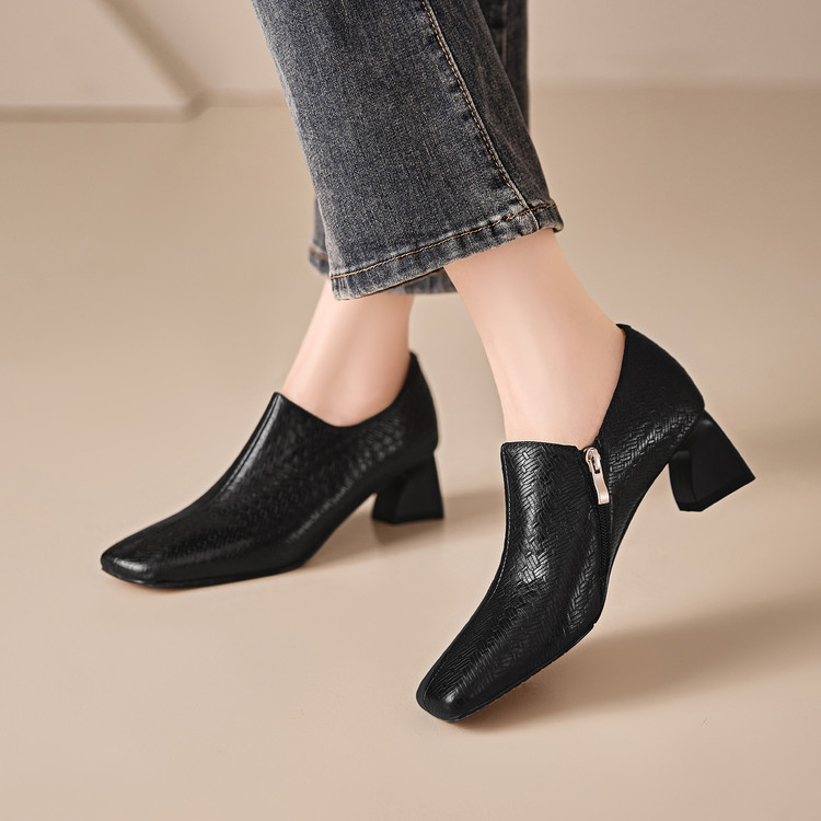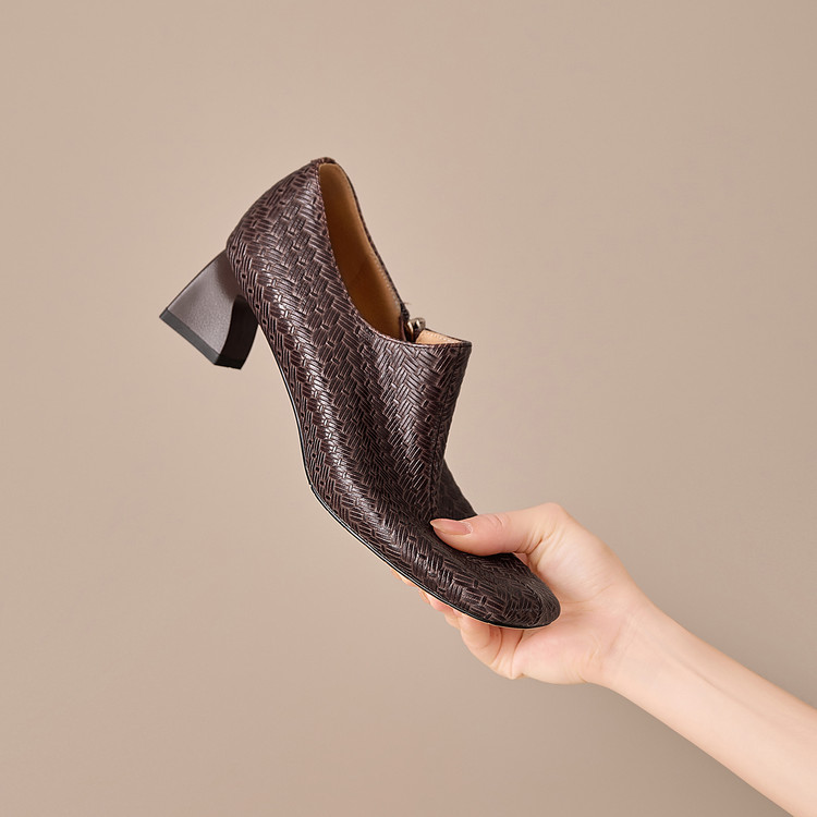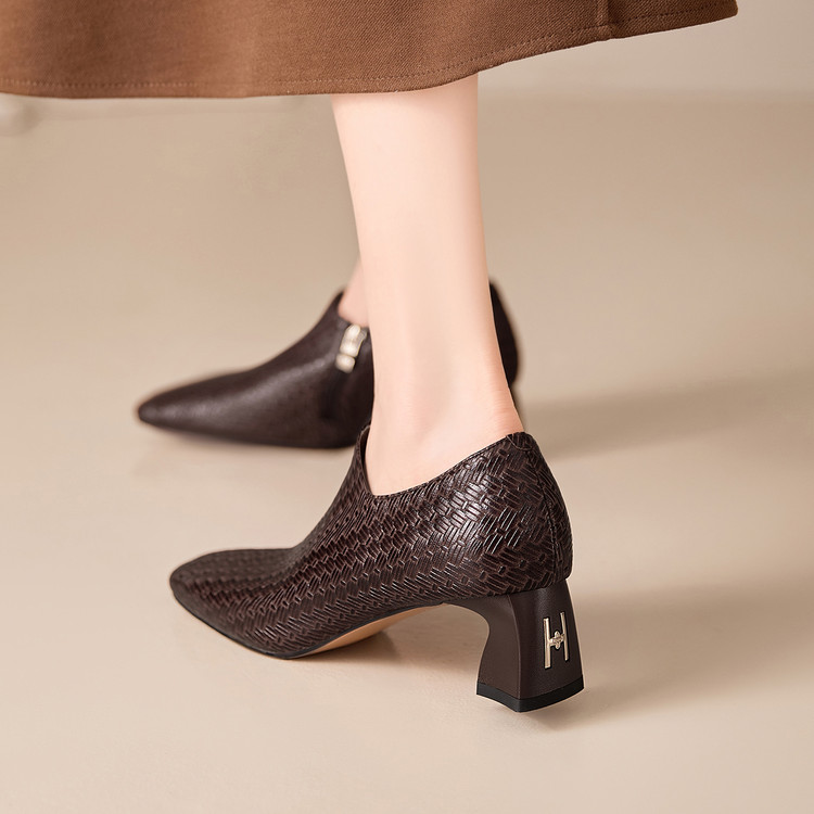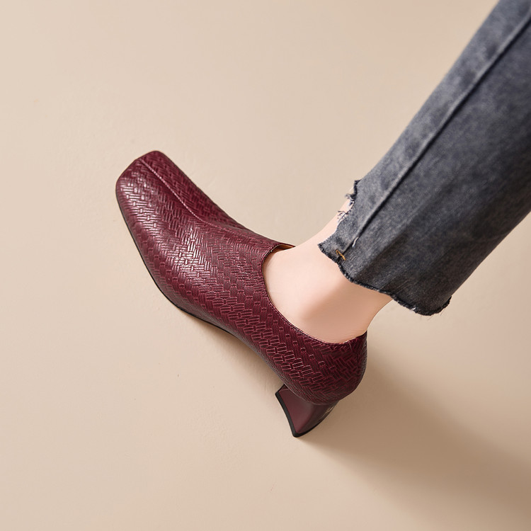 【预售5天】巨好穿法式深口单鞋女春秋方头中跟粗跟真皮高跟鞋乐福鞋及踝靴女MBJR&6948