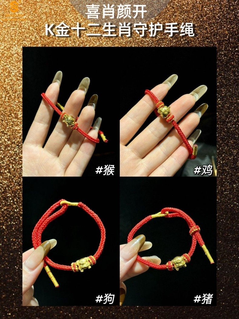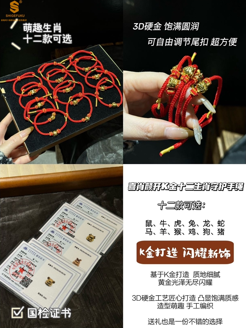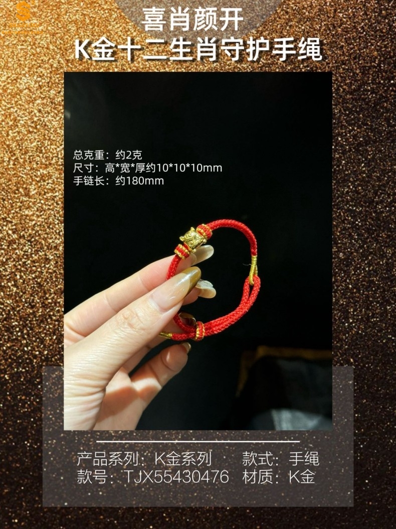 【品牌授权】喜肖颜开K金十二生肖守护手绳【香港周六福黄金钻石首饰】