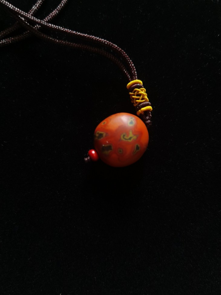 药师珠为缠丝玛瑙类,因外形多为圆形的珠身,又称为圆线珠。