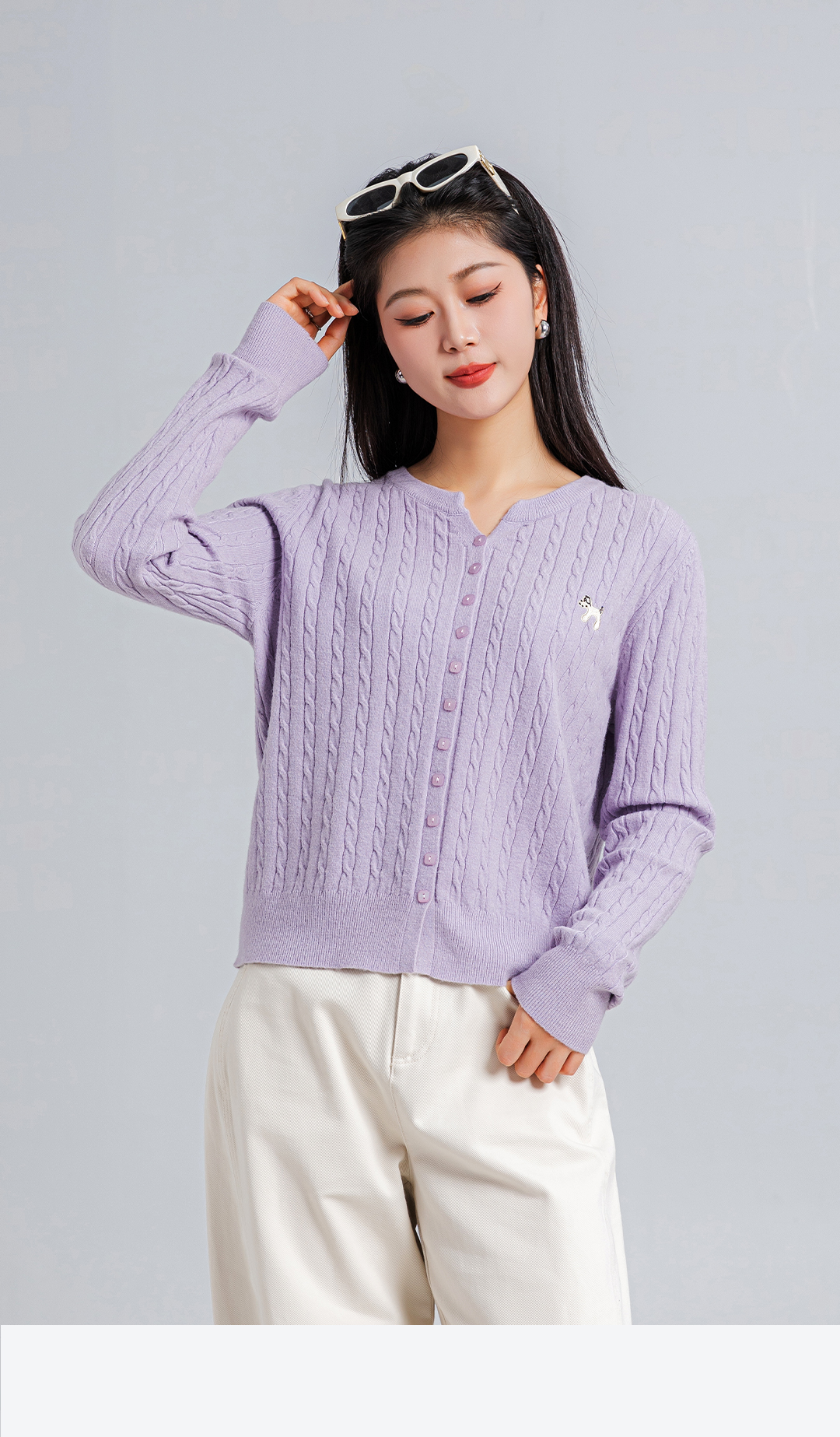 春上新温柔风紫色开衫绞花百搭显瘦毛衣1261019