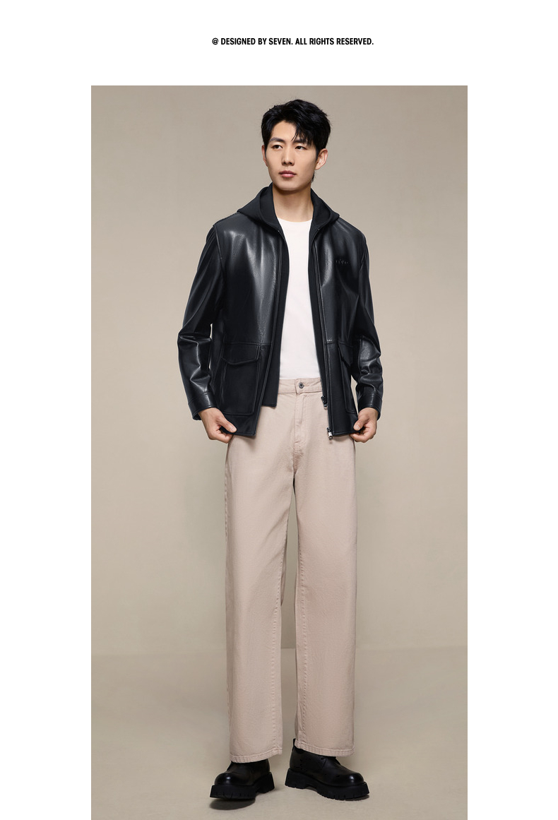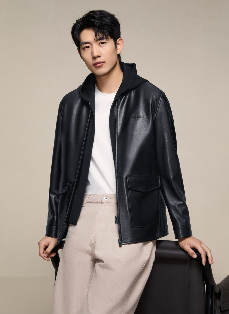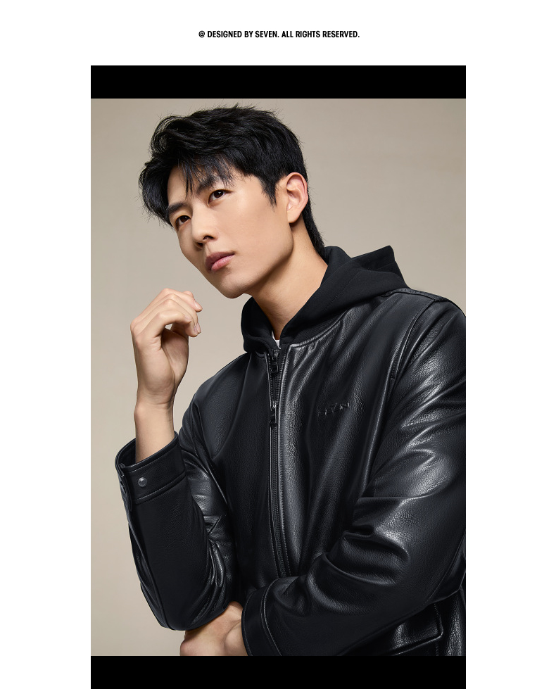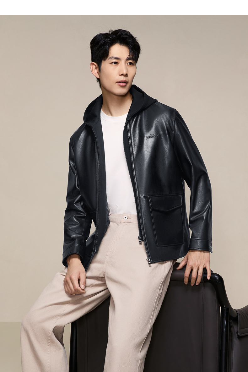 【绵羊皮】柒牌皮衣2025秋冬新款可拆卸针织连帽百搭商务休闲外套129J70530
