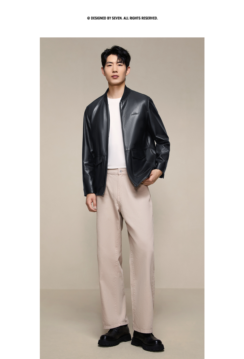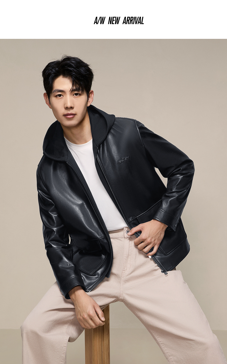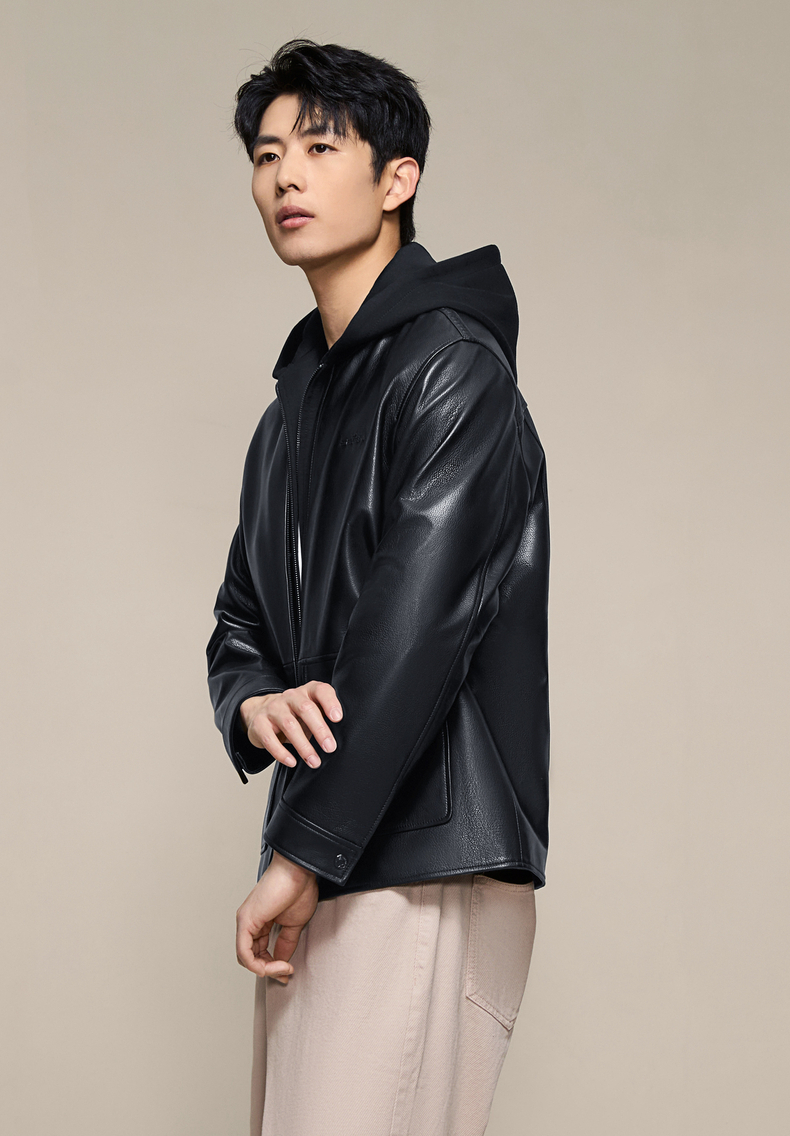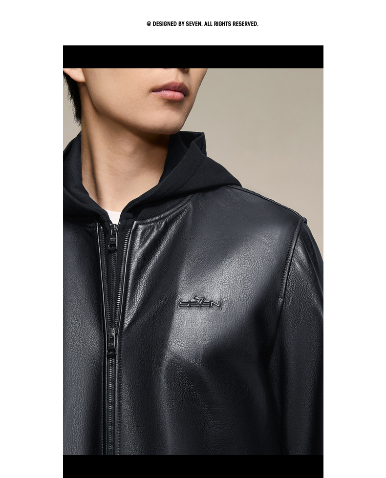 【绵羊皮】柒牌皮衣2025秋冬新款可拆卸针织连帽百搭商务休闲外套129J70530