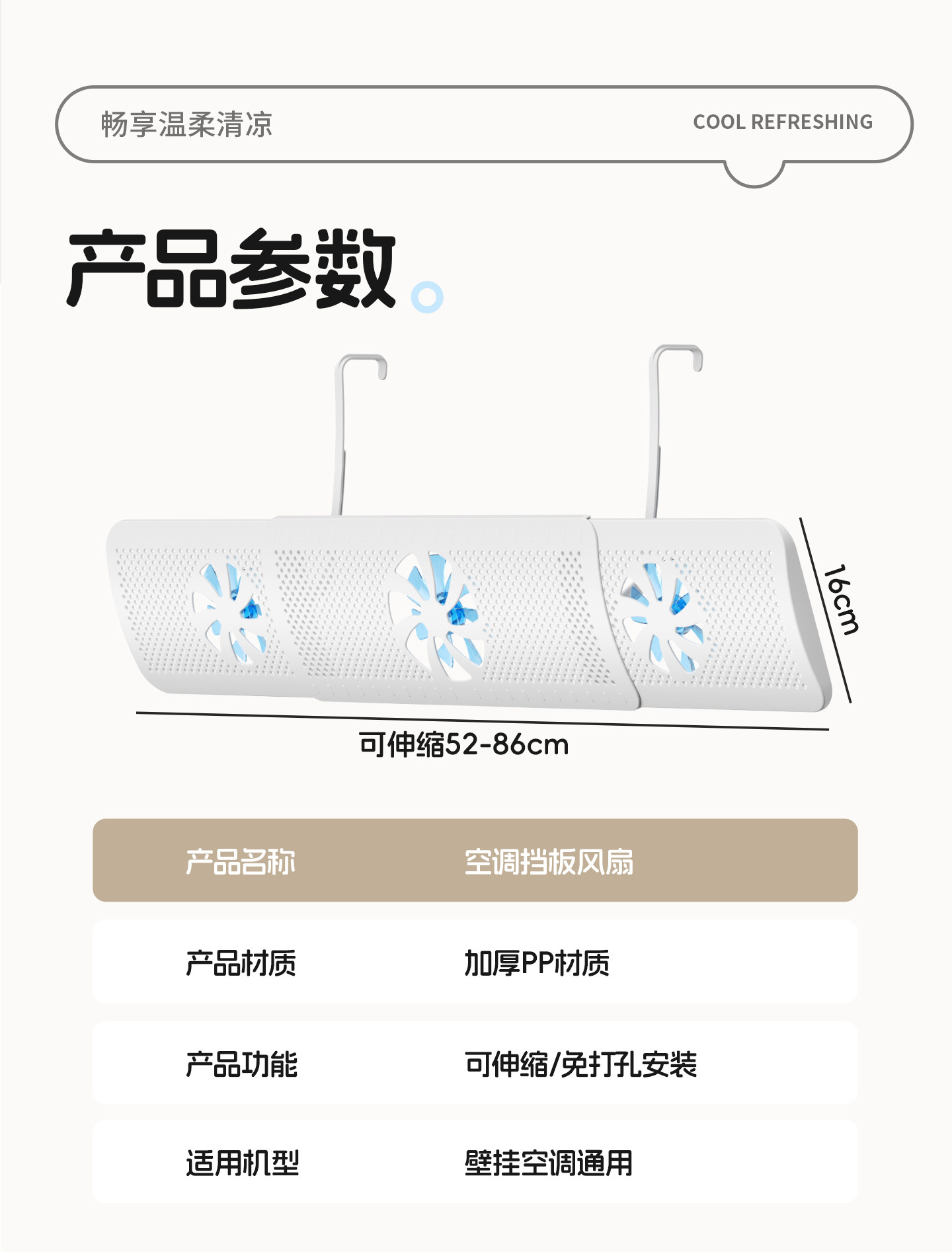 【有凉感无风感❗柔感导风板】空调挡风板新款循环扇挡风板防直吹壁挂式空调出风口挡板静音。rh