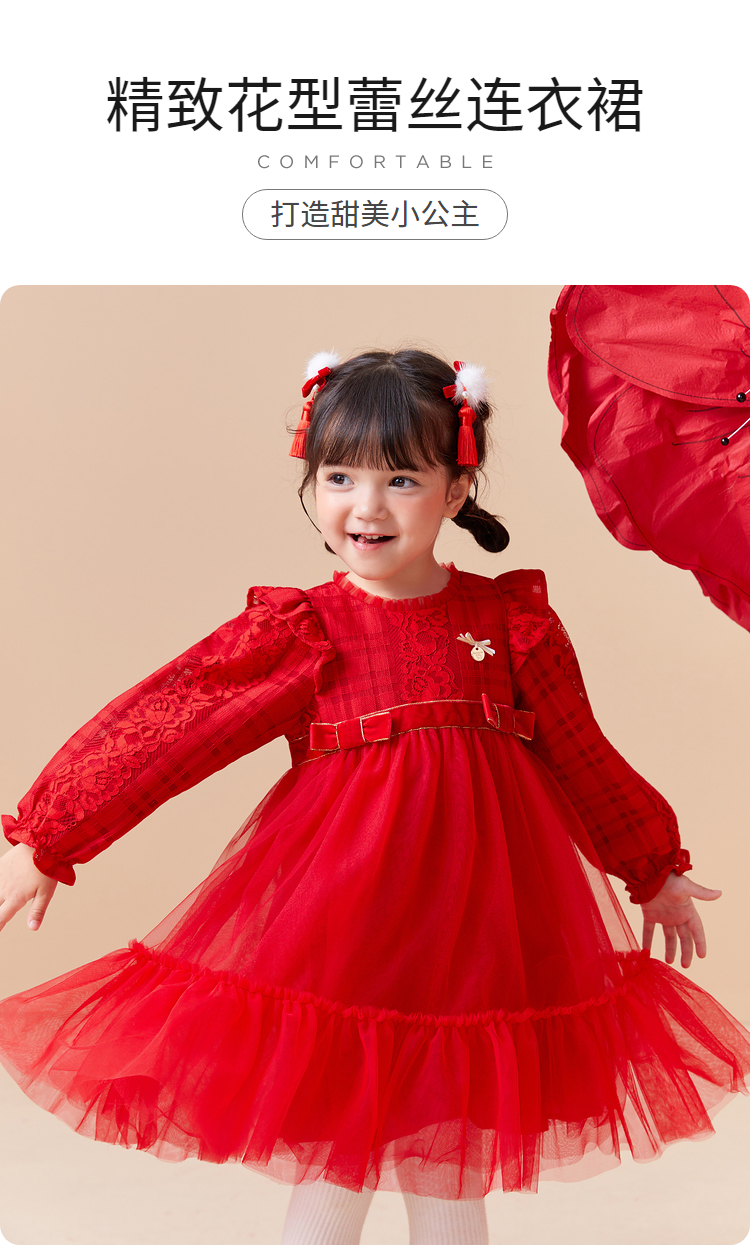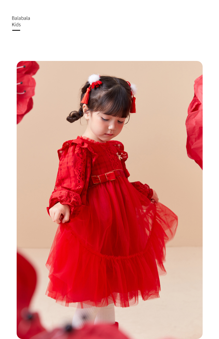 巴拉巴拉女童裙子新款宝宝连衣裙儿童童装甜美洋气蕾丝公主裙