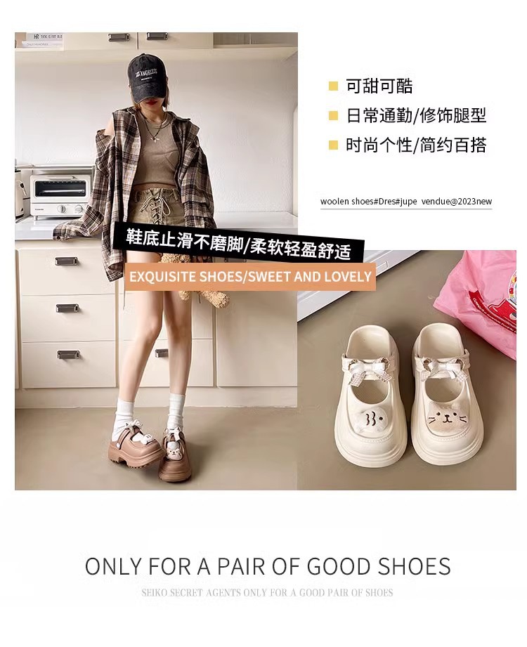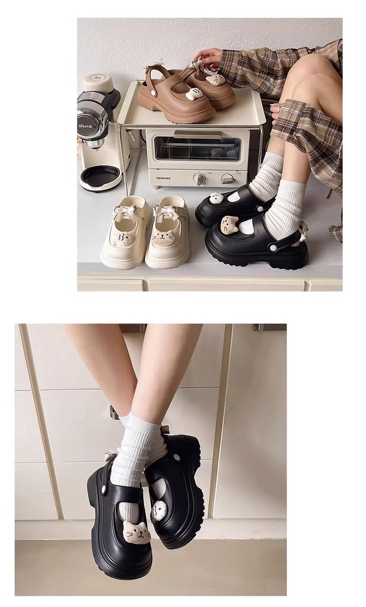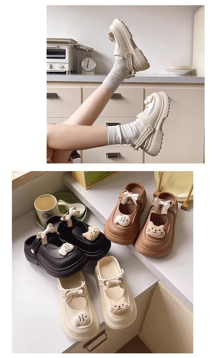 【夏日海边必备!可爱踩屎感洞洞鞋】新款可爱卡通小鱼洞洞鞋女款外穿夏季甜美蝴蝶结踩屎感半拖鞋,日常通勤。ry