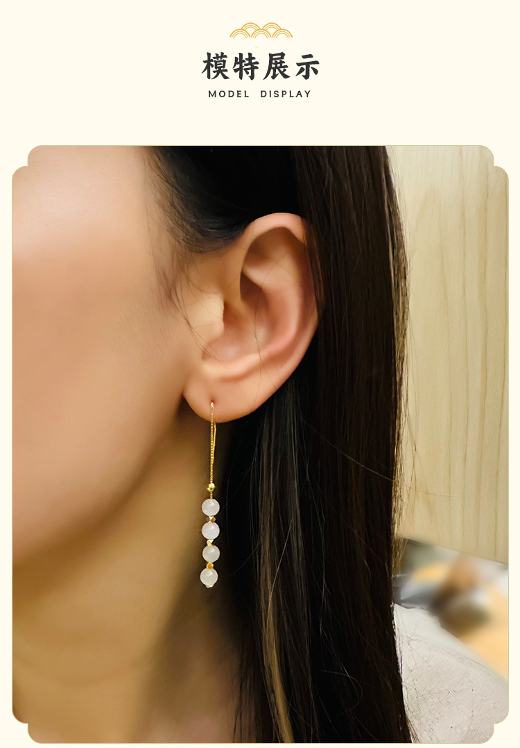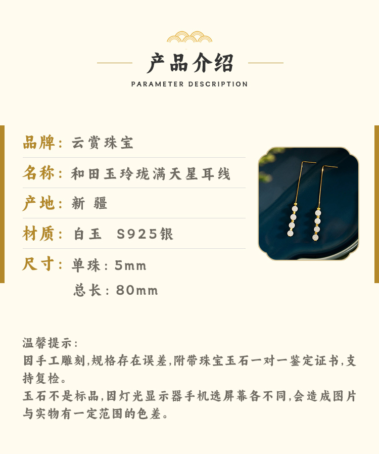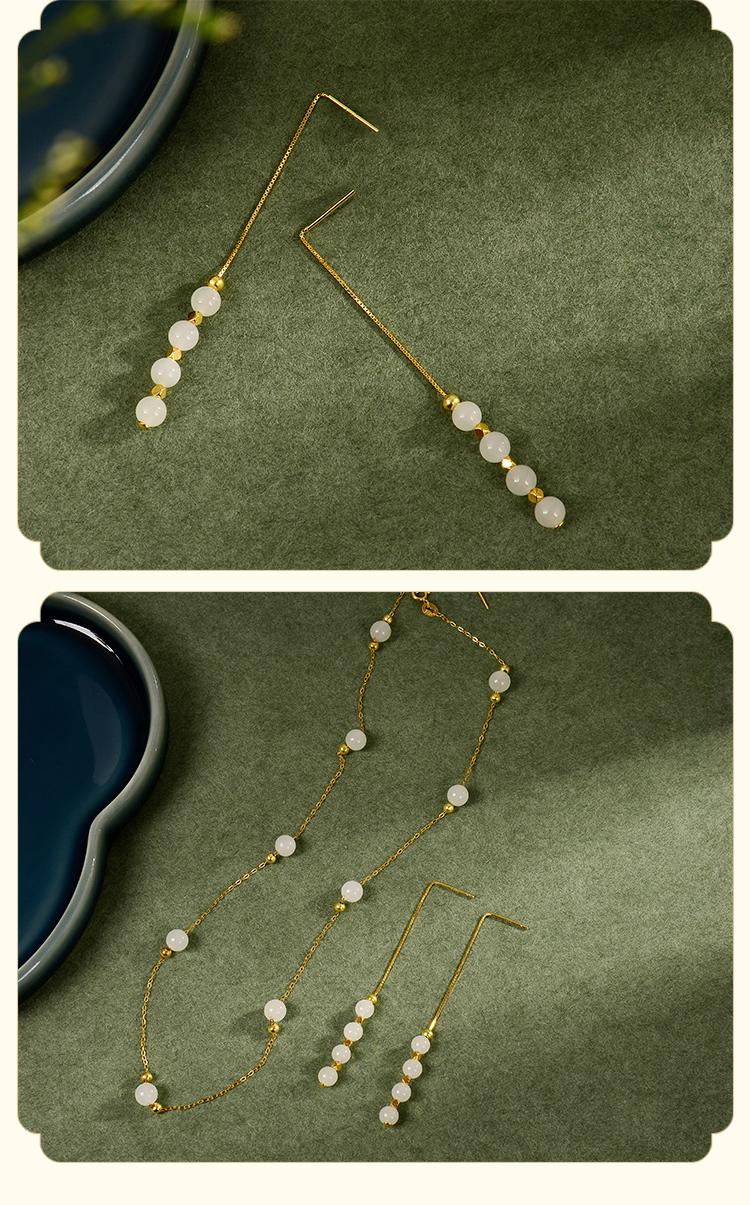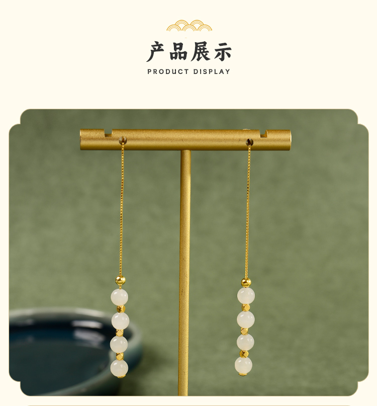 ysfb-03007【云赏珠宝】新中式和田玉玲珑耳坠s925纯银耳线耳环