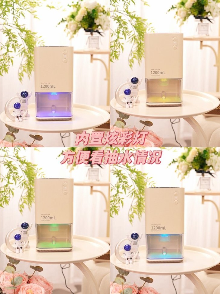 ● 内置炫彩灯,营造浪漫氛围 除湿机还能化作一个炫彩的小夜灯,营造氛围的高手,七彩颜色自动转换,非常的漂亮,晚上把它放在卧室,光线柔和不刺眼。