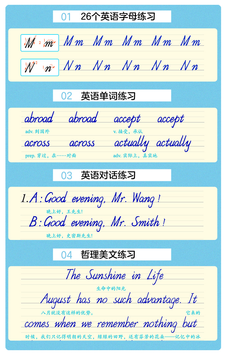 英语字帖意大利斜体花式哥特体练字大学生高中生初中生意大利斜体花体书法字帖墨点哥特体英文字帖凹槽练字帖