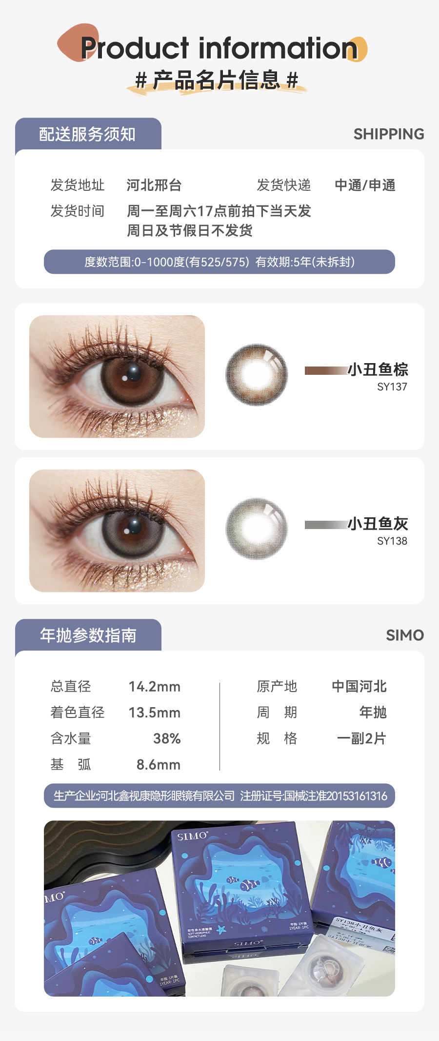 「2副均¥69」SIMO小丑鱼棕/小丑鱼灰 年抛 | 着色13.5mm 1副2片