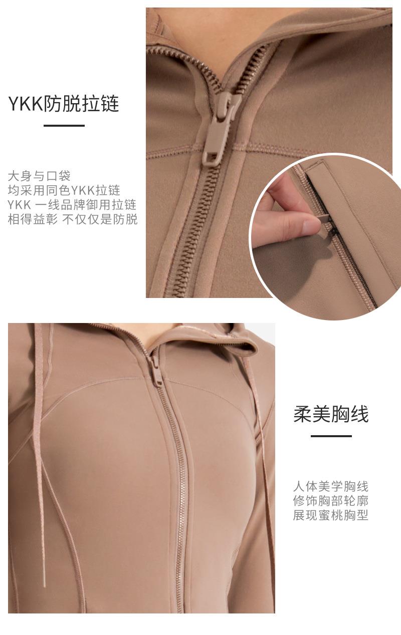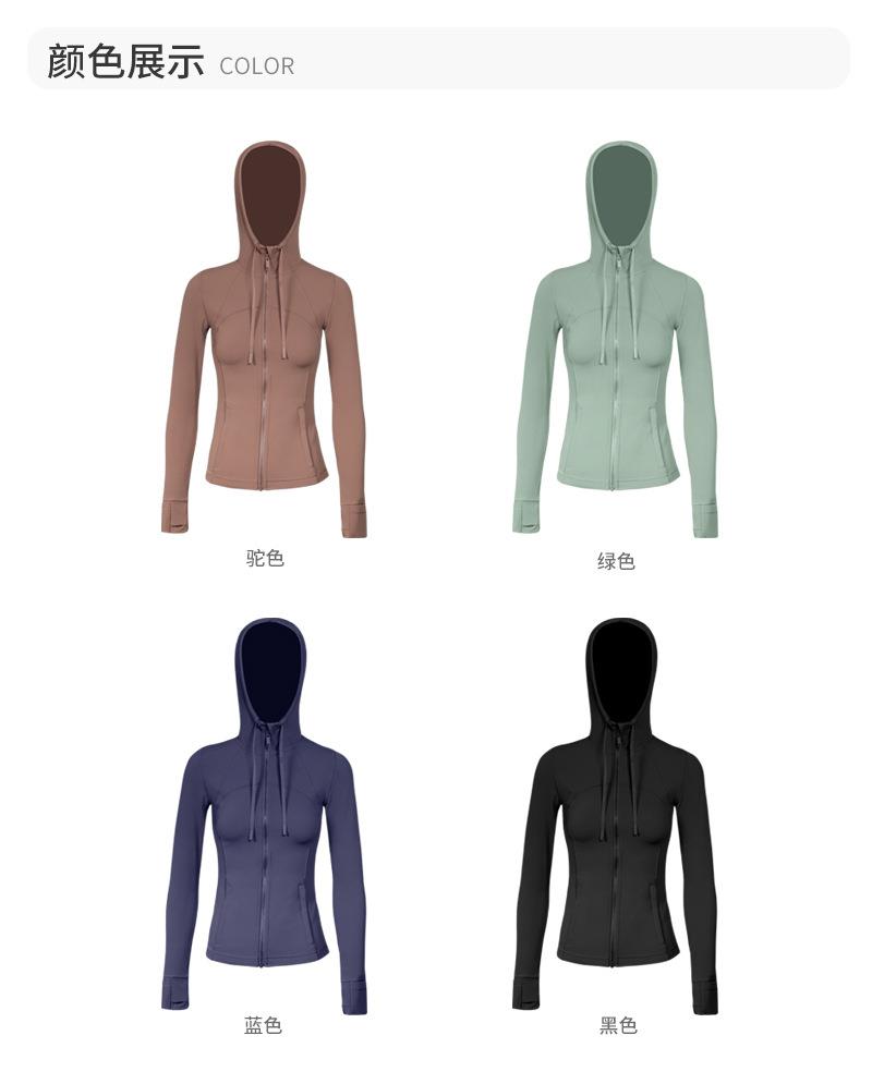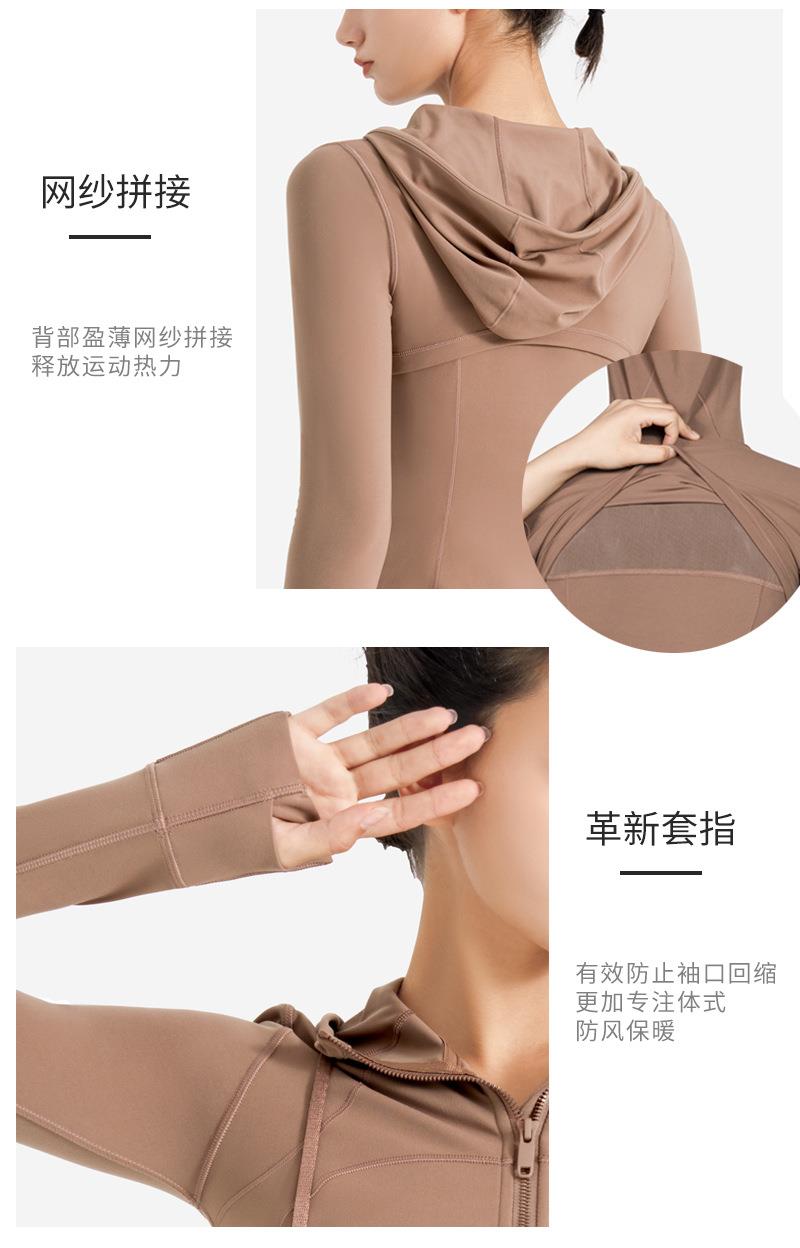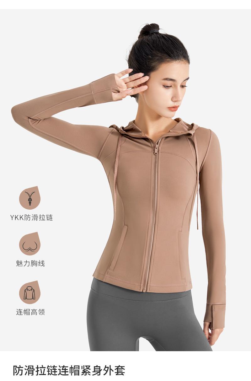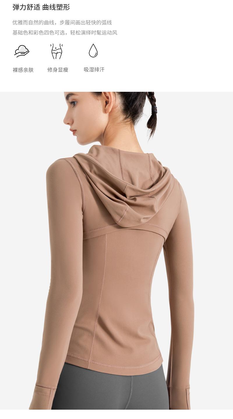 新款瑜伽服女外套裸感修身长袖高领连帽卫衣拉链速干健身运动上衣