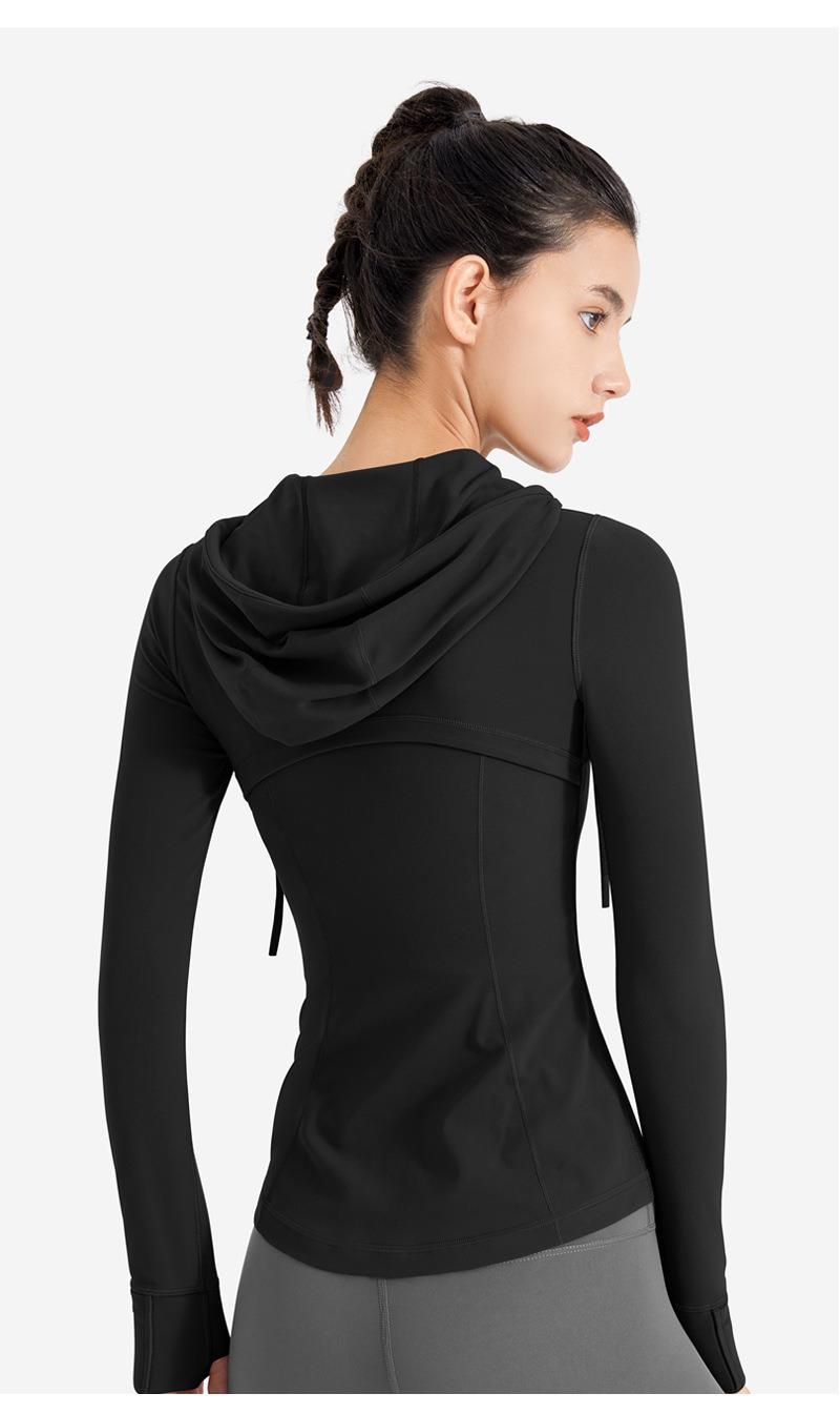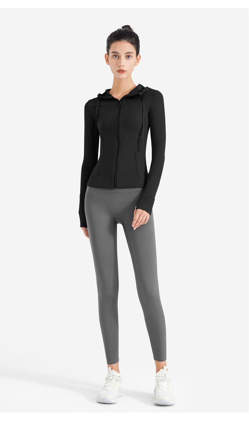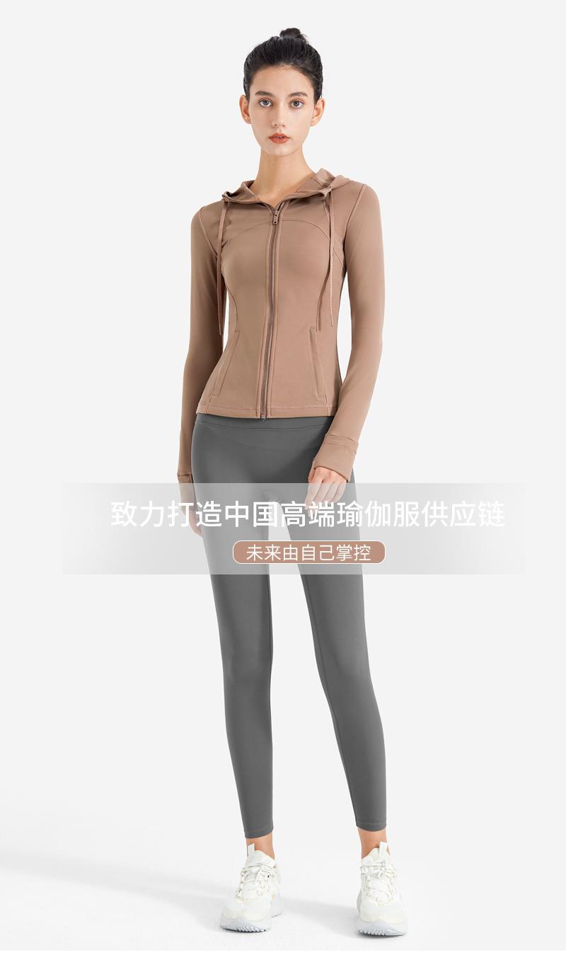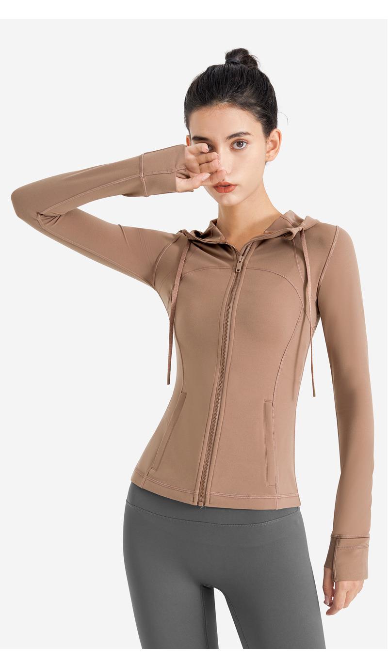 新款瑜伽服女外套裸感修身长袖高领连帽卫衣拉链速干健身运动上衣