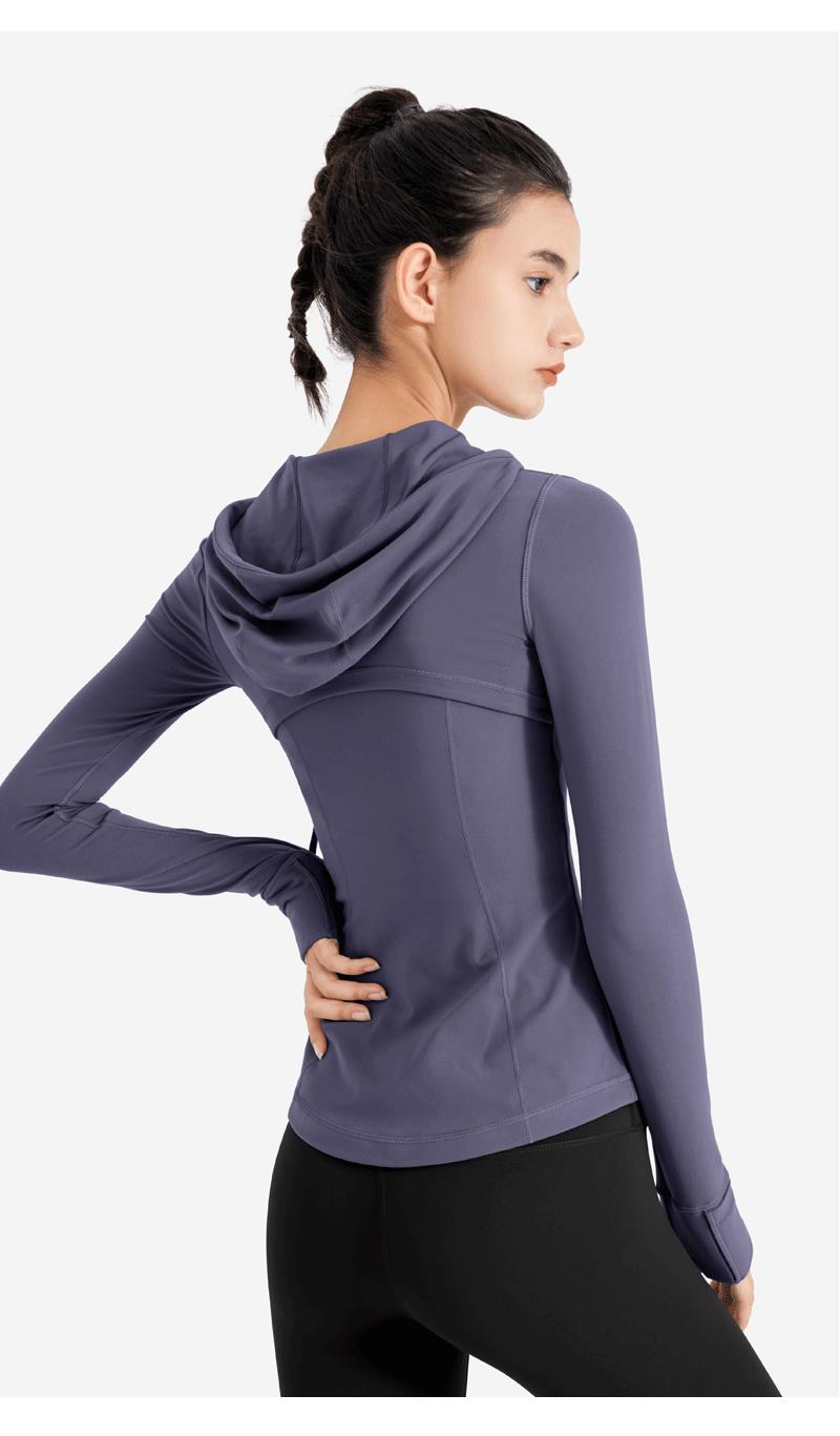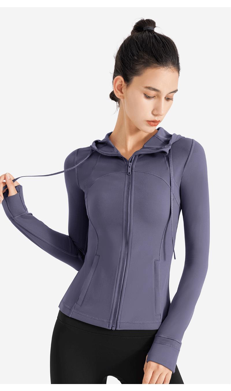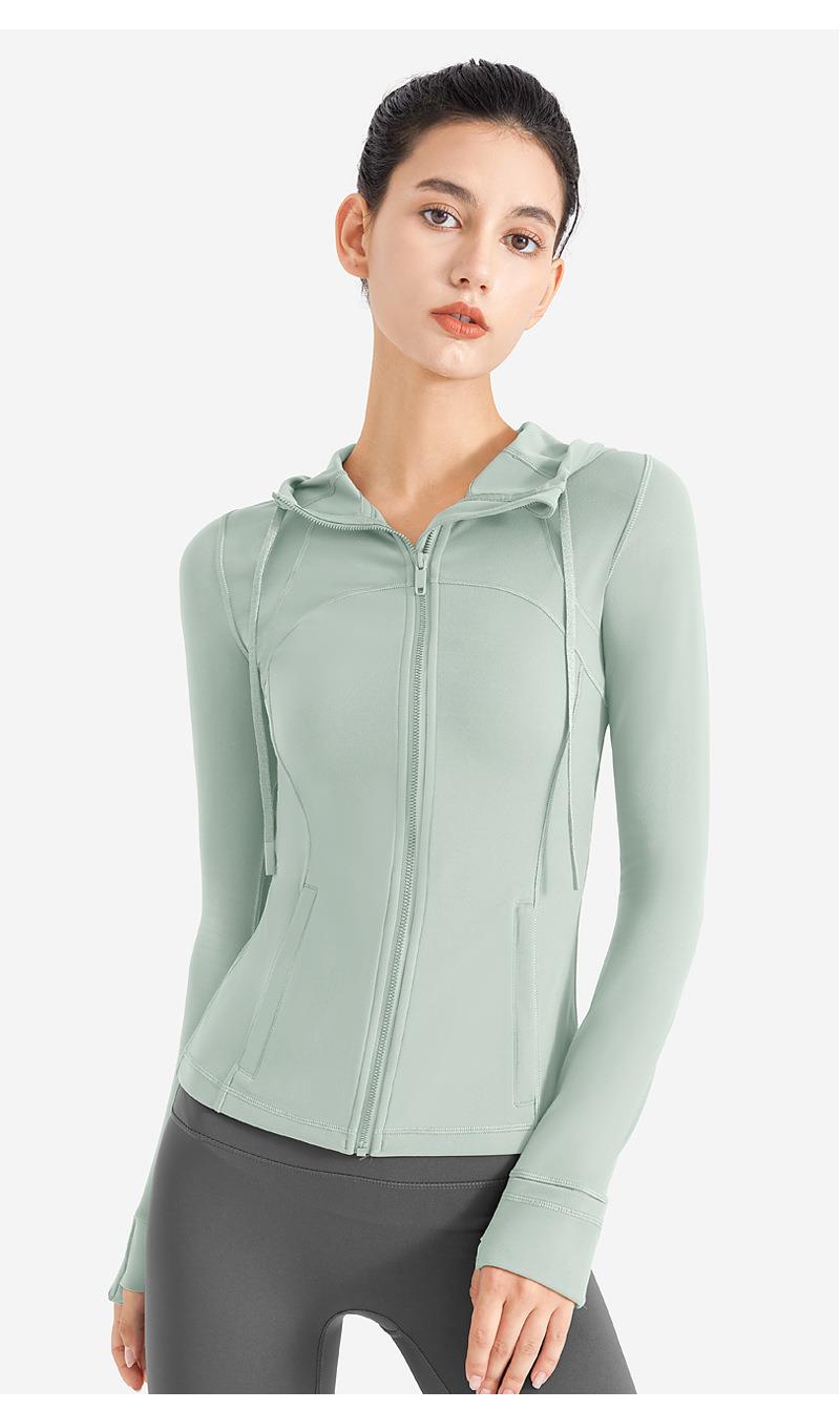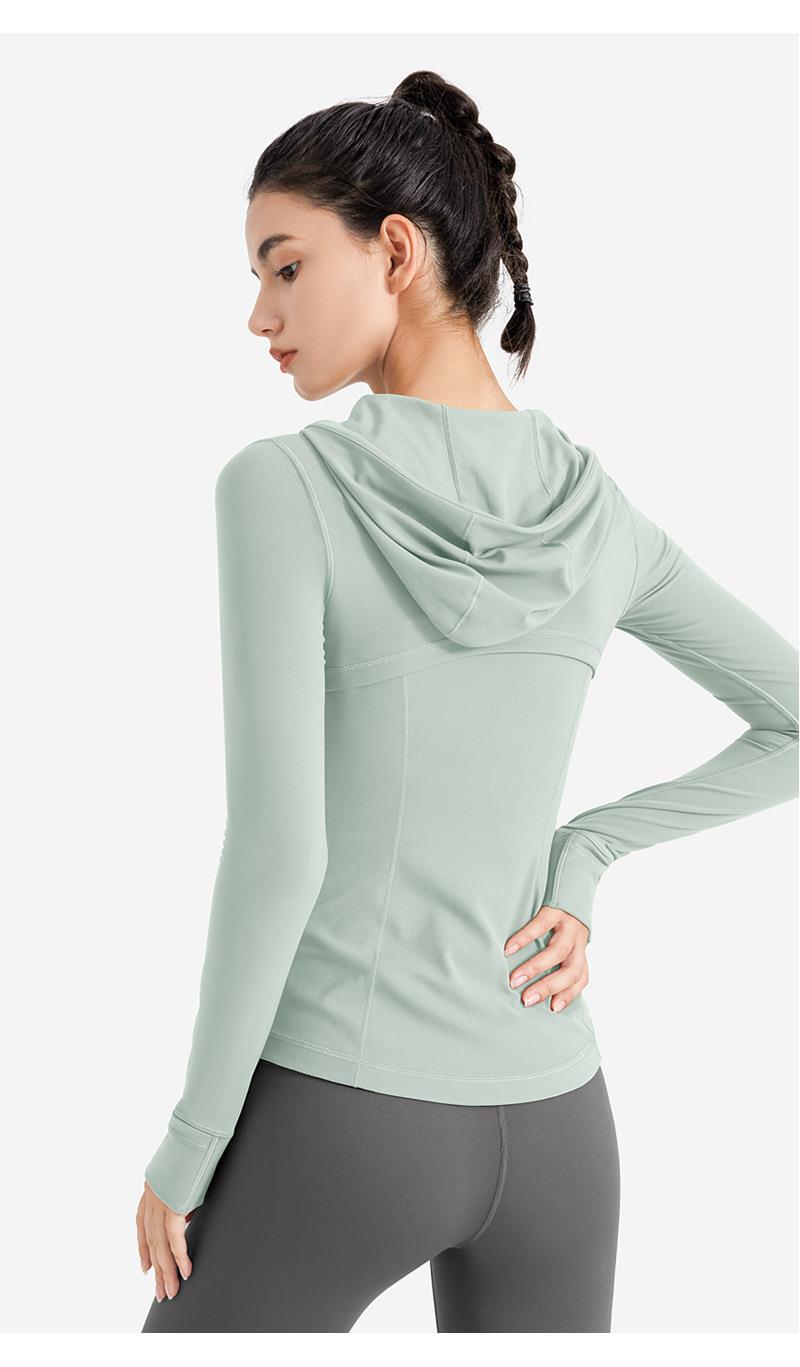 新款瑜伽服女外套裸感修身长袖高领连帽卫衣拉链速干健身运动上衣