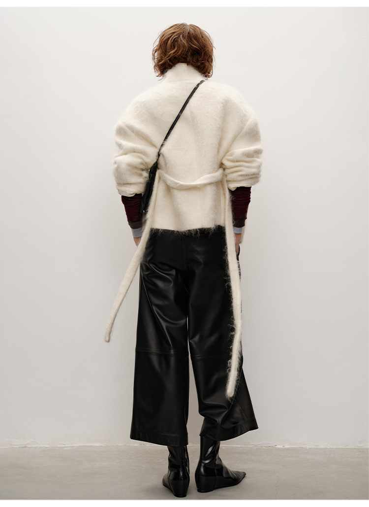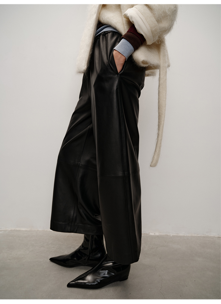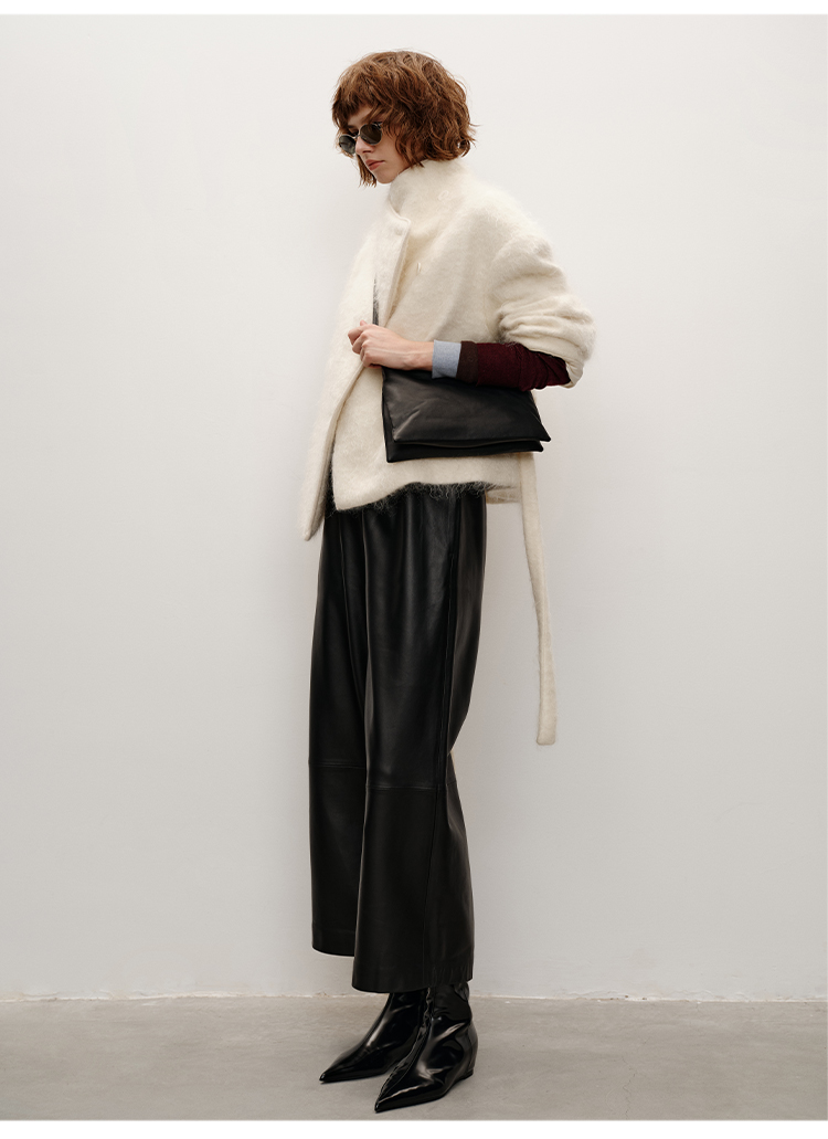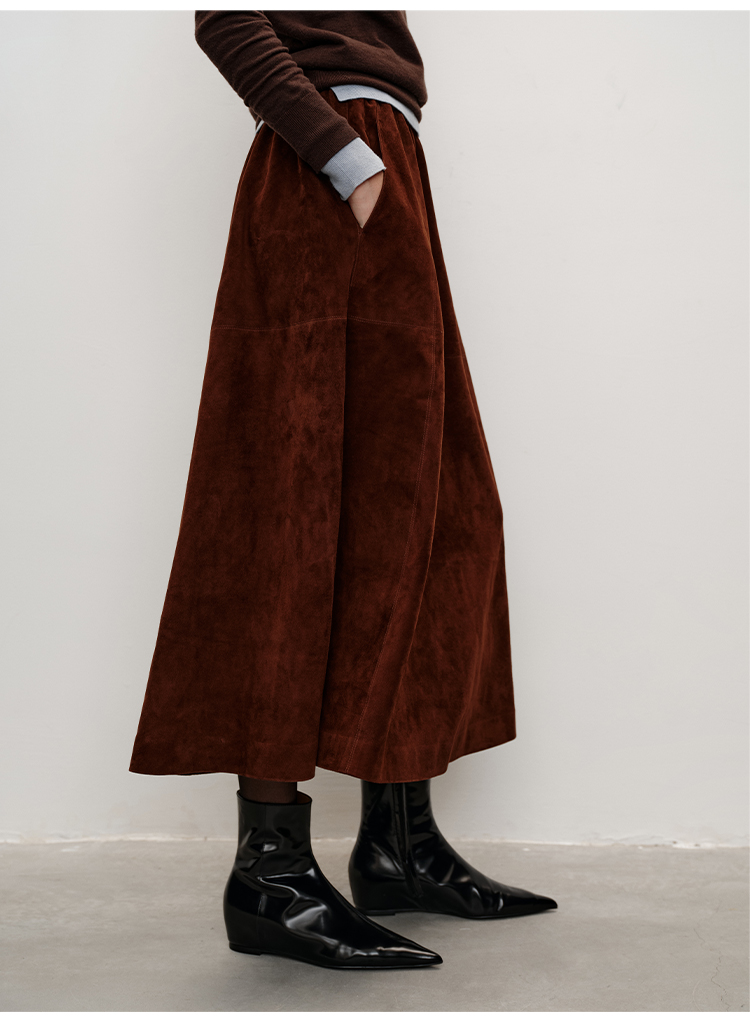 HIDEMI经典复古美拉德风开边珠牛皮尖头切尔西短靴内增高中缝踝靴