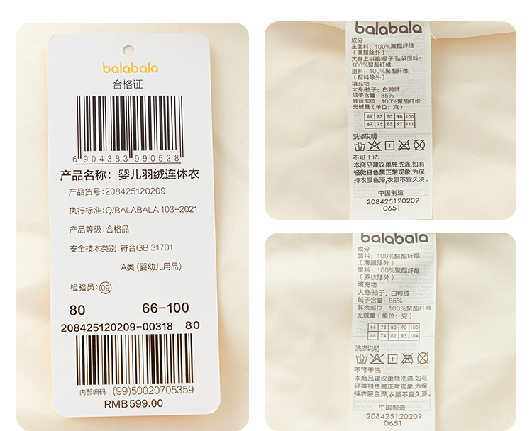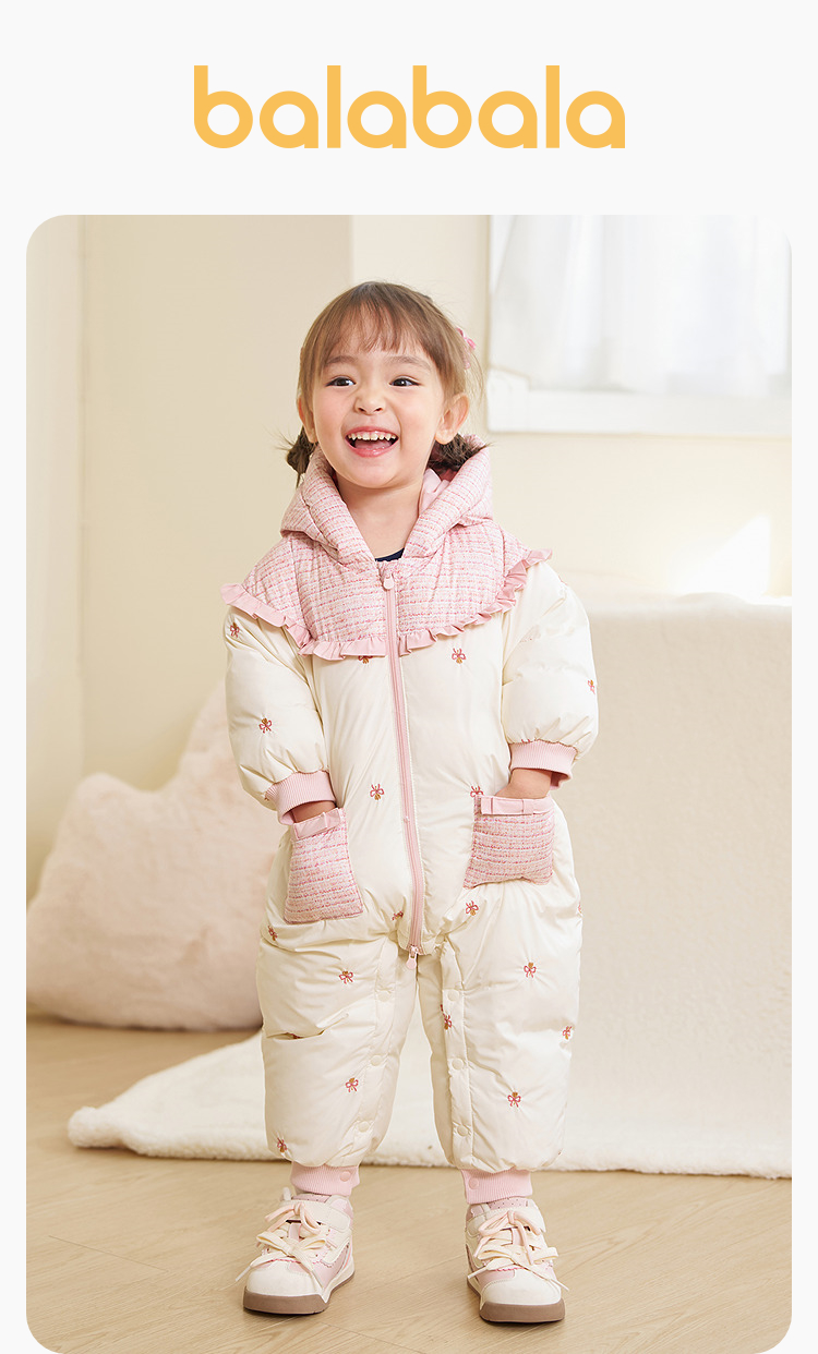 巴拉巴拉balaOne婴儿连体衣女童羽绒服2025新款抱衣爬服甜美时尚
