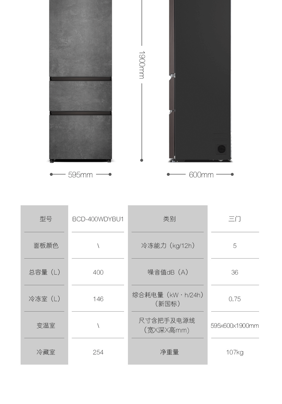 卡萨帝 (Casarte)400升三门冰箱 组合嵌入式 MSA控氧保鲜空间 婴爱空间BCD-400WDYBU1