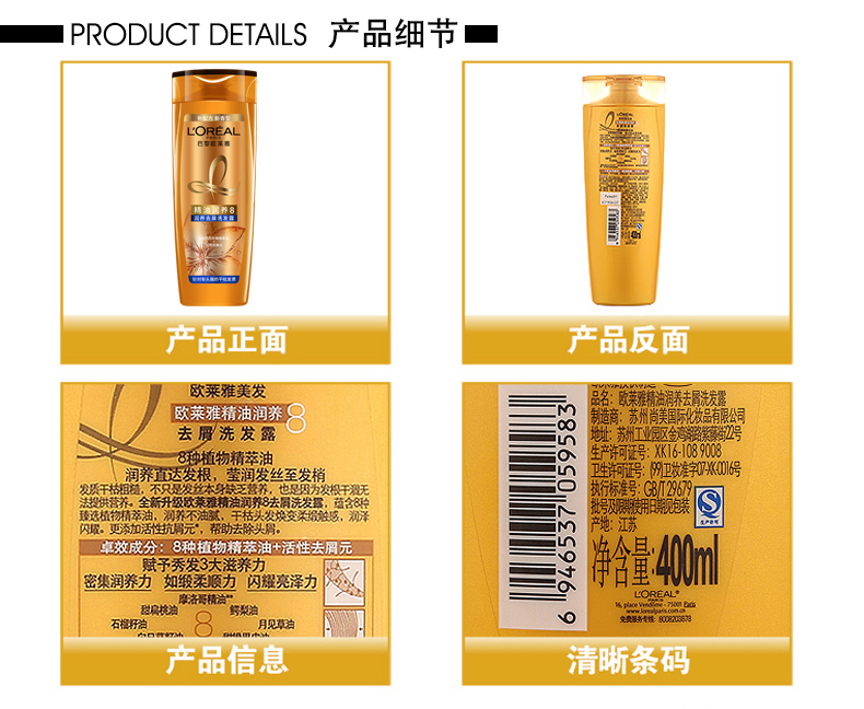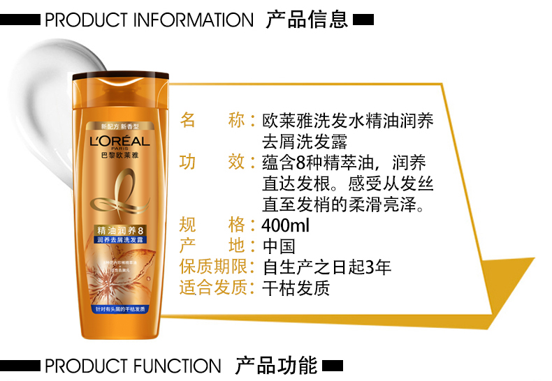 欧莱雅精油润养去屑洗发露400ML