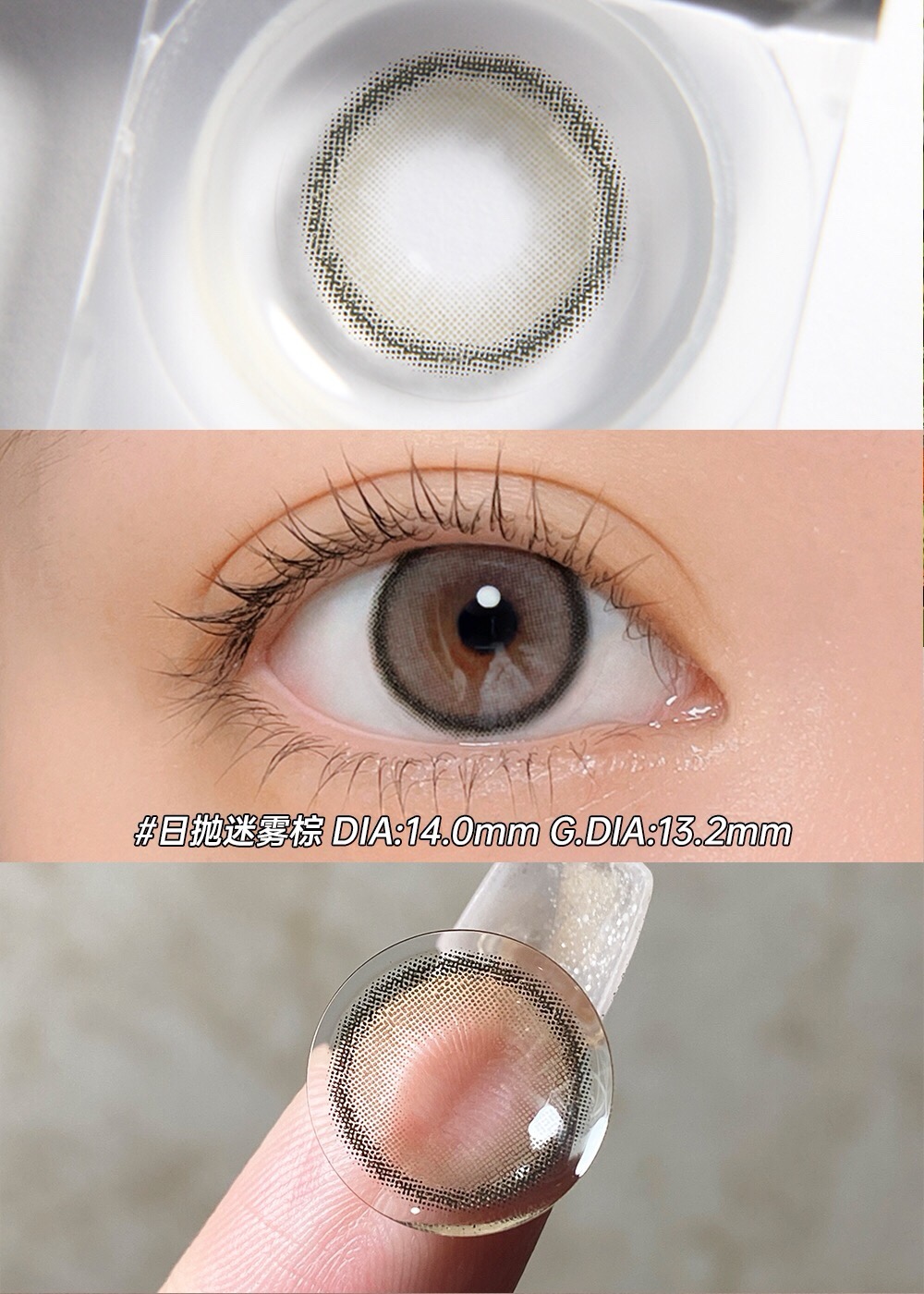 日抛迷雾棕 直径14.2 染色13.2 基弧8.7 含水量43%