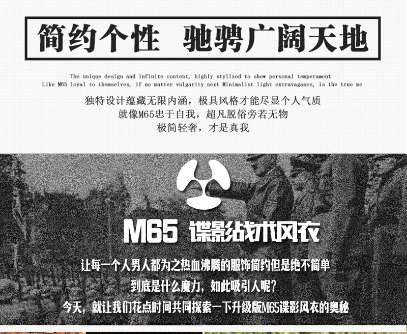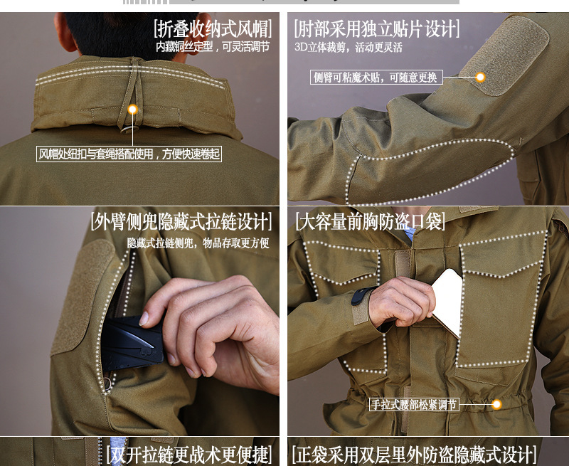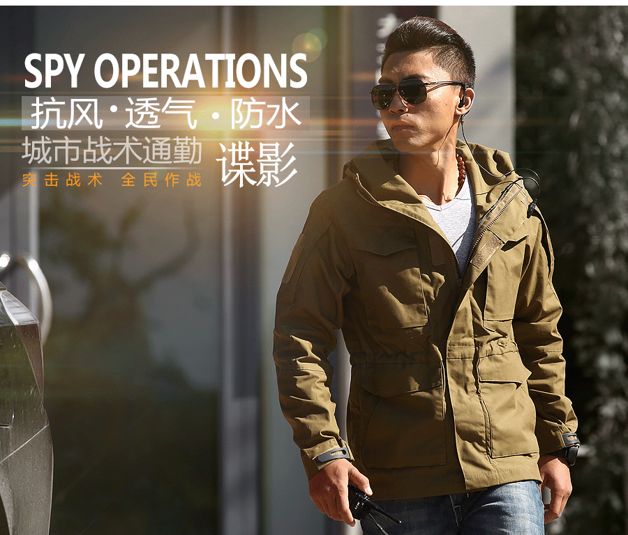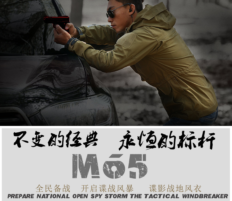 昂垦春秋谍影战术外套男M65军迷风衣中长款防水户外机能冲锋衣服
