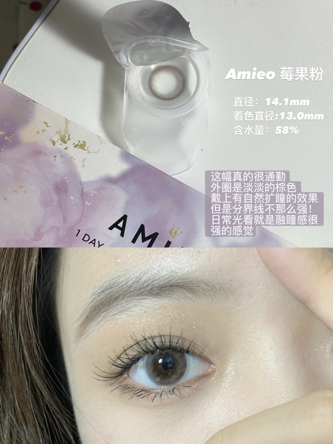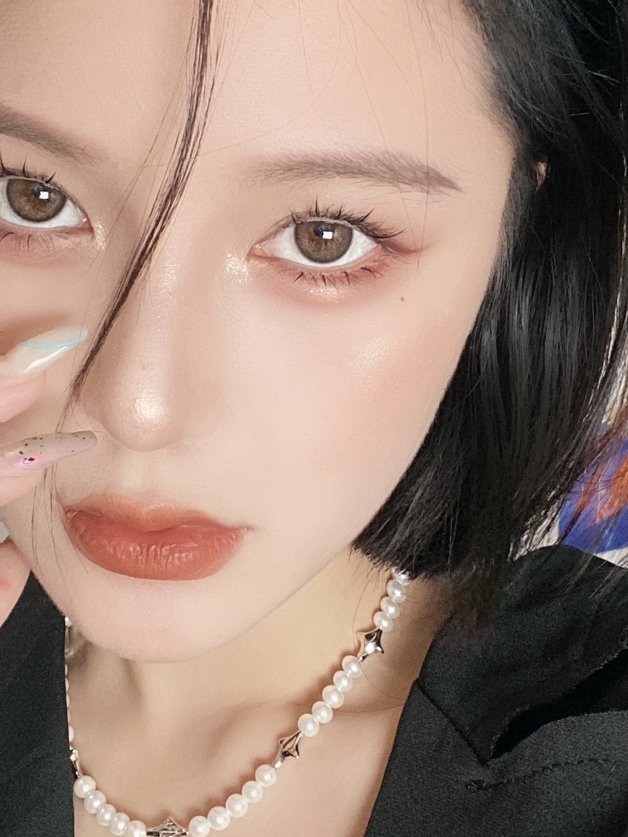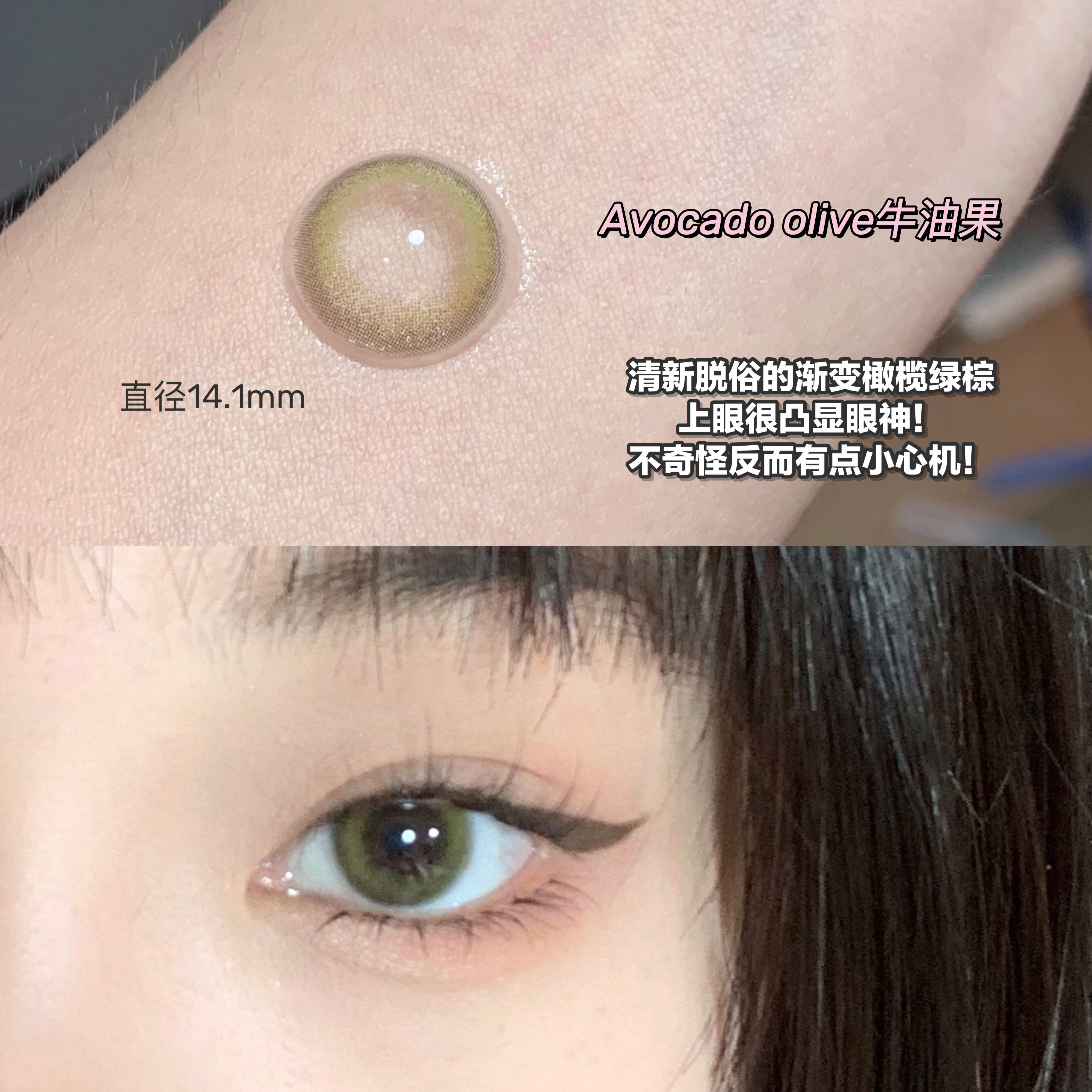 说实在的 绿色美瞳我最爱的就是这款了 牛油果绿和一点橙色调的微渐变 特别显白 显得妆容也特干净的那种 真的特别自然又灵动。
