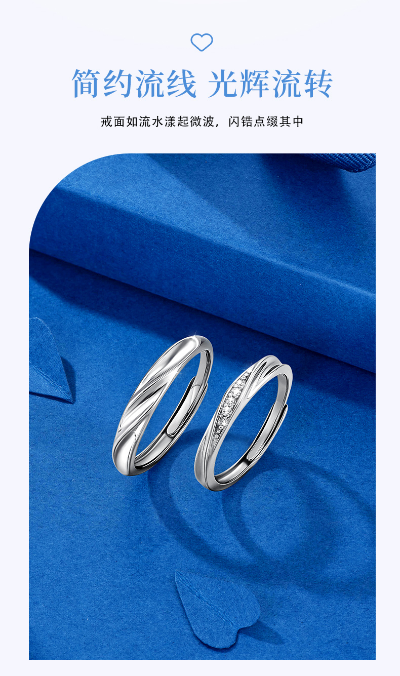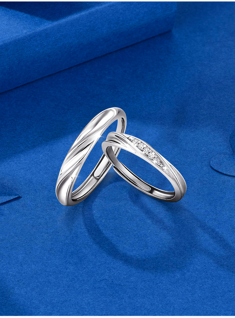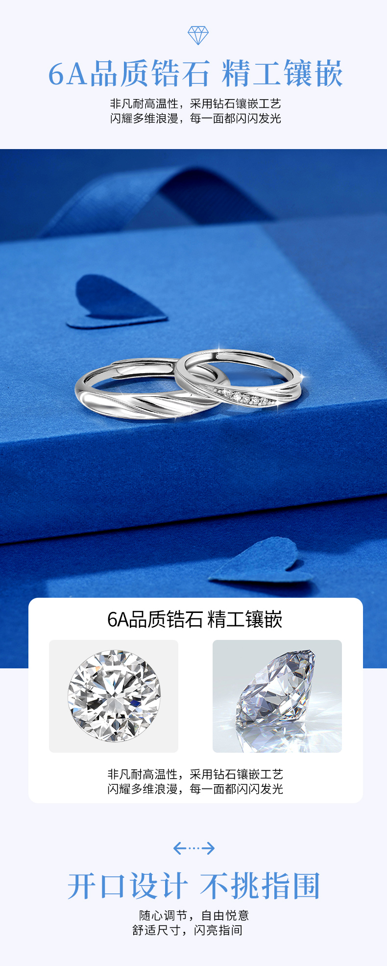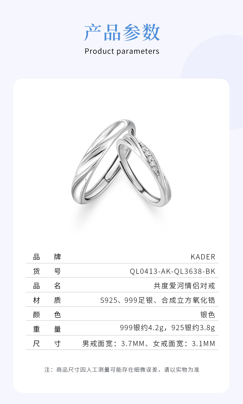 KADER卡蒂罗 共度爱河情侣对戒 【可定制刻字】 S999/S925银 镶嵌宝石 开口可调节戒指 男女同款情侣款 节日送礼物#礼盒款