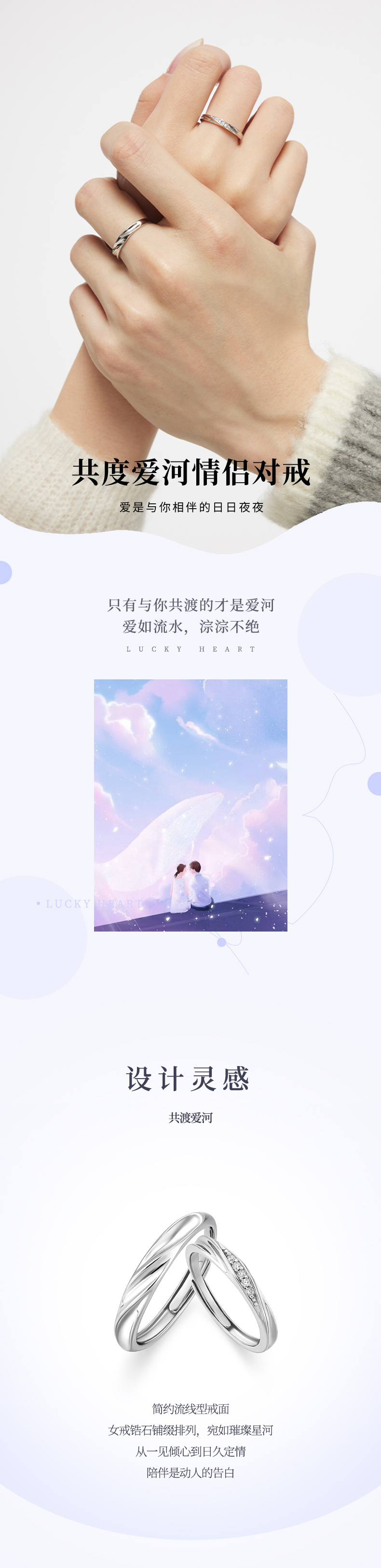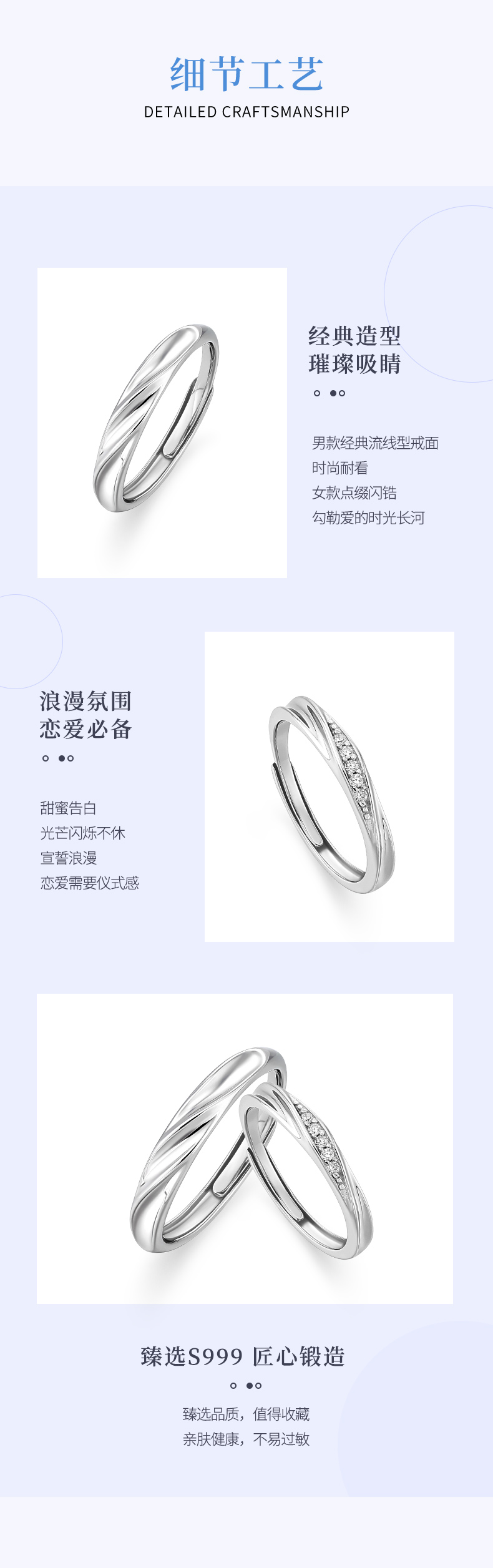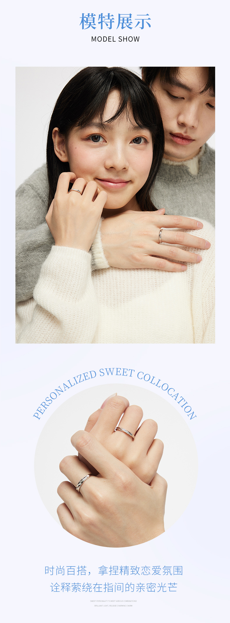 KADER卡蒂罗 共度爱河情侣对戒 【可定制刻字】 S999/S925银 镶嵌宝石 开口可调节戒指 男女同款情侣款 节日送礼物#礼盒款