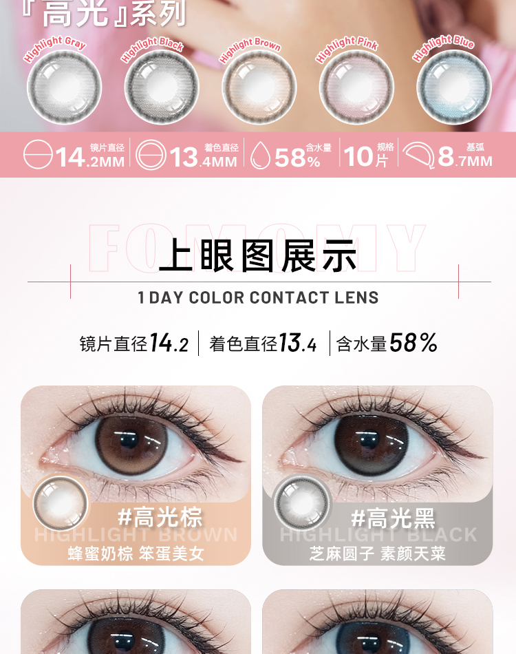 「上海保税仓发货」【拍3盒230】FOMOMY HIGHLIGHT高光系列 美瞳日抛 10片装