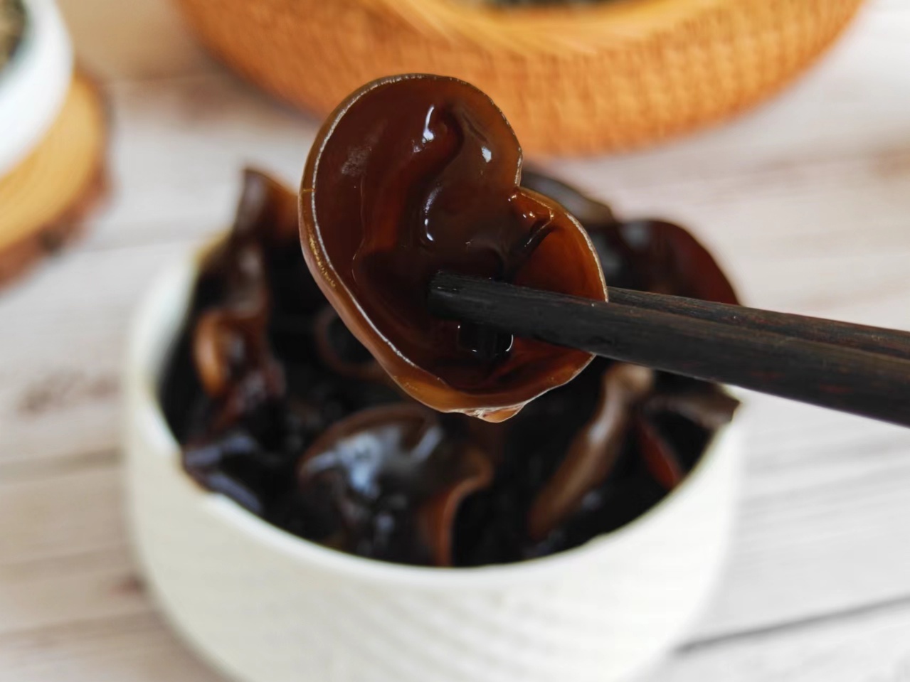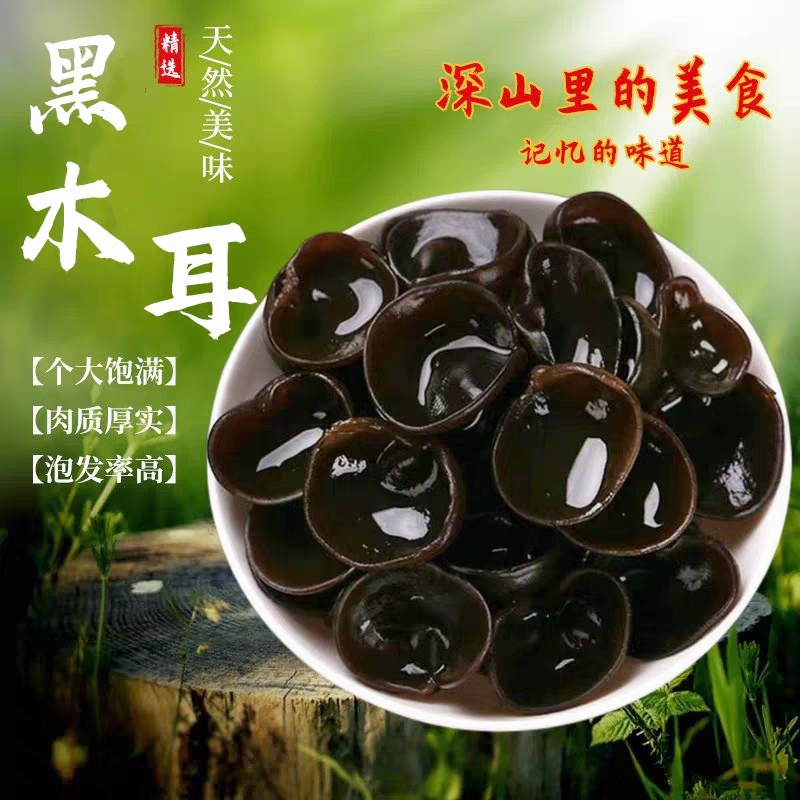 东北黑木耳,含有丰富的矿物质和微量元素,维生素族群,蛋白质、明胶等。黑木耳的肉质肥厚更有“素中之荤”