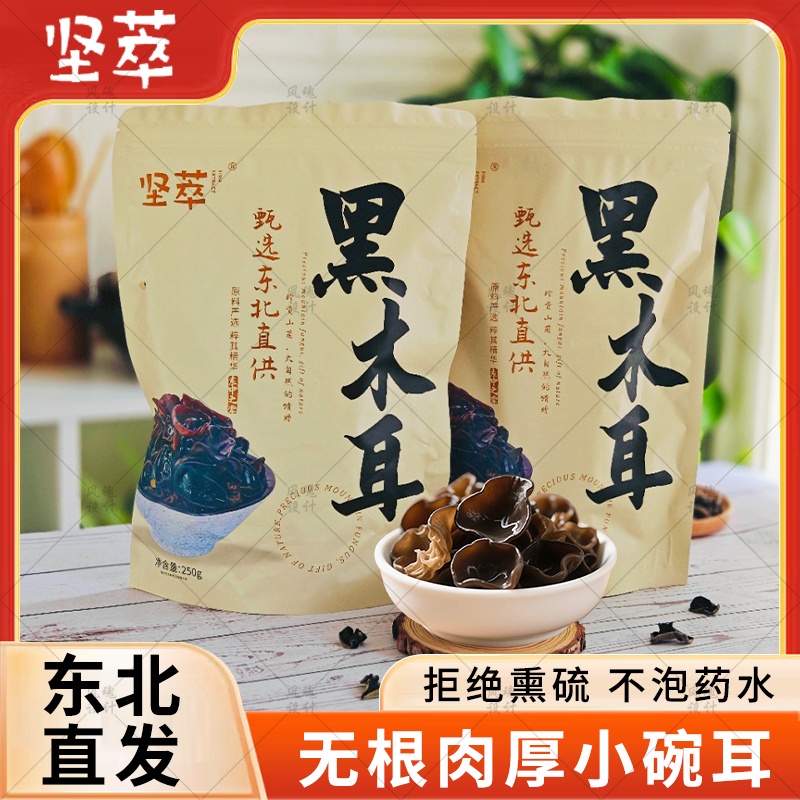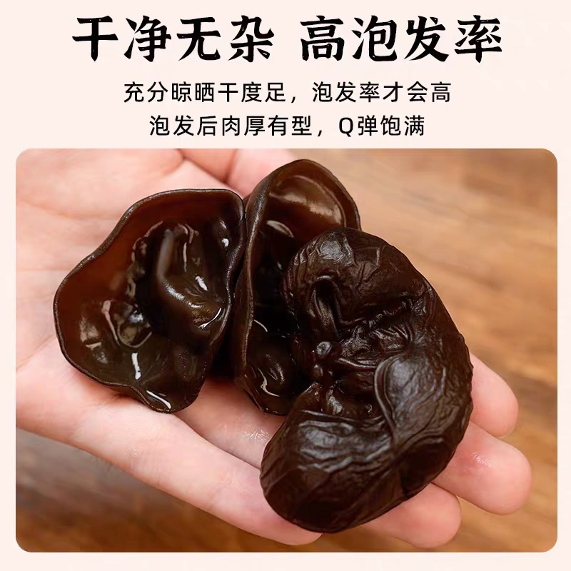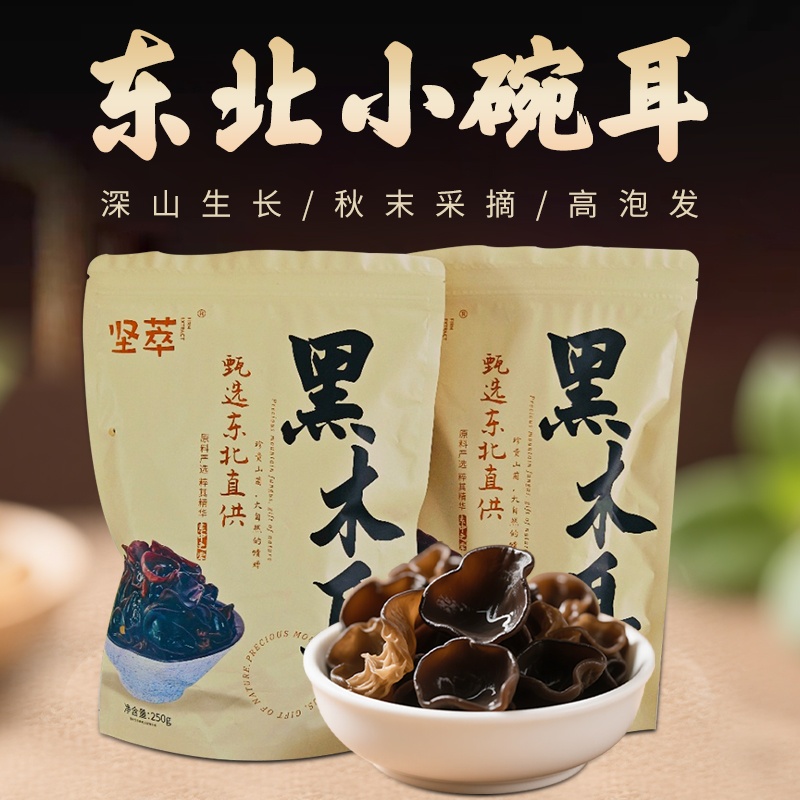 东北气候寒冷,昼夜温差大,有利腐植菌的生长,黑木耳作为东北最知名的山珍,是这片白山黑水间孕育的瑰宝,东北的低温使黑木耳比南方的黑木耳有了更久的生长周期,使其肉质更厚,营养更高,干品时颜色鲜亮,泡发后有弹性,富有光泽。