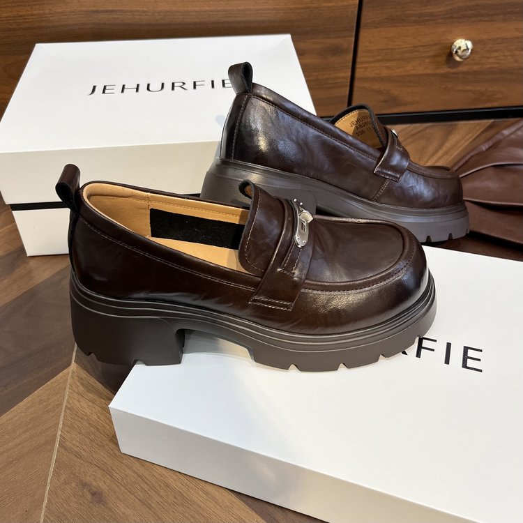 JEHURFIE/纪华菲6cm小银扣~复古擦色手抓牛皮厚底乐福鞋【2603好鞋子】