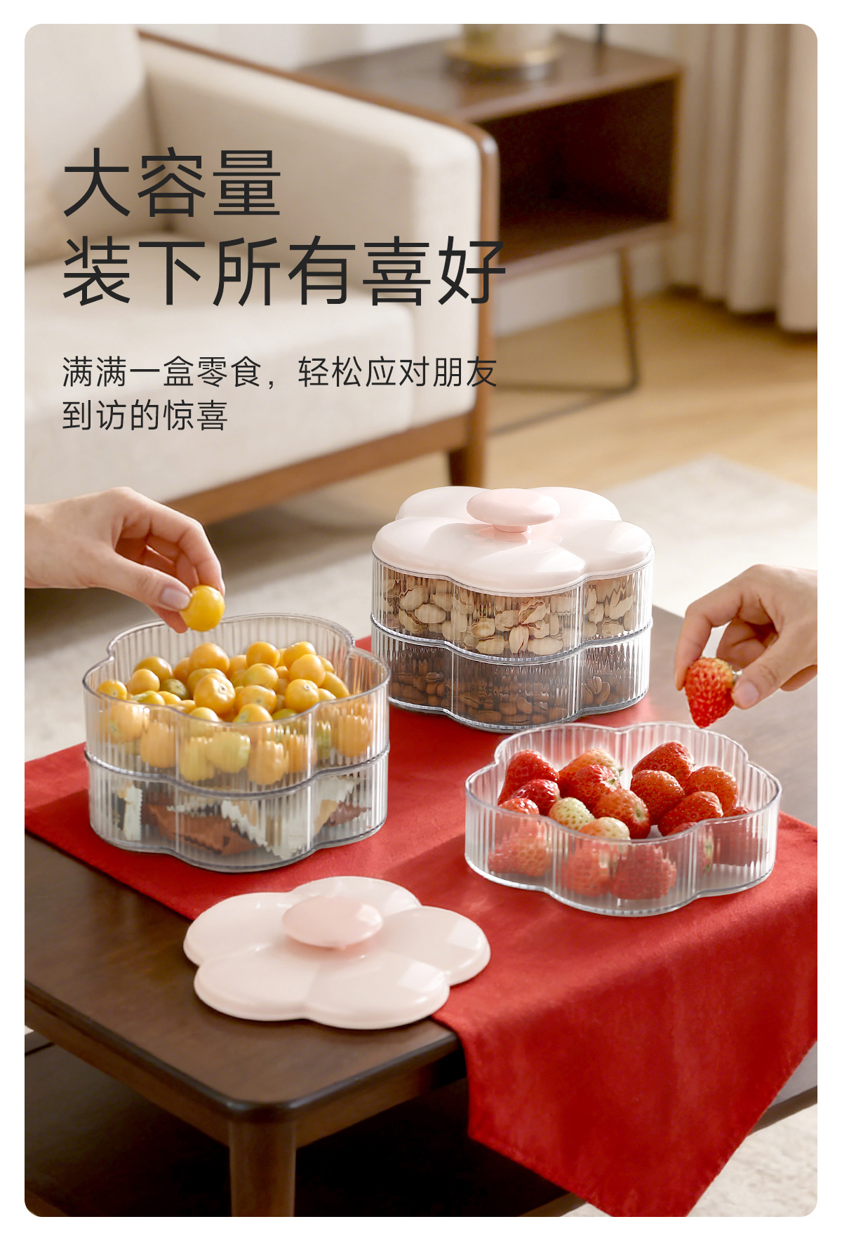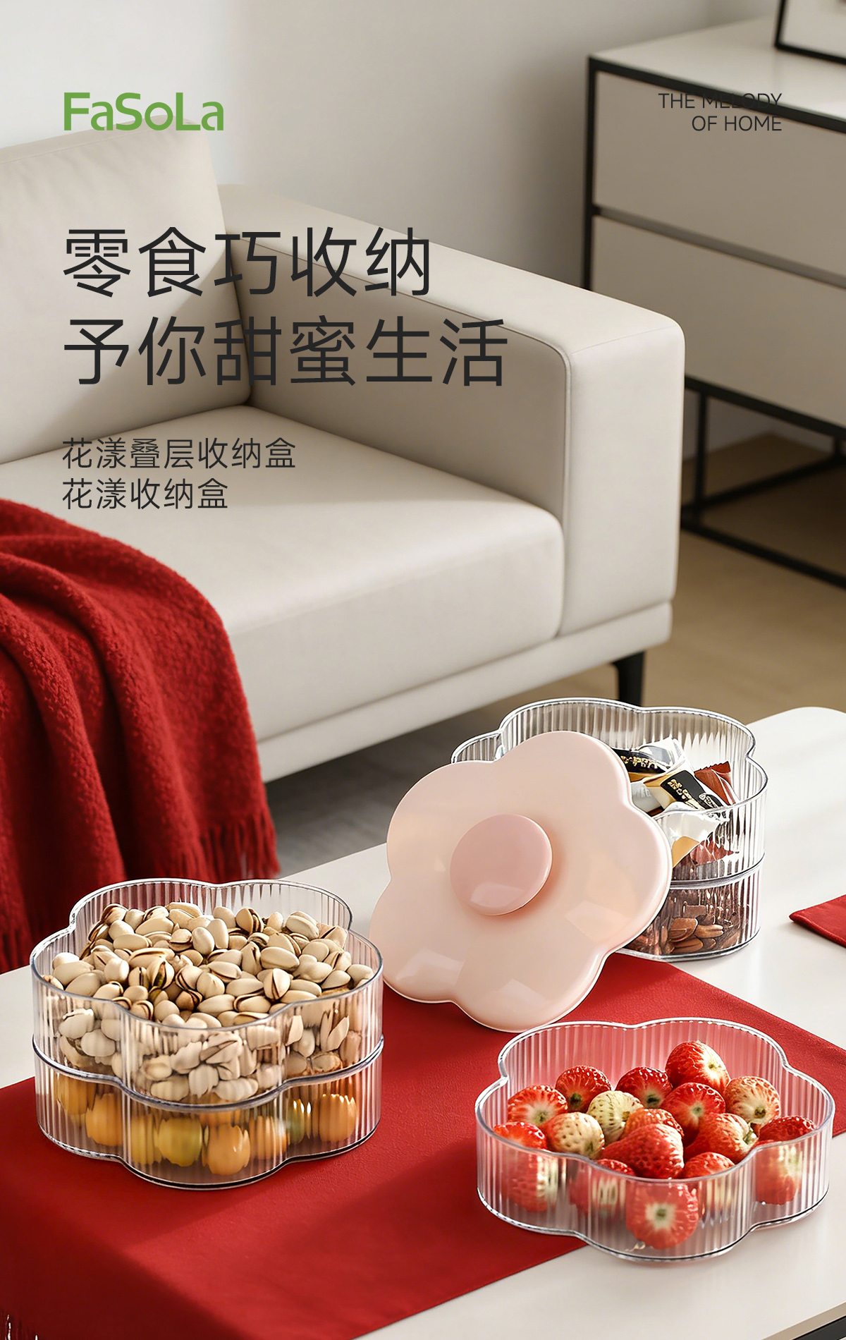 FaSoLa多层干果盘新款带盖客厅茶几家用干果盒零食瓜子叠加收纳盒