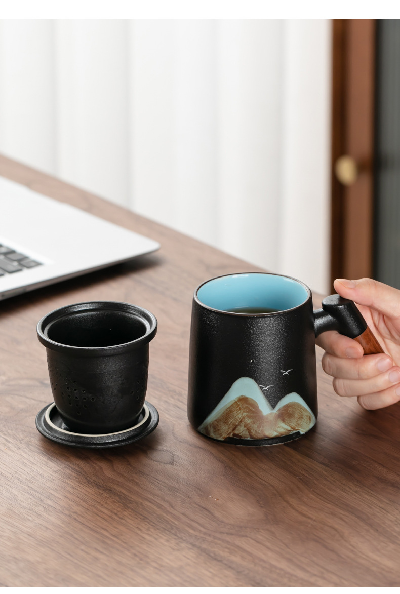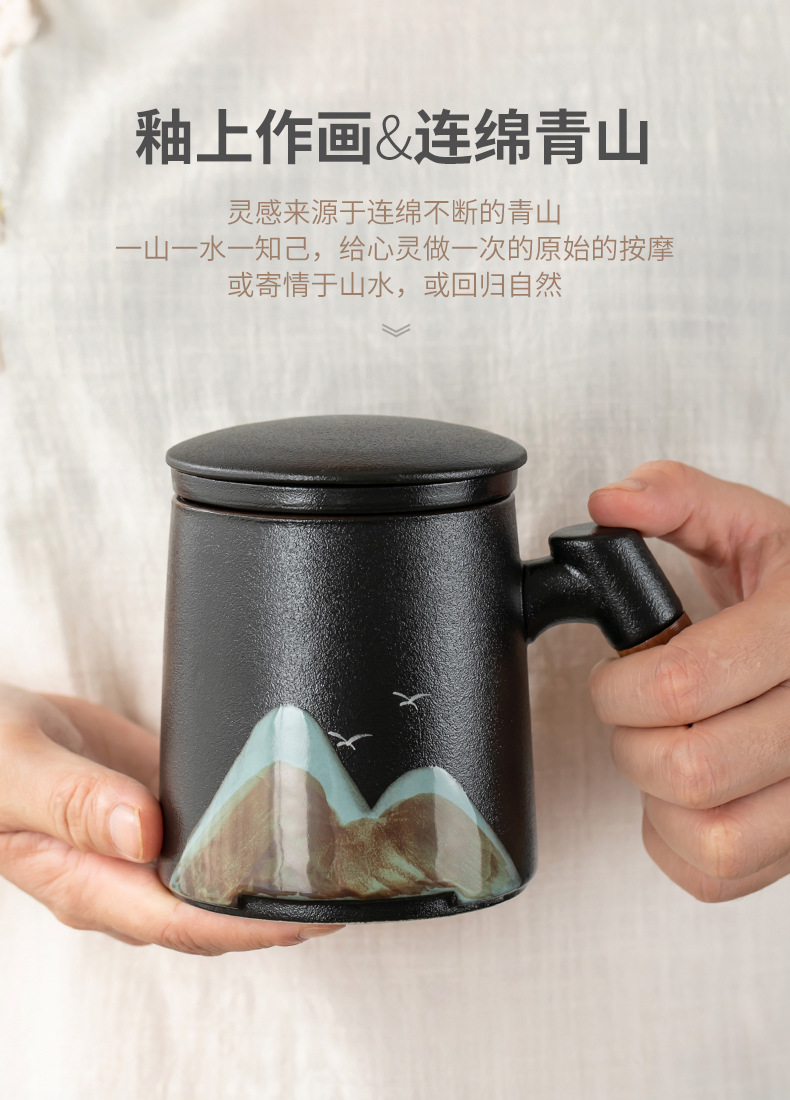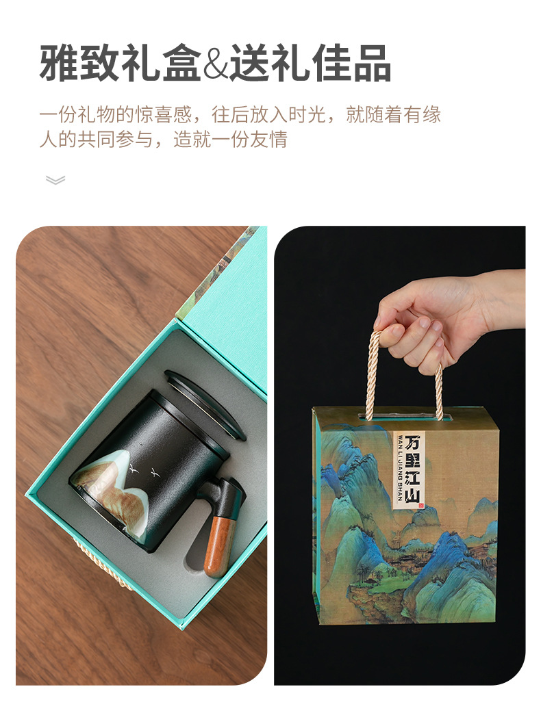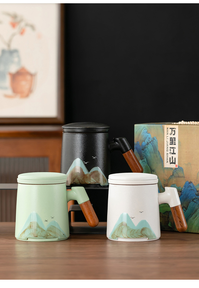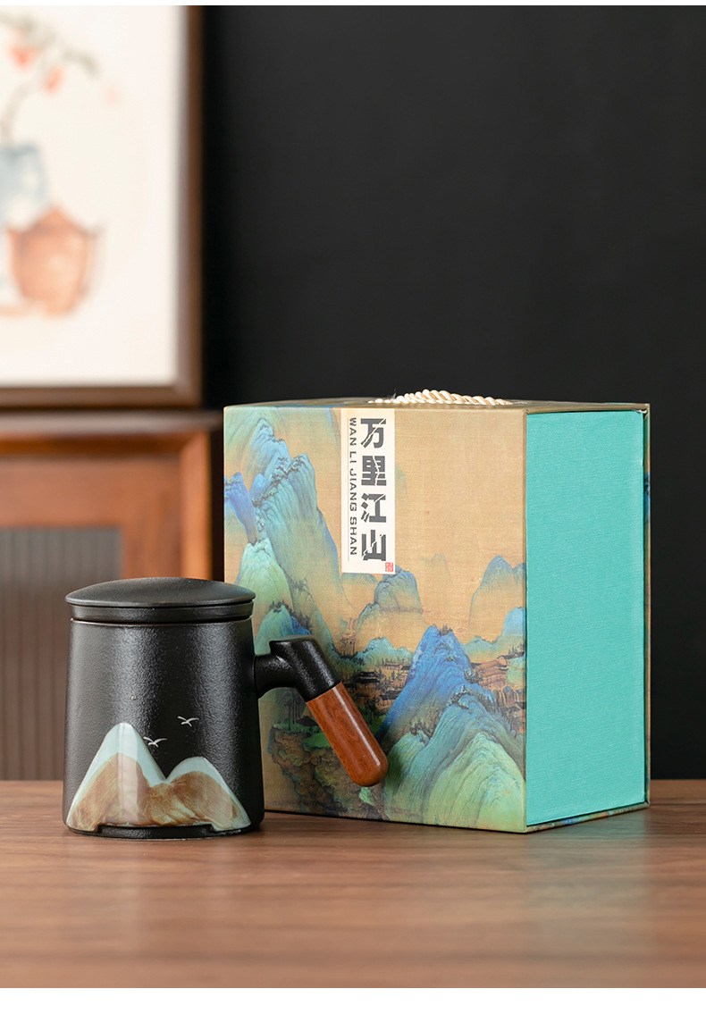 「三款配色!礼盒装」远山马克杯陶瓷茶具茶水分离带盖父亲节礼物办公室用杯子礼盒装餐饮用具