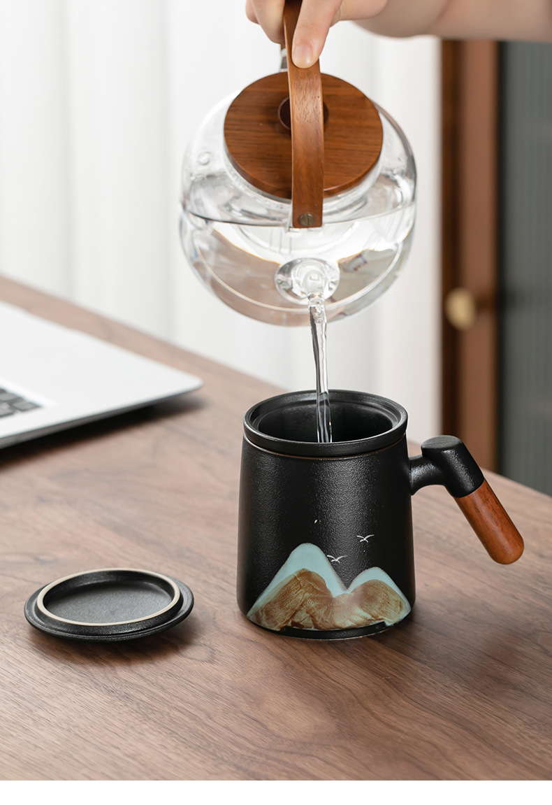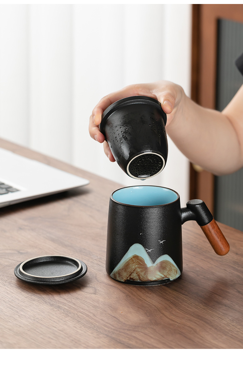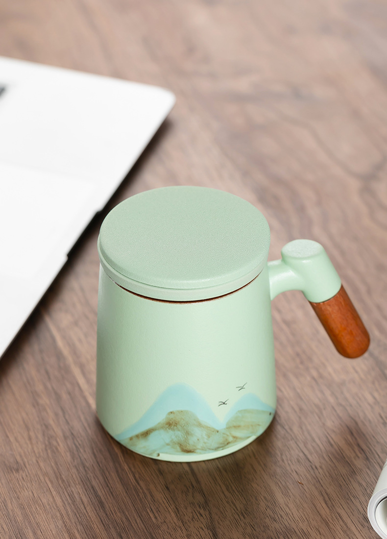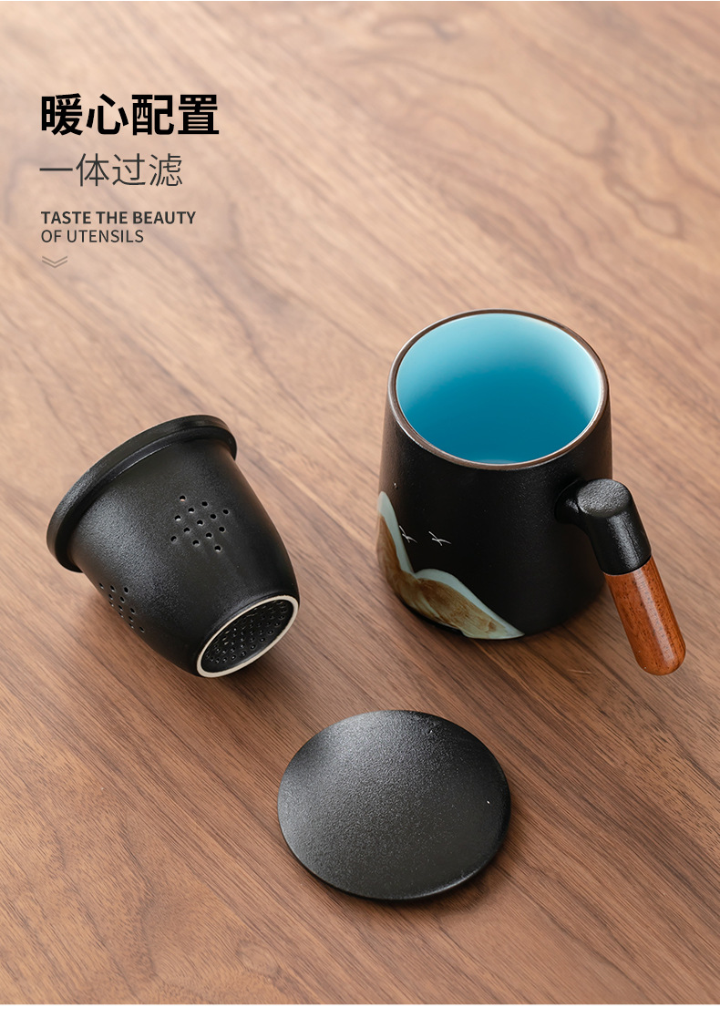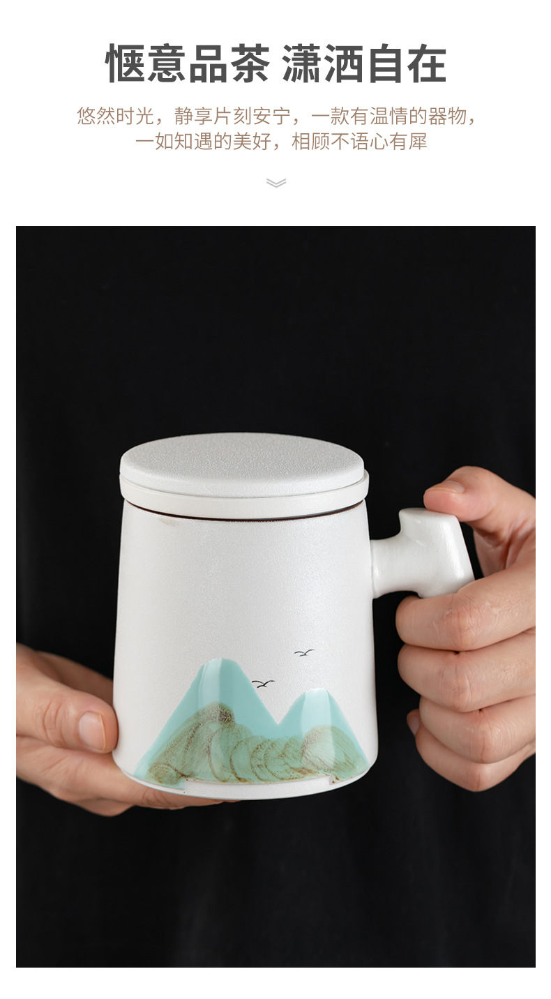 「三款配色!礼盒装」远山马克杯陶瓷茶具茶水分离带盖父亲节礼物办公室用杯子礼盒装餐饮用具