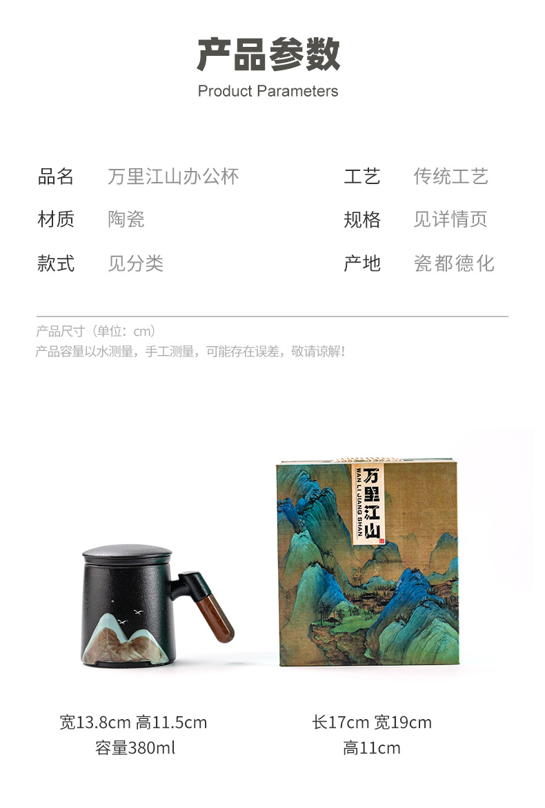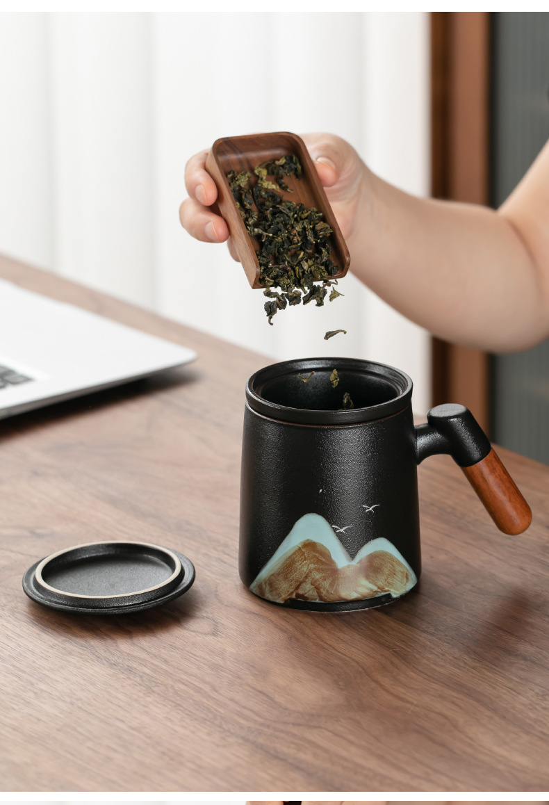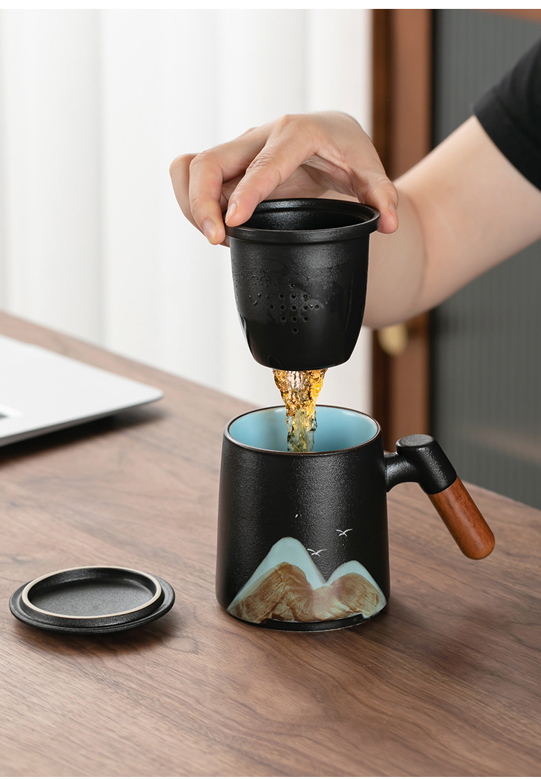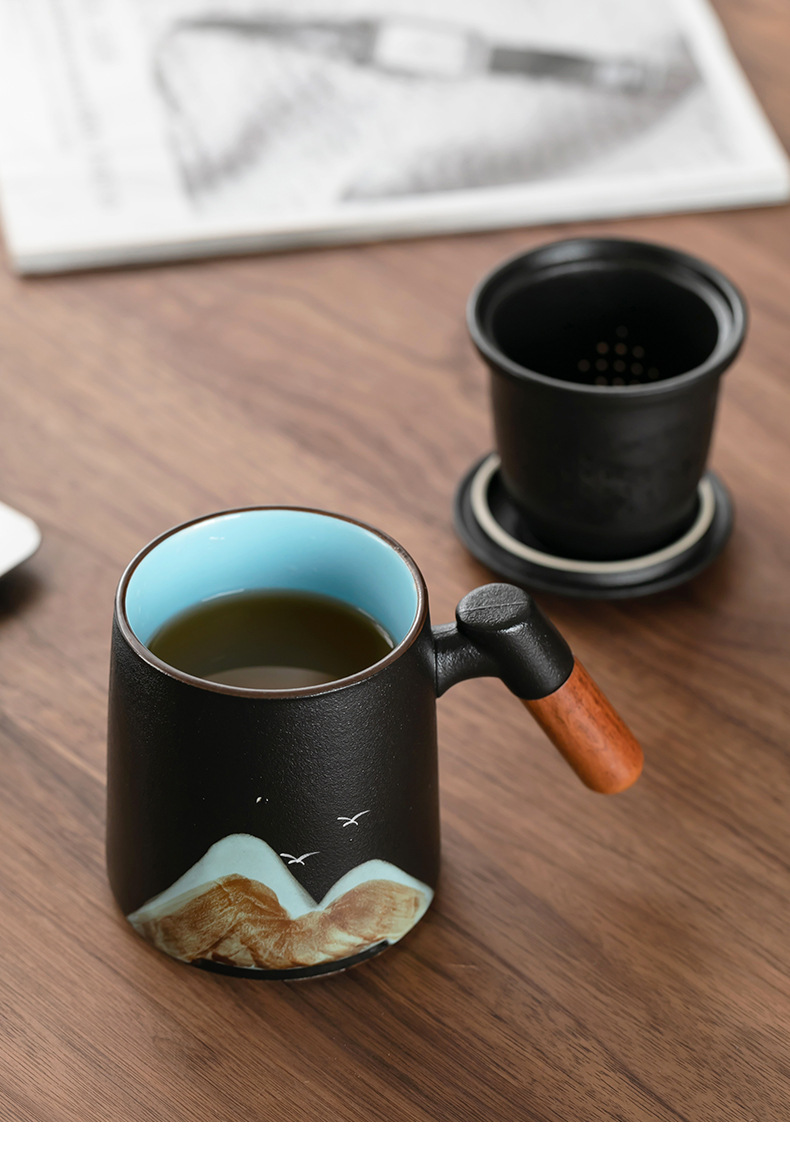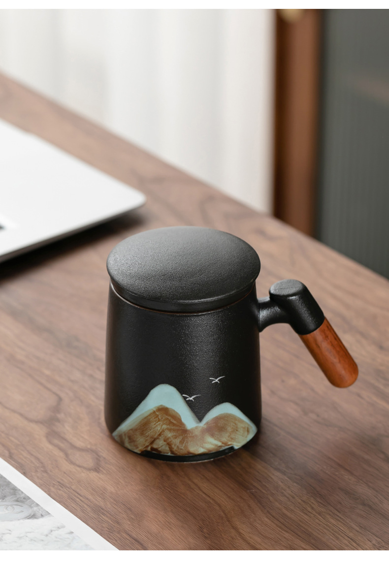 「三款配色!礼盒装」远山马克杯陶瓷茶具茶水分离带盖父亲节礼物办公室用杯子礼盒装餐饮用具