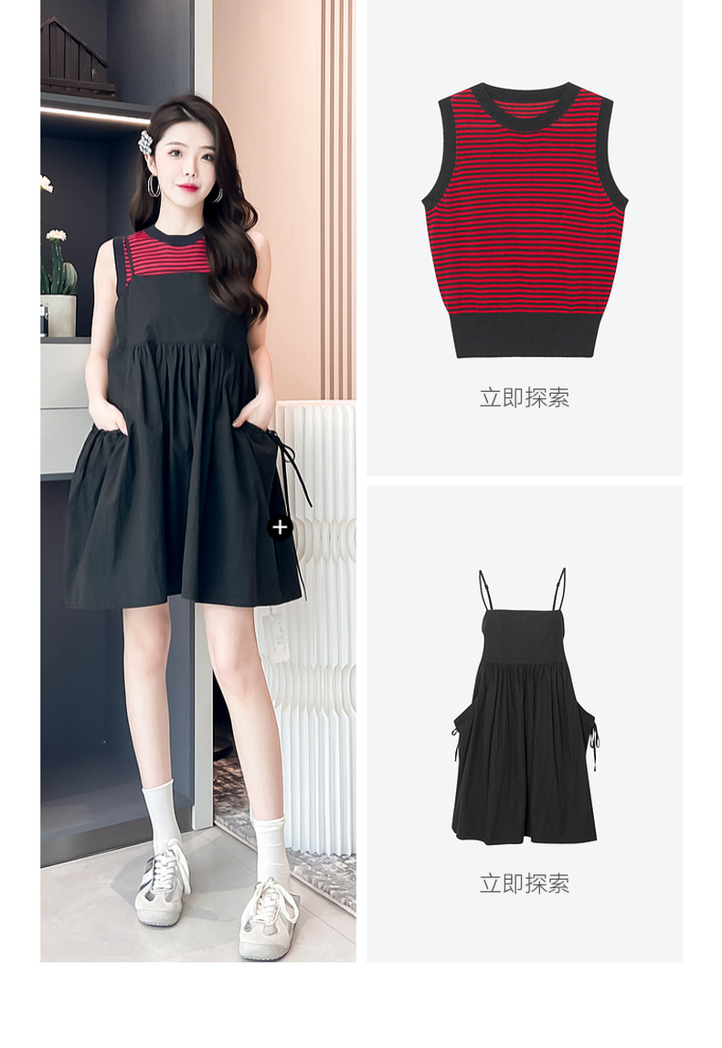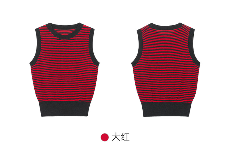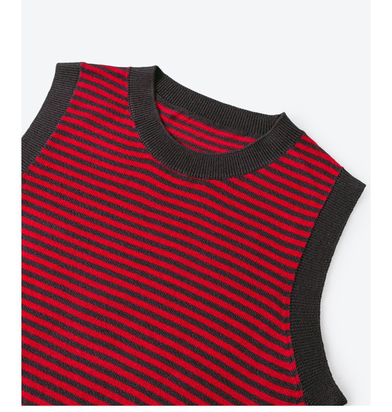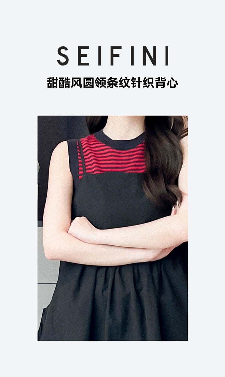 【严选】诗凡黎圆领条纹针织背心2024夏新款高级感漂亮小众设计感上衣SF6131691