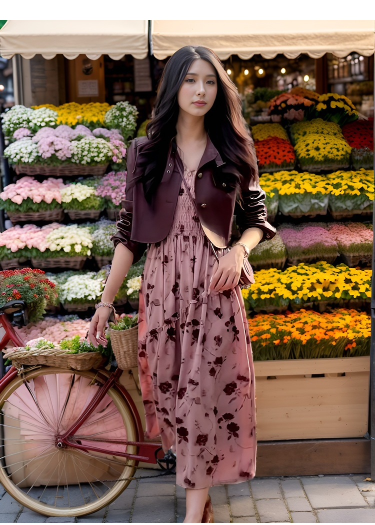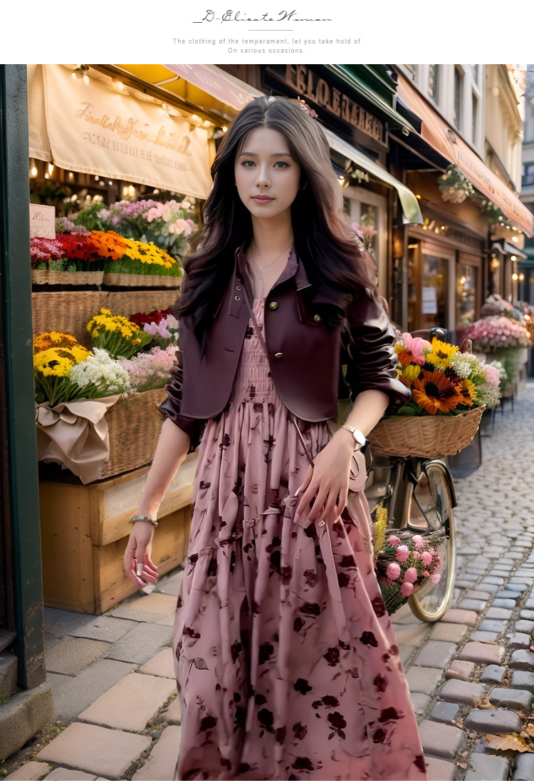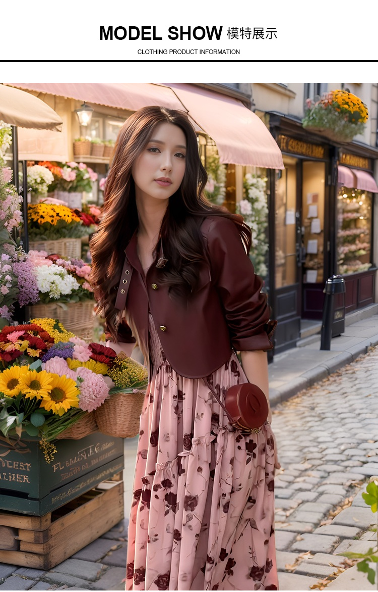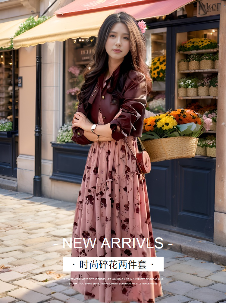 9/7奢姿大码女装2024秋季减龄碎花皮衣吊带裙两件套胖妹妹时尚套装9943991277