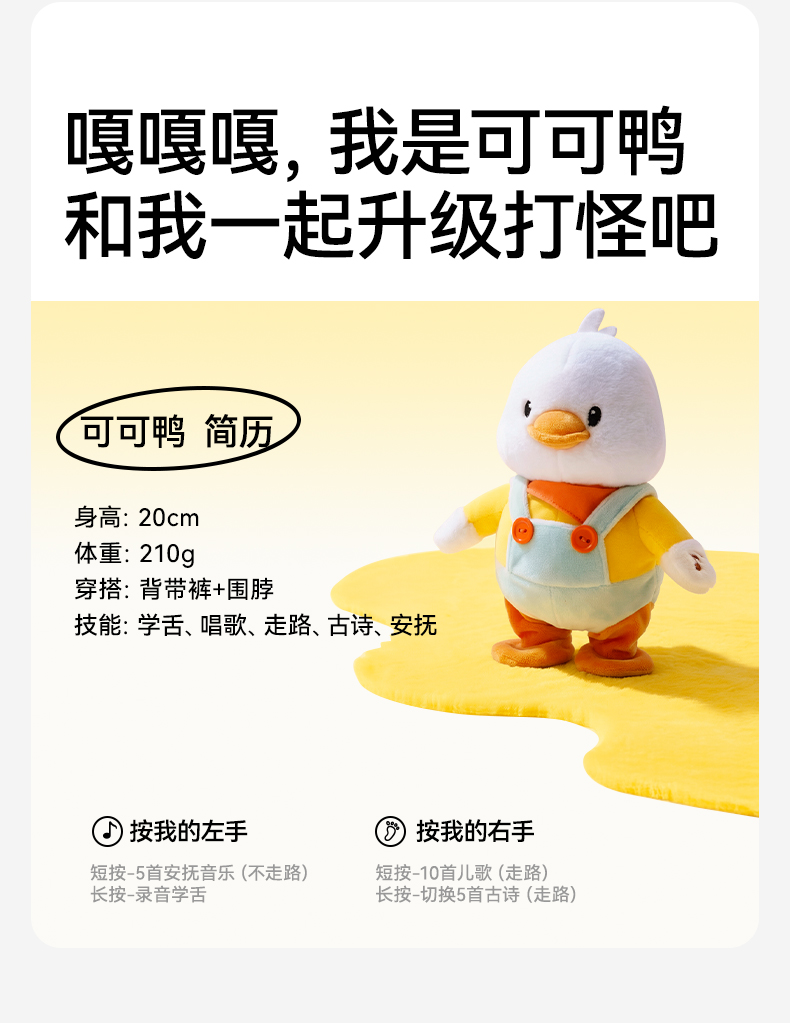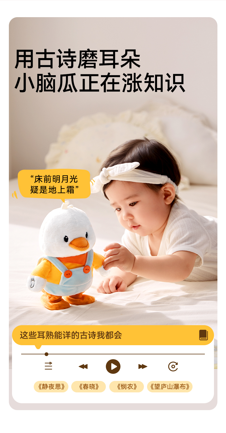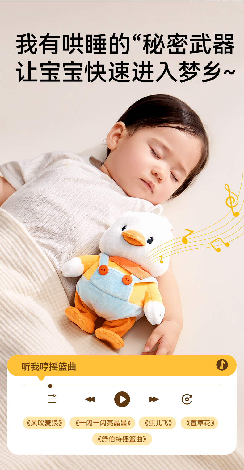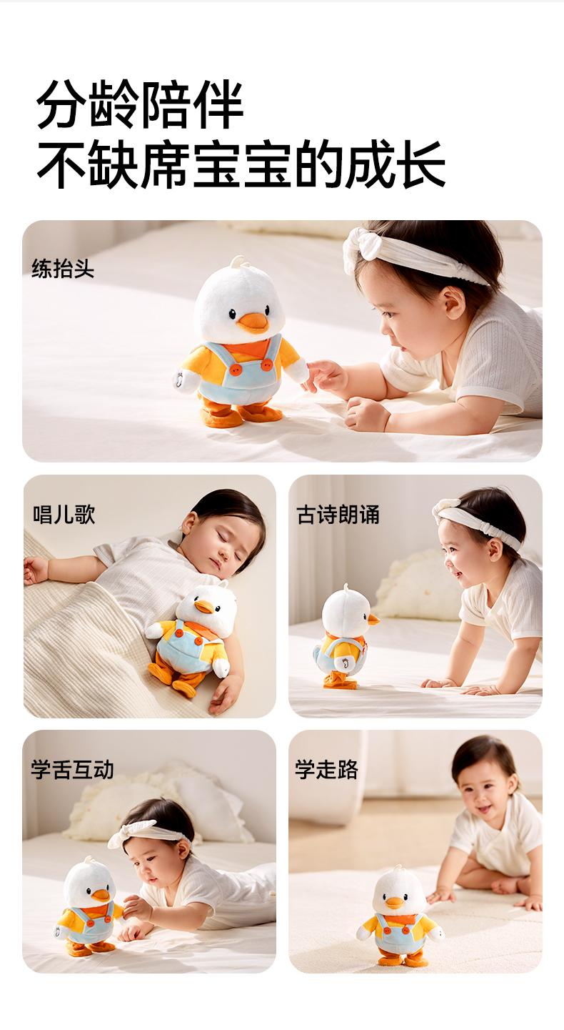 宝宝学抬头安抚练习爬益智早教毛绒小黄鸭玩具礼盒 赠【婴儿布书1个】