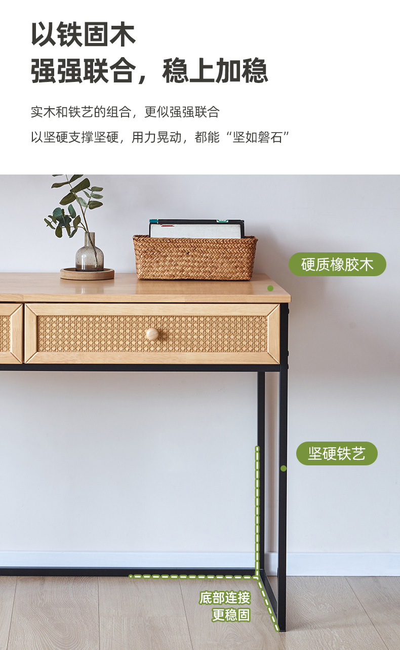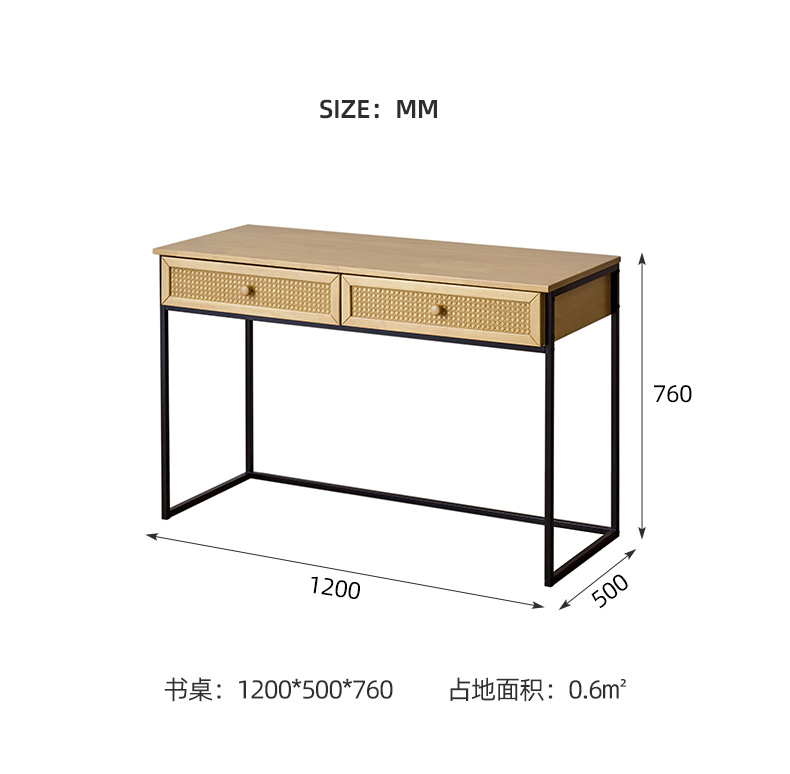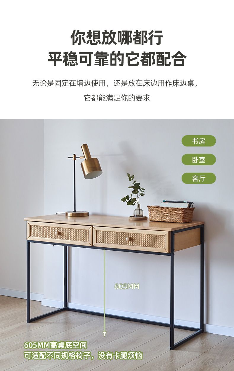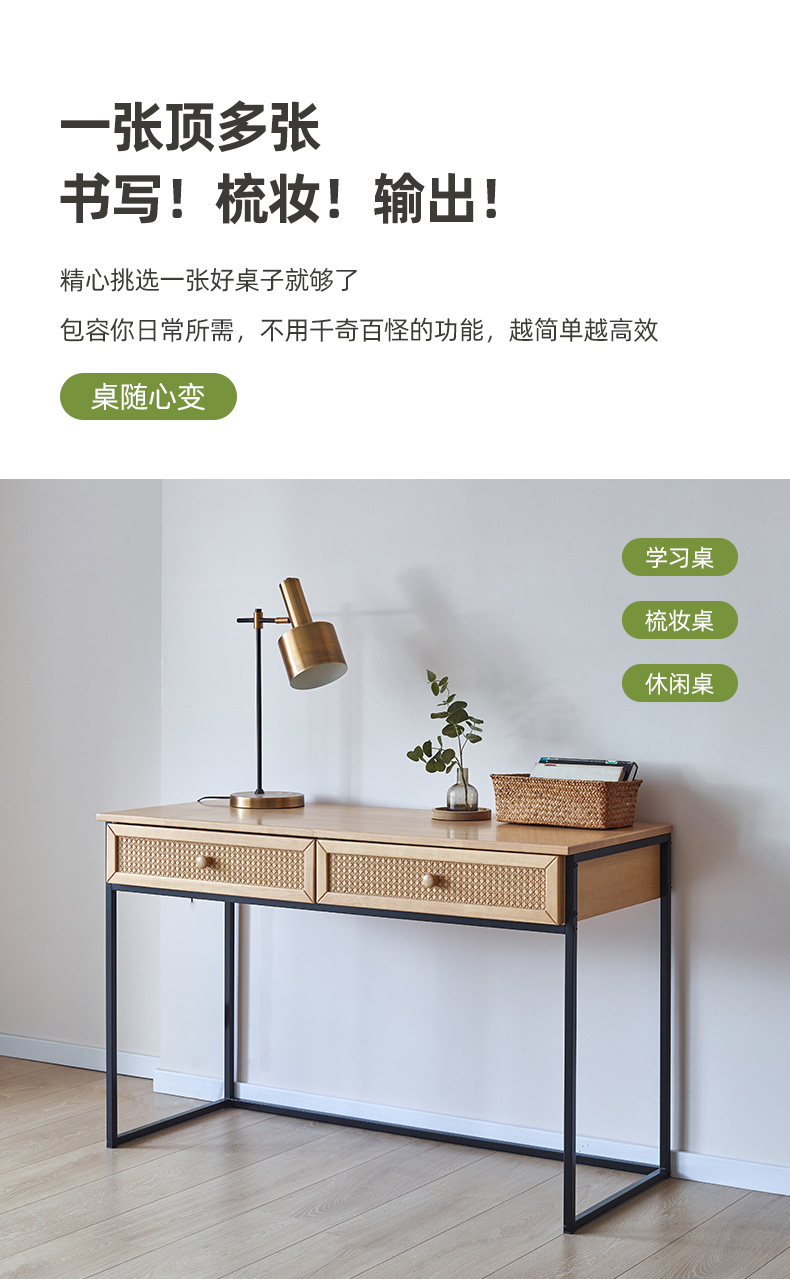 喜梦宝藤编书桌铁艺简约桌现代梳妆桌小户型卧室课桌家用