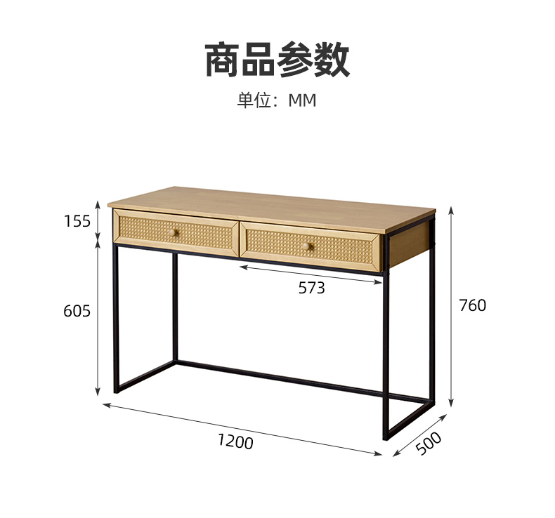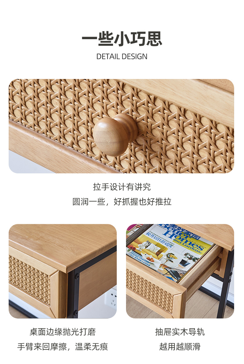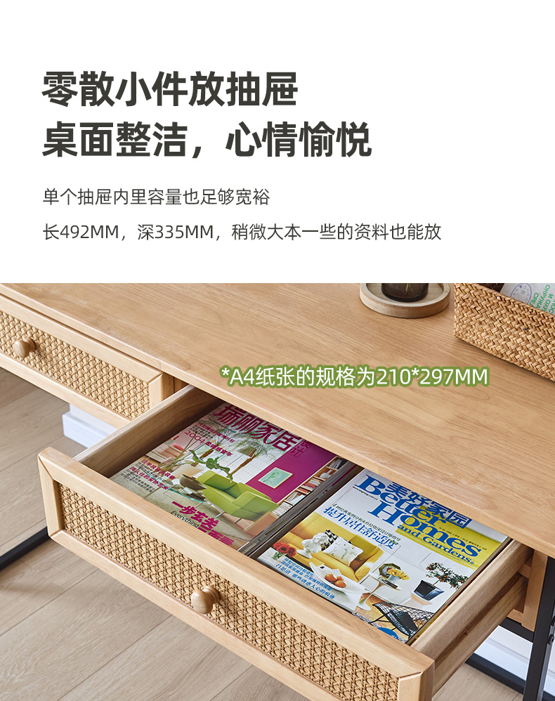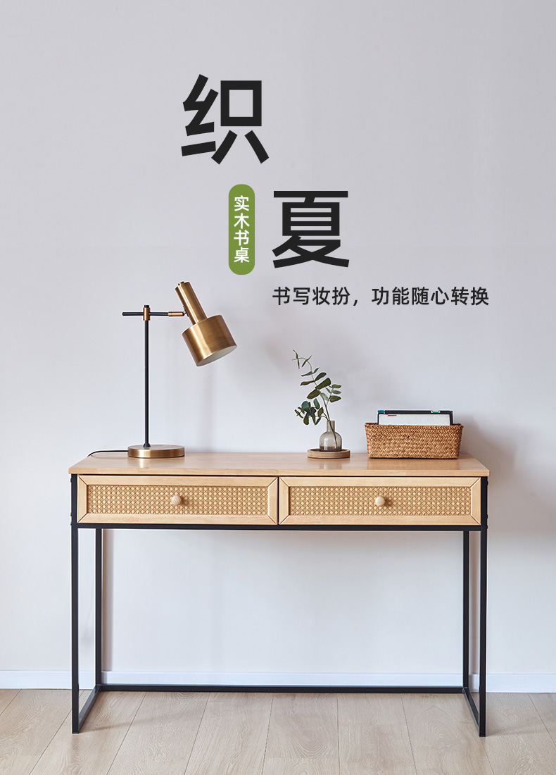 喜梦宝藤编书桌铁艺简约桌现代梳妆桌小户型卧室课桌家用