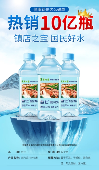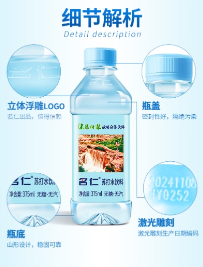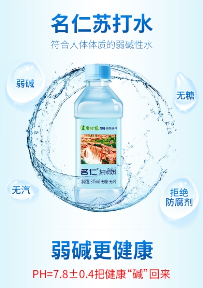 【饮品类】名仁苏打水饮料 无糖无汽弱碱性水 375ml*24瓶/箱【BH】【SF】