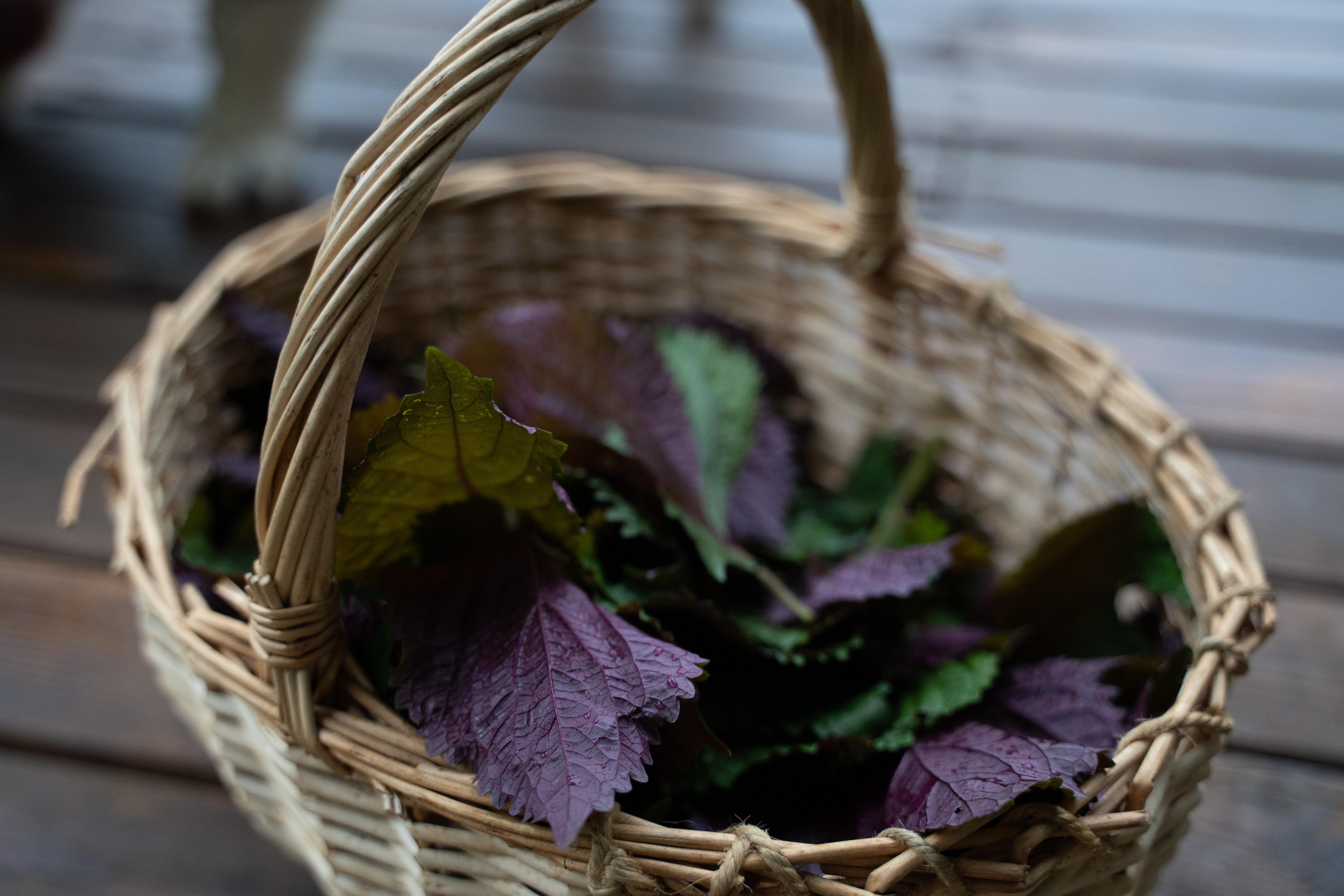 一丛一丛的紫苏叶在夏季热烈地生长,我们把它采下来,用60度的温度将它慢慢烘干,总要烘上个把小时,再细细地打成粉,过了筛。这样就能把夏季独有的热烈保存下来,以供一整年使用。