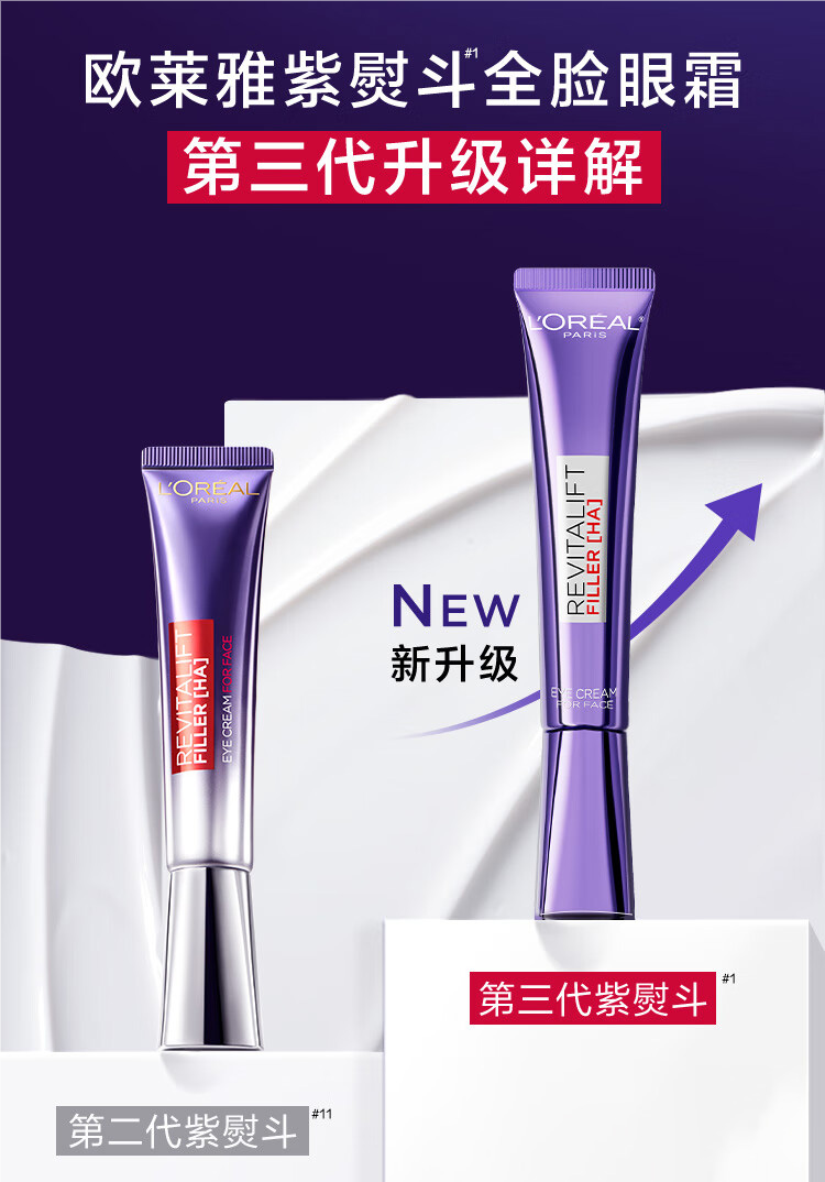 【新品上市】LOREAL欧莱雅第三代紫熨斗全脸淡纹眼霜30ml*2