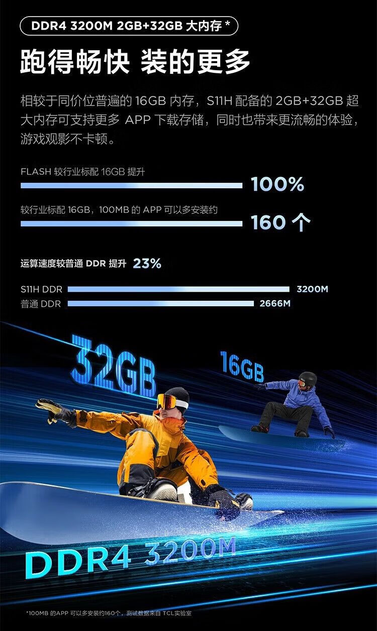 TCL电视55/65/75S11H 65英寸高色域 120Hz 2+32GB大内存 4K超高清 65S11H