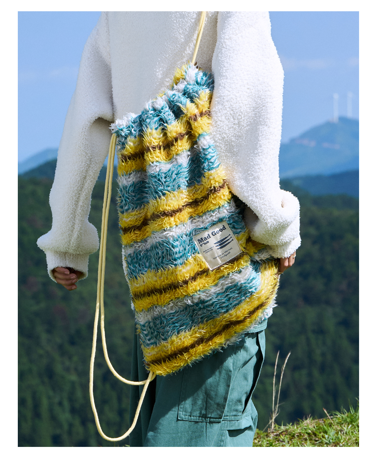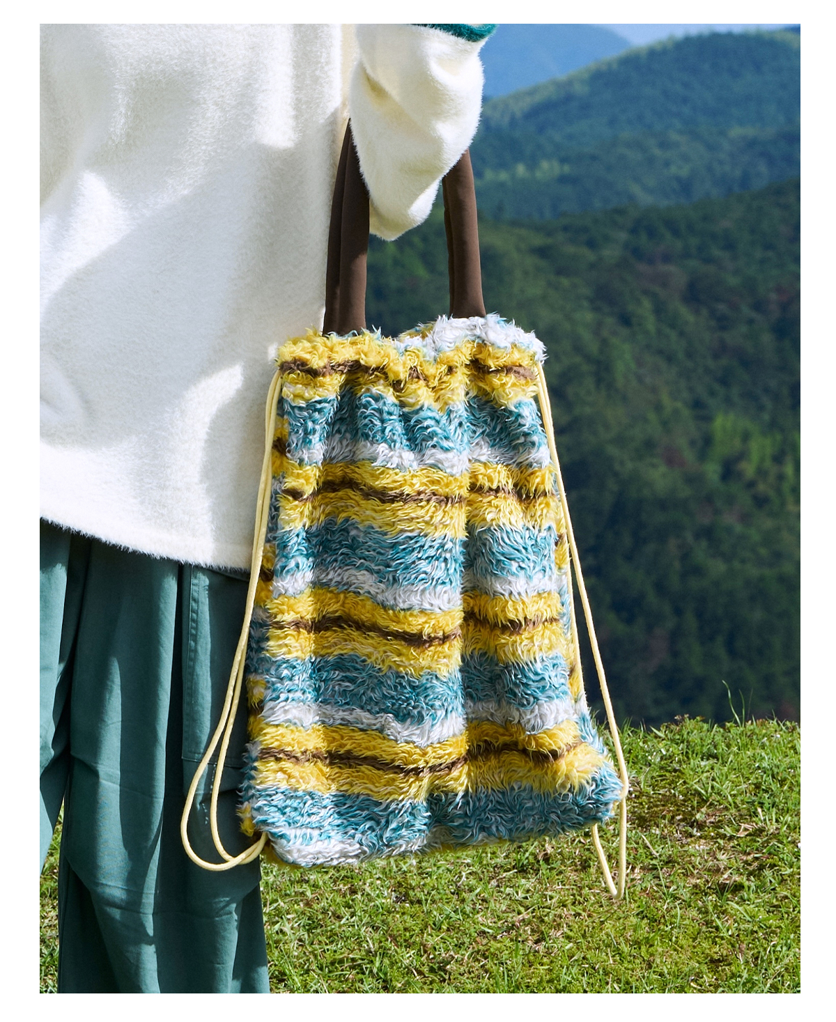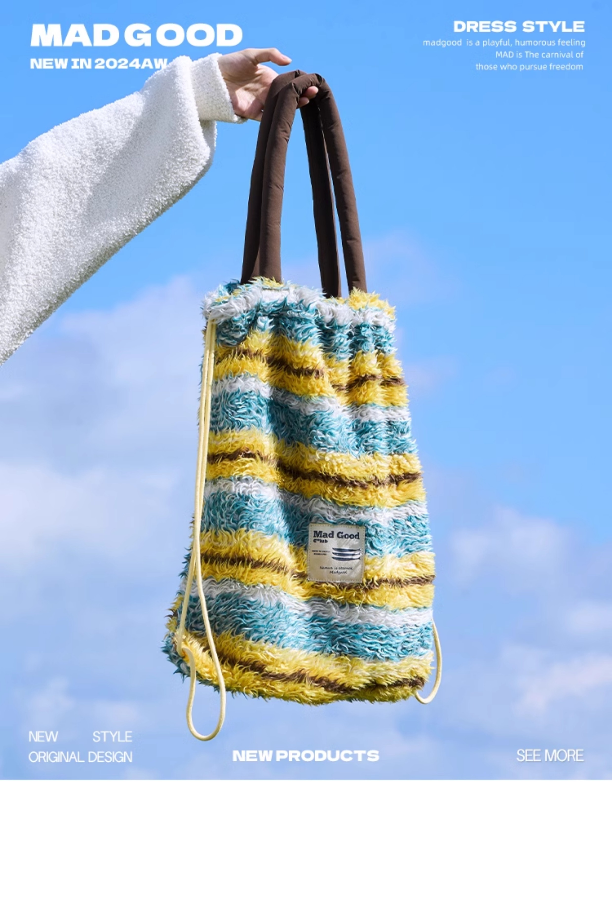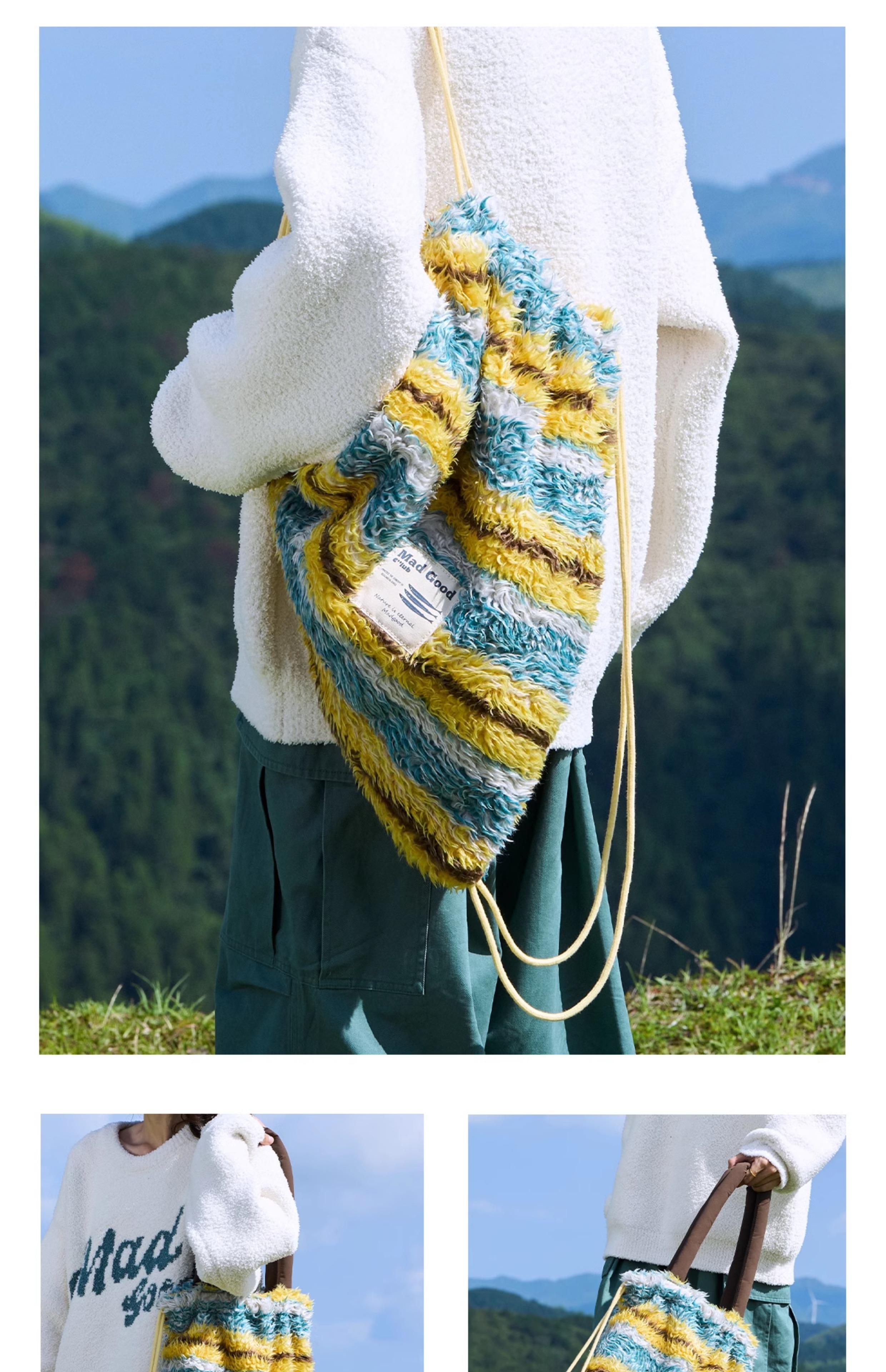 马得工地/MDGDBB244321/彩色条纹撞色短毛提花束口单双肩包