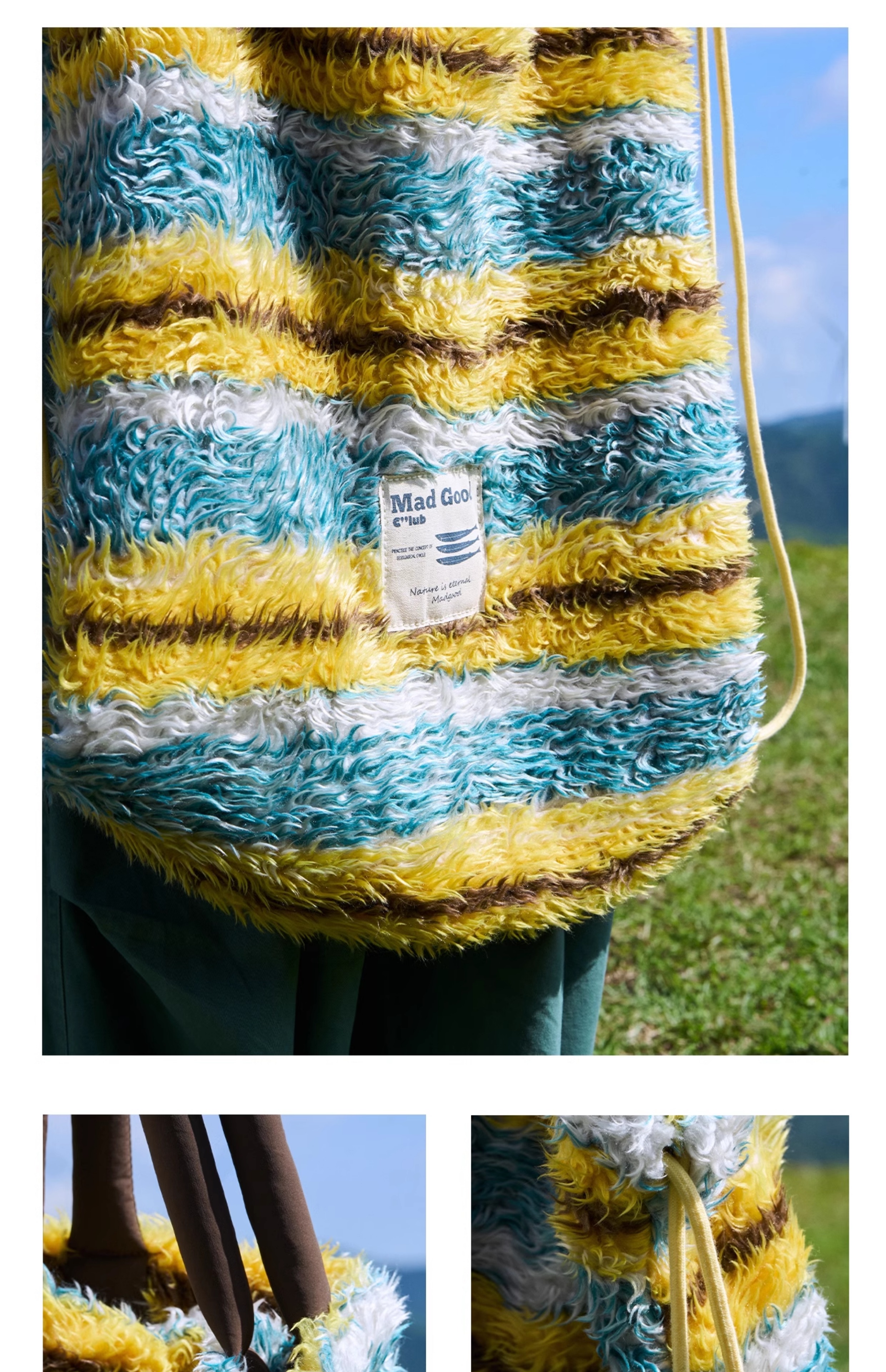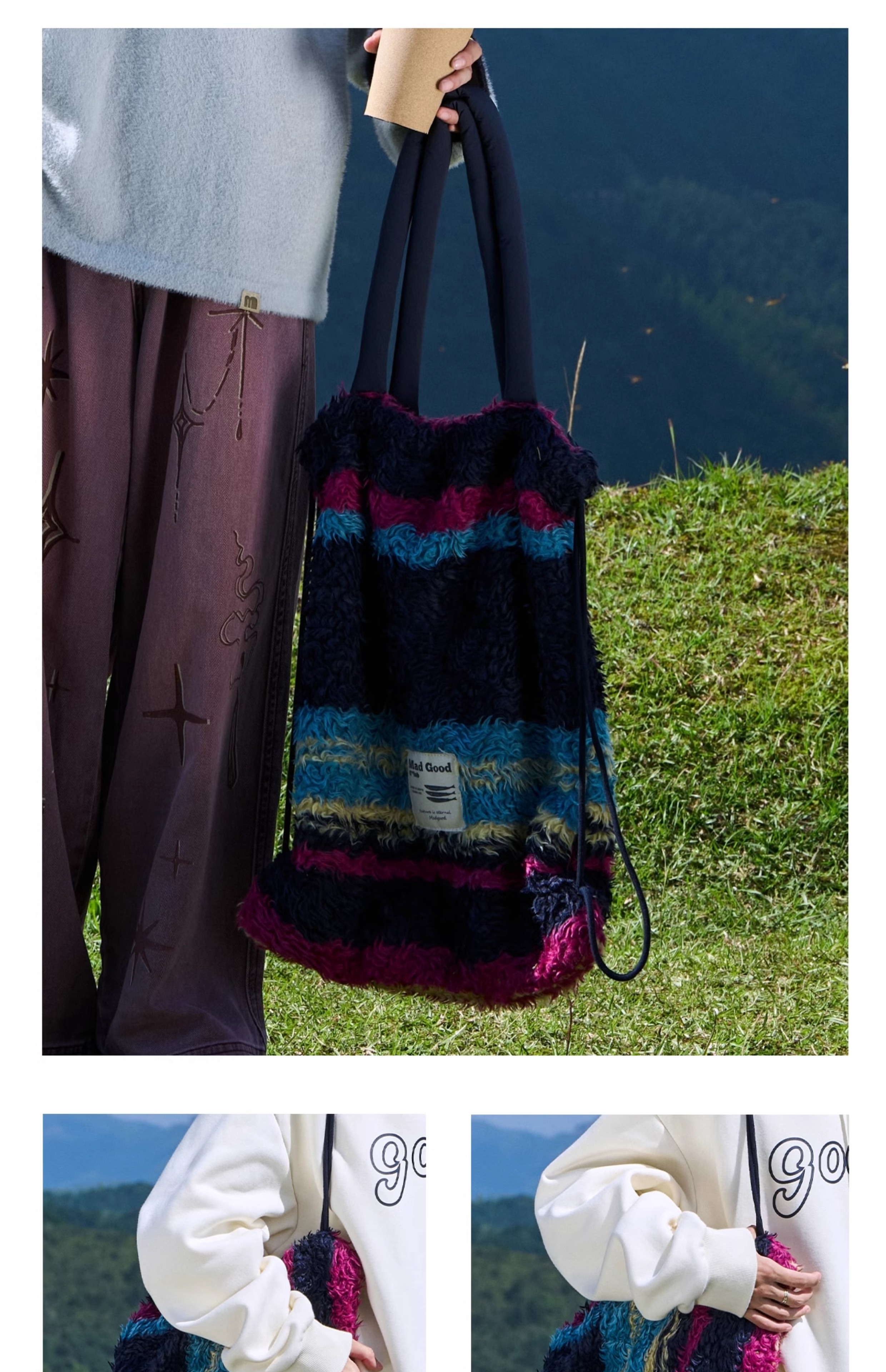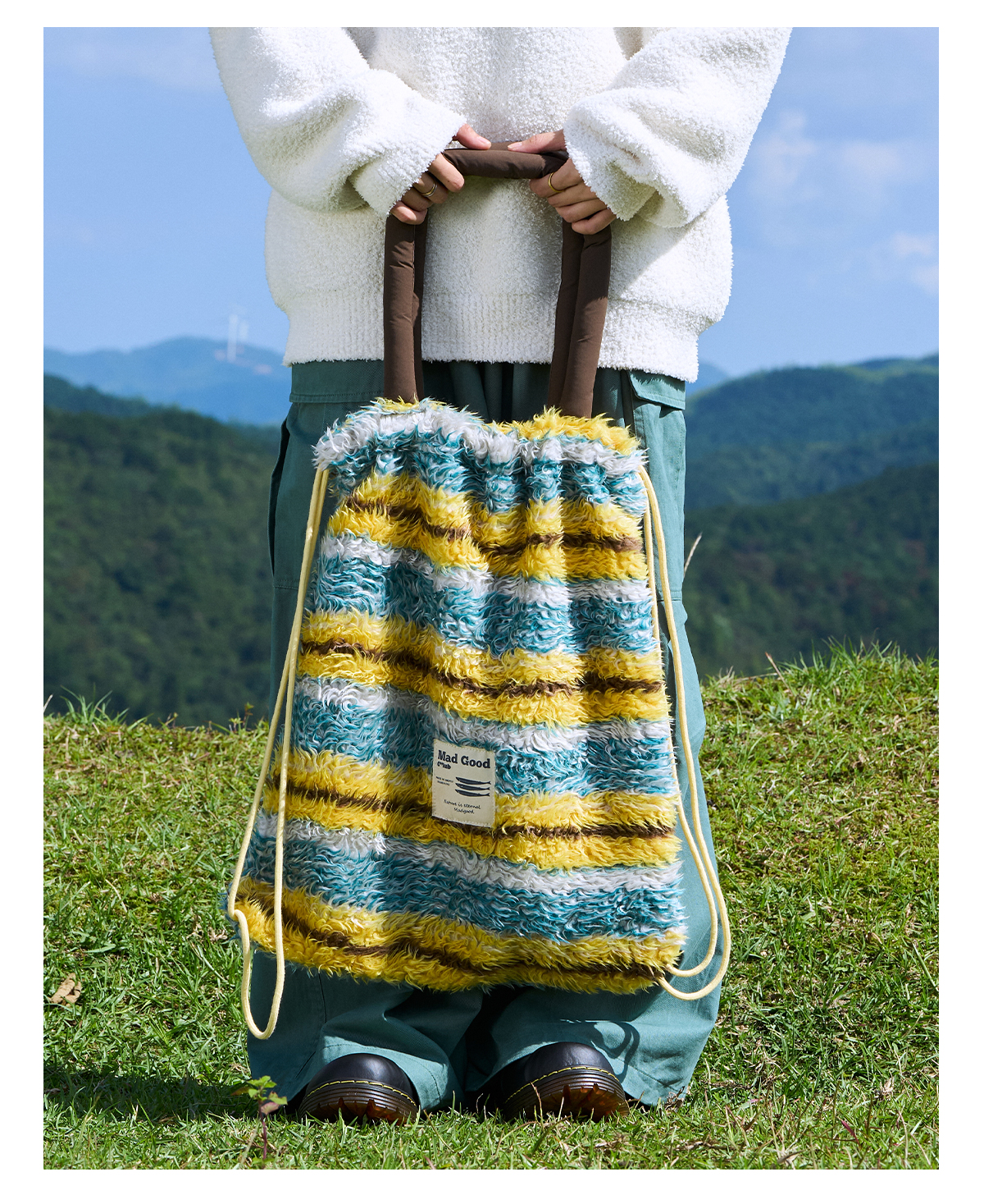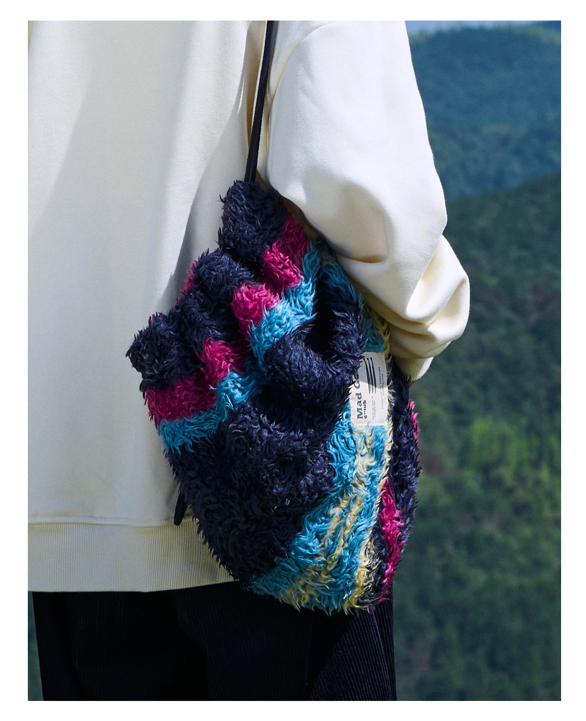 马得工地/MDGDBB244321/彩色条纹撞色短毛提花束口单双肩包