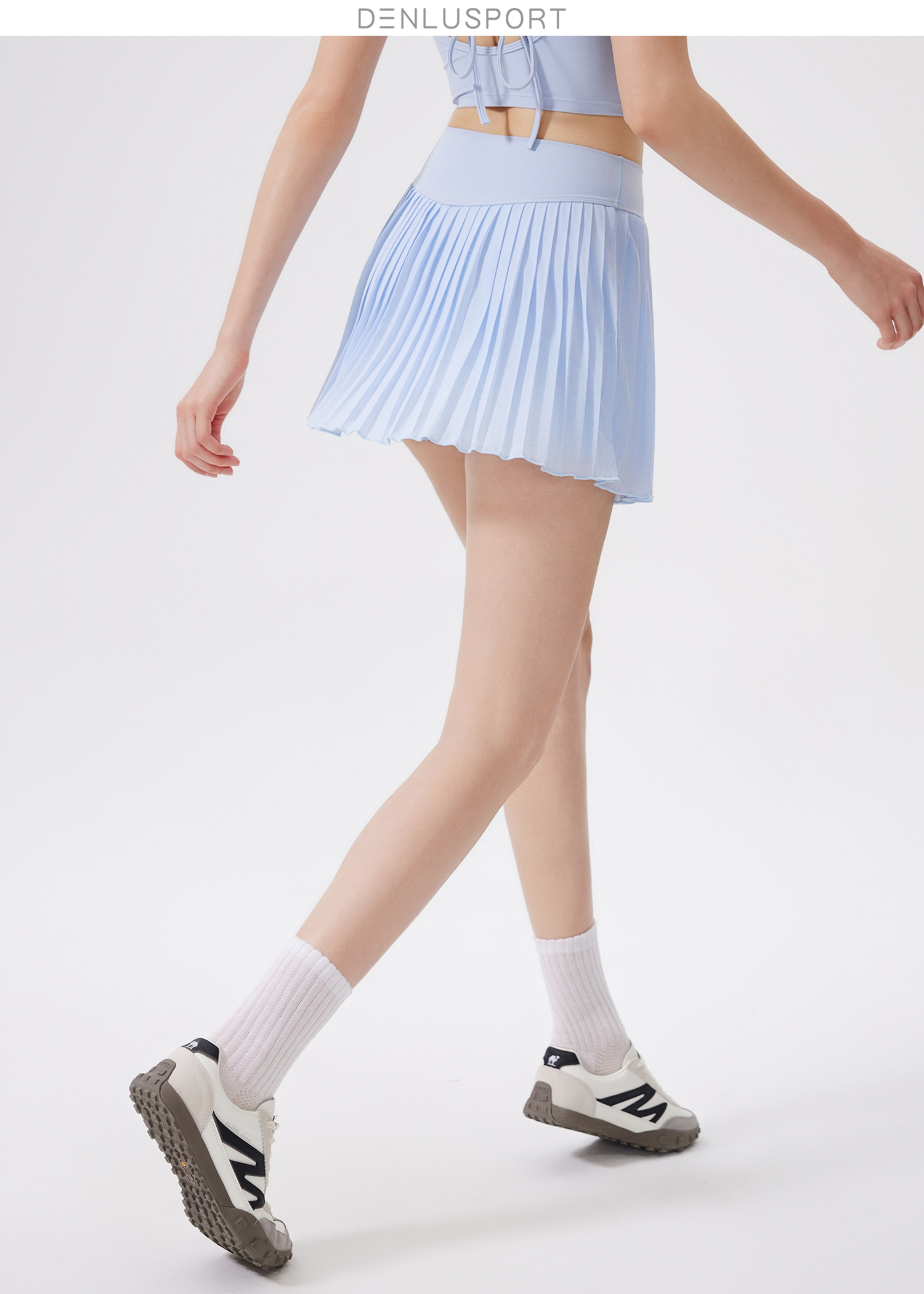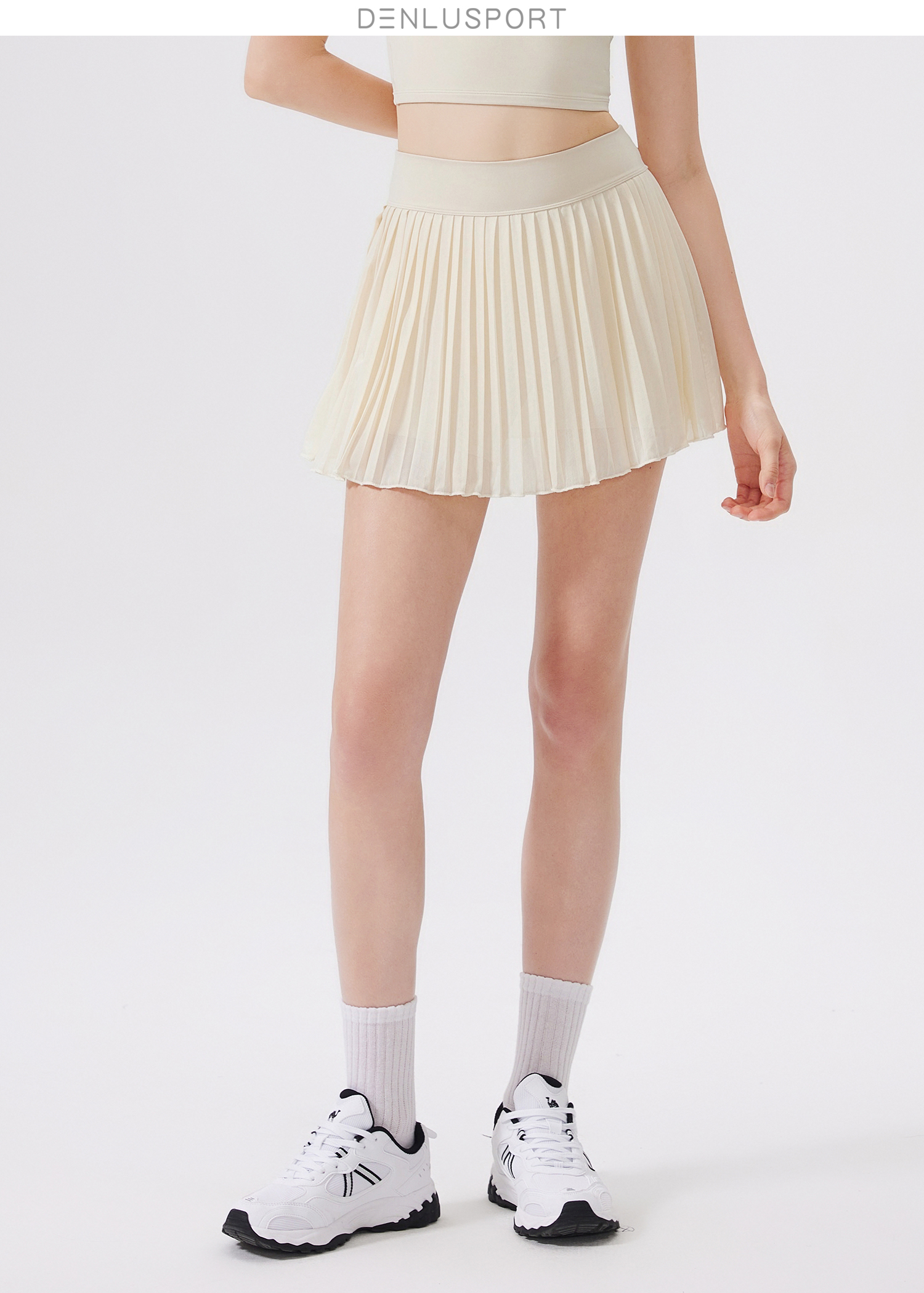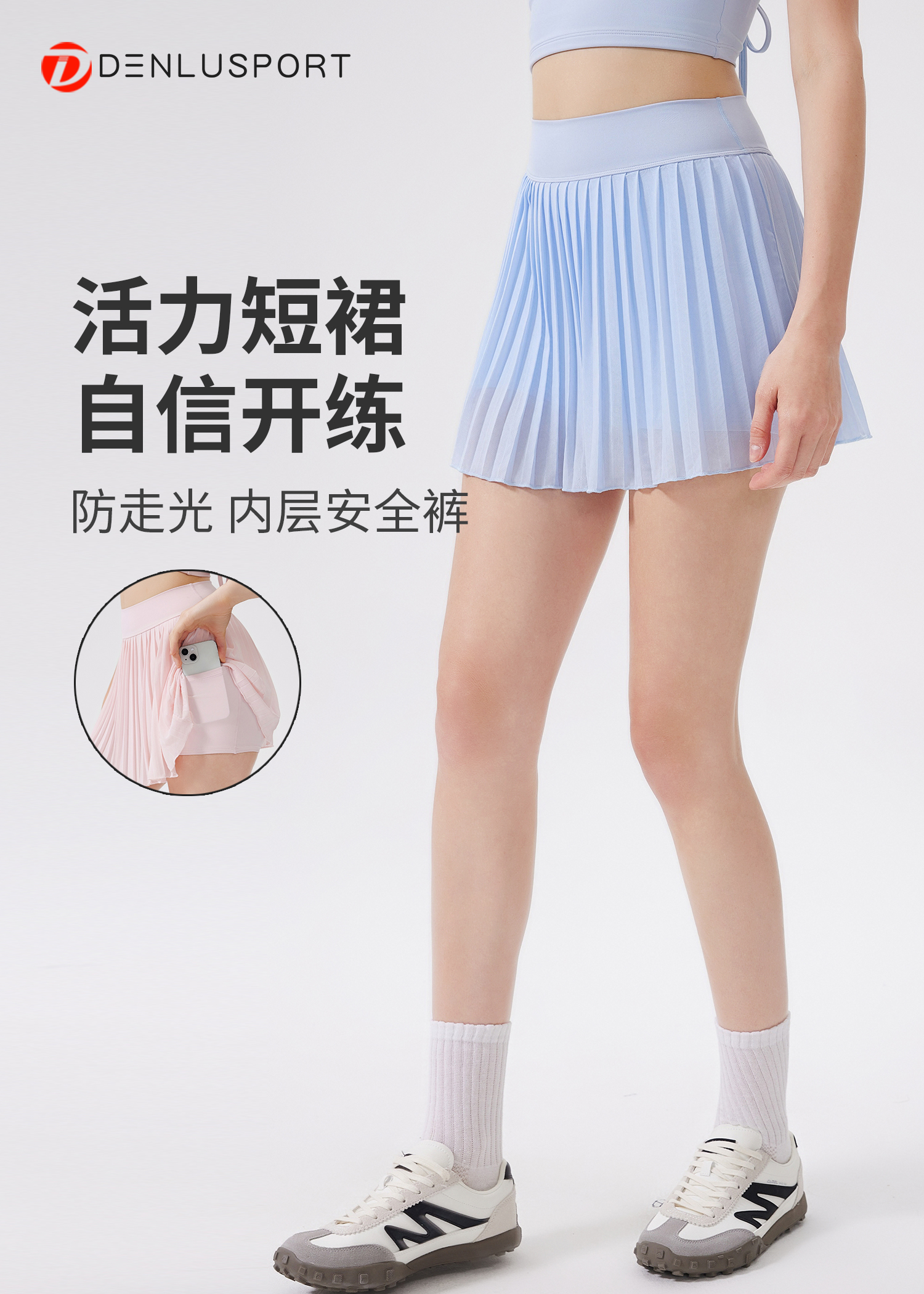 DENLUS夏季松紧高腰显瘦瑜伽短裙内衬放走光带口袋网球百褶裙休闲外穿DK95090