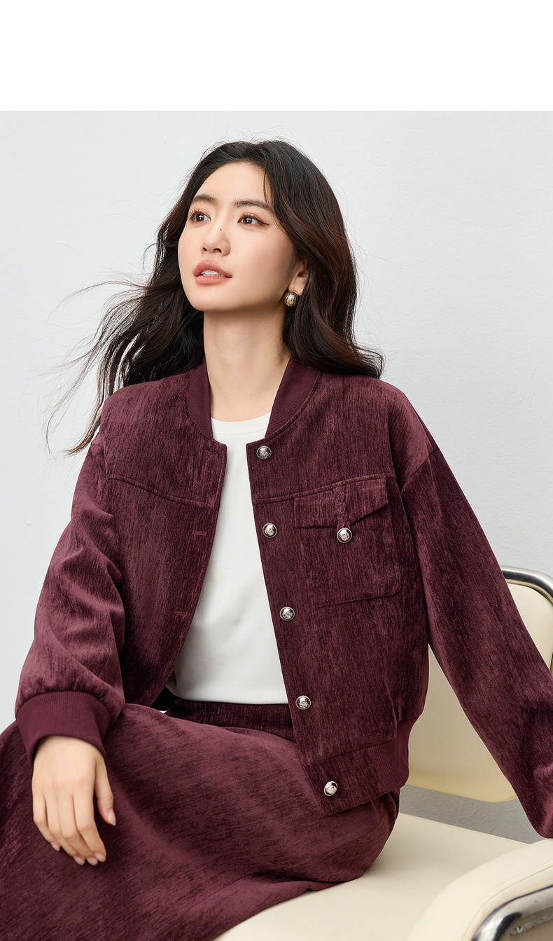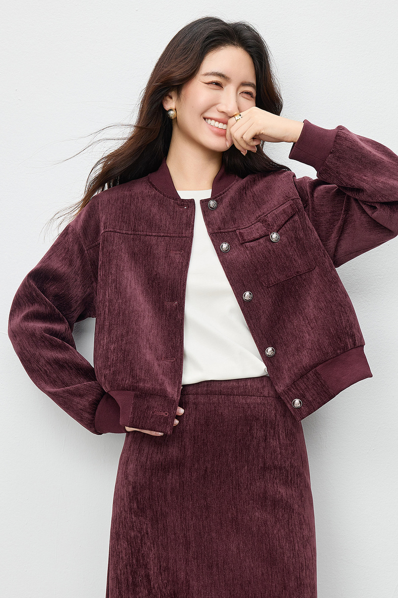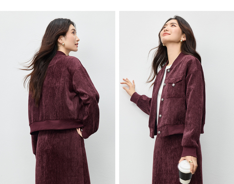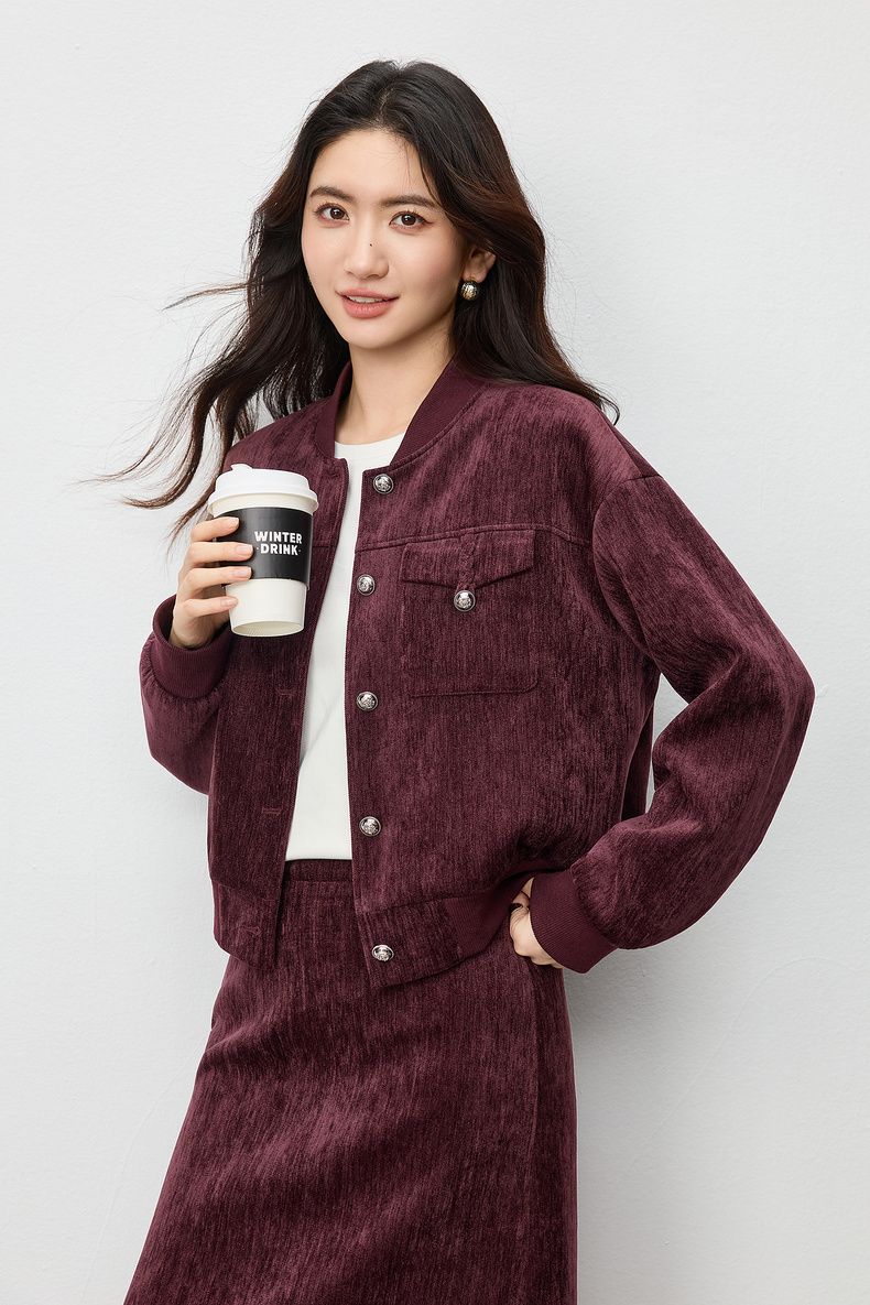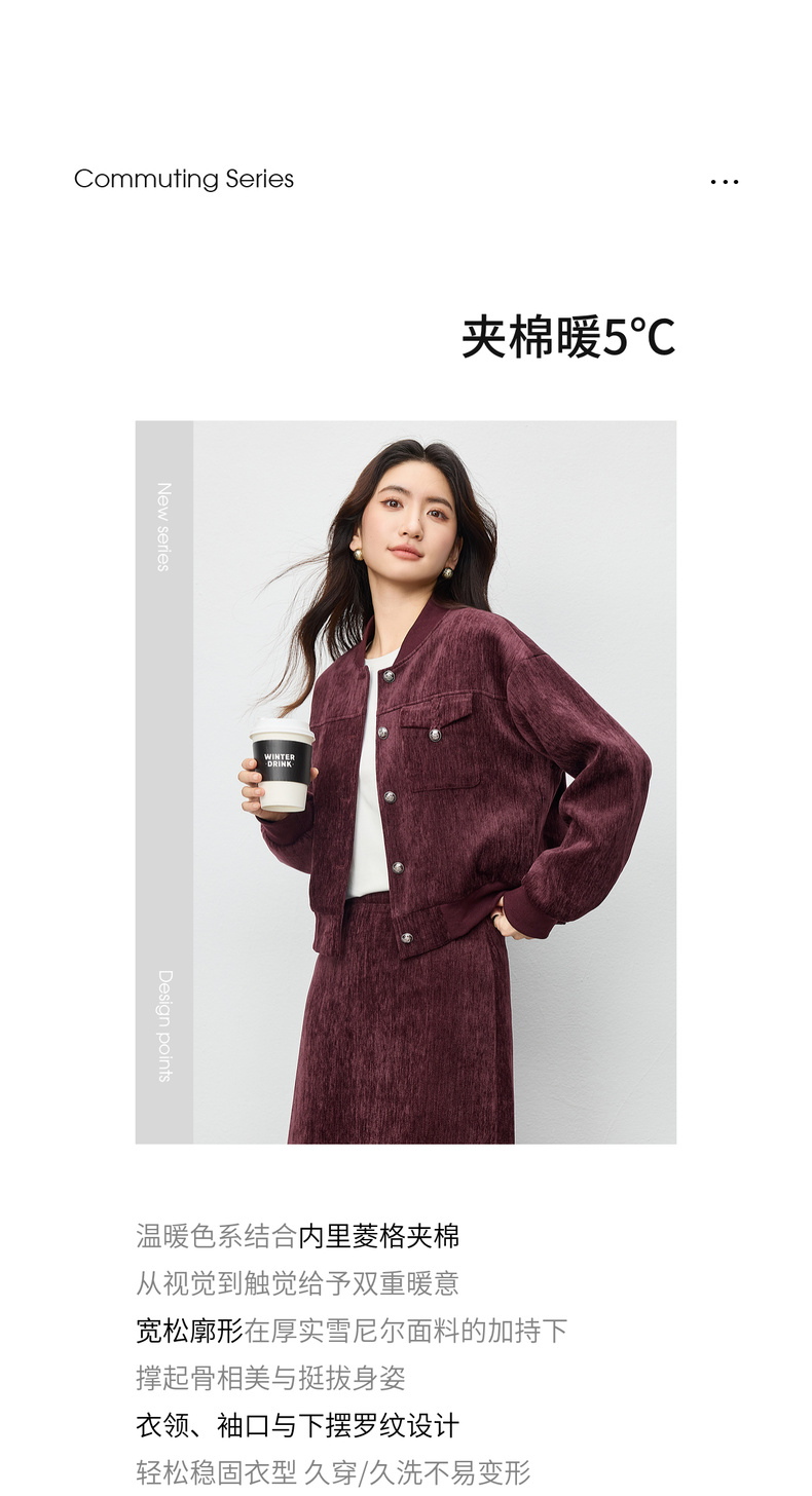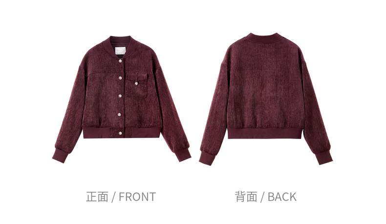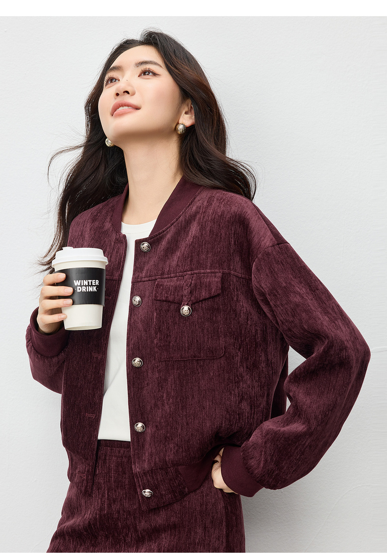 【内购】【夹棉保暖】都市通勤棒球领撞色扣宽松落肩不臃肿厚雪尼尔外套-154WB3050