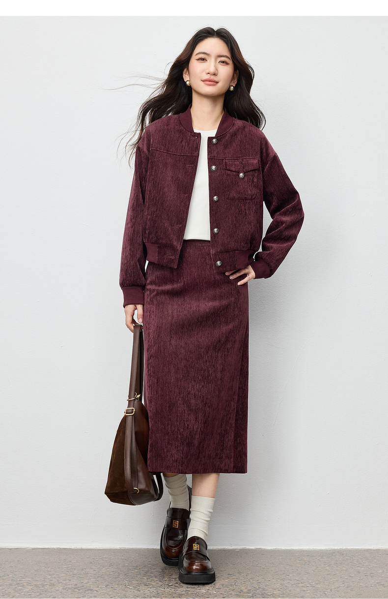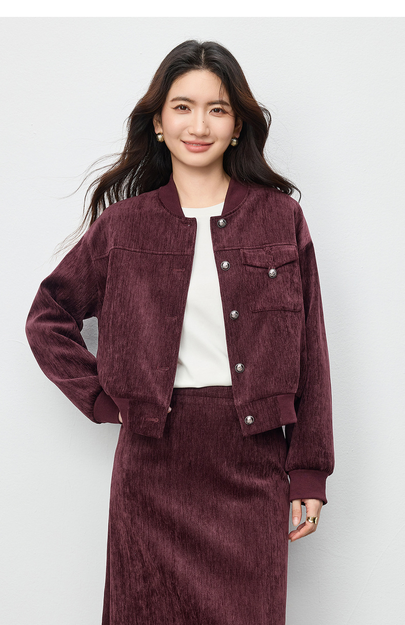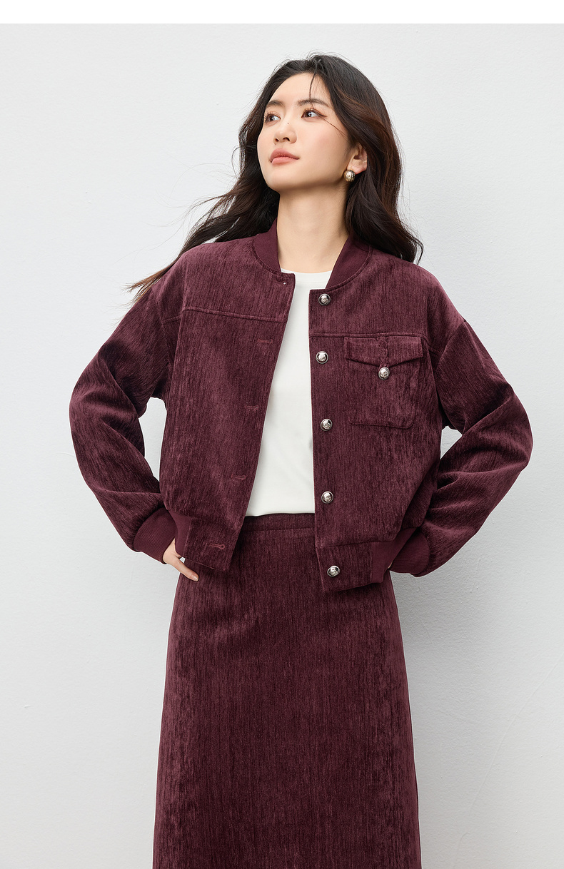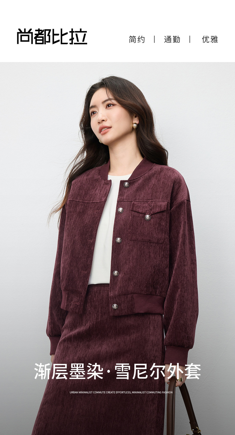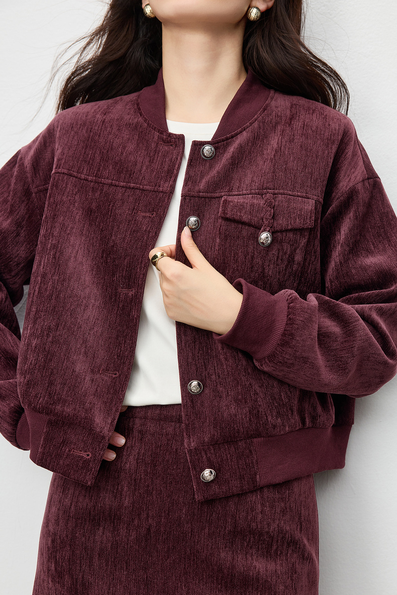 【内购】【夹棉保暖】都市通勤棒球领撞色扣宽松落肩不臃肿厚雪尼尔外套-154WB3050