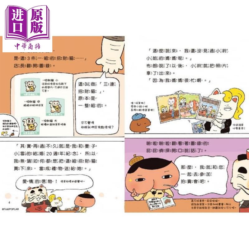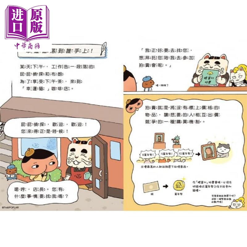 引领孩子品尝「沉浸在阅读里」的乐趣和美妙滋味!这次是〈幸运猫落到谁手上!〉和〈充满回忆的招财猫〉 两篇故事──「幸运猫」咖啡店店长为了准备庆祝结婚20周年纪念日的礼物,看中了即将在艺术拍卖会上拍卖的、大中小三个一组的「三连招财猫」,他想将此当作礼物,送给妻子小雪(即小铃小姐的妈妈)。第一次参加拍卖会的他,特别邀了屁屁侦探同行。