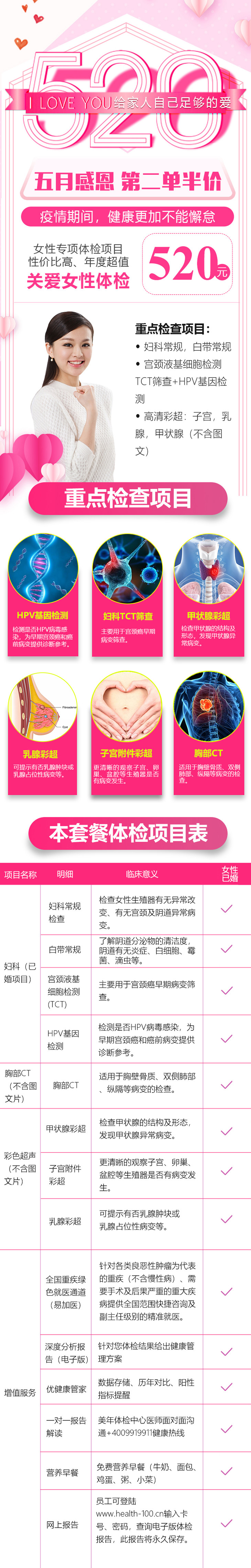 【美年大健康,520关爱女性】妇科常规疾病、宫颈癌、乳腺癌、甲状腺疾病等筛查
